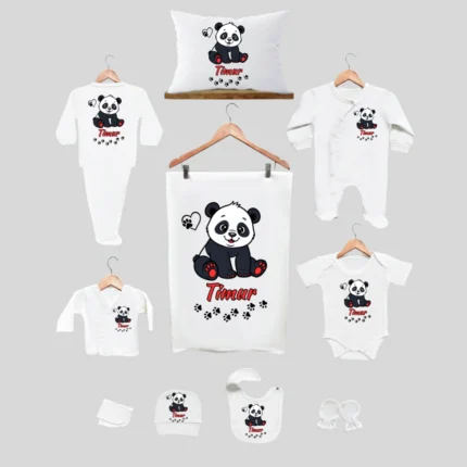 11’li Hastane Çıkış Seti İsme Özel Sevecen Panda Motifli