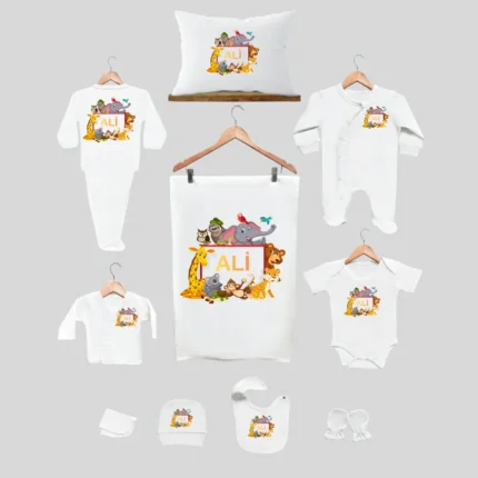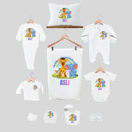 11’li Hastane Çıkış Seti İsme Özel Hayvan Desenli