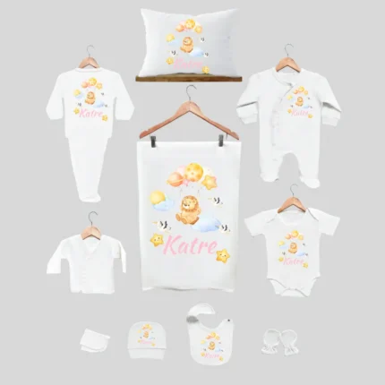 11’li Hastane Çıkış Seti İsme Özel Aslan Desenli