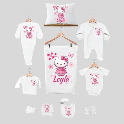 11’li Hastane Çıkış Seti İsme Özel Hello Kitty Desenli