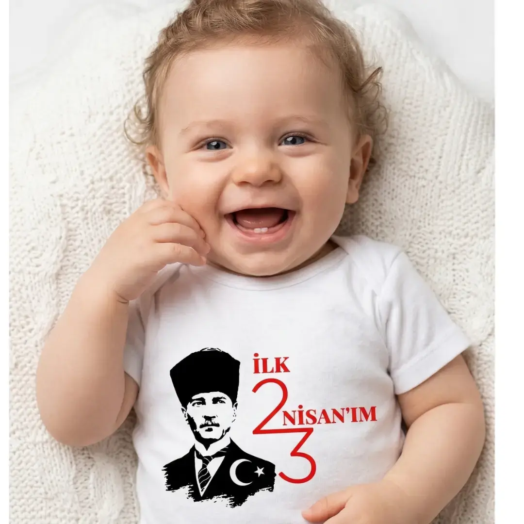 23 Nisan Ulusal Egemenlik Ve Çocuk Bayramı Baskılı Zıbın %100 pamuk kaliteli baskı.