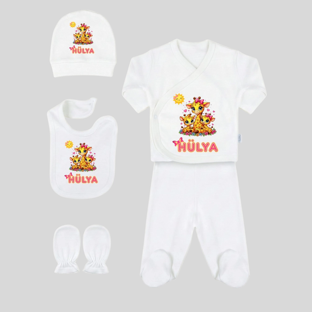5’li Hastane Çıkış Seti Sevimli Anne Zürafa ve Bebekleri Baskılı