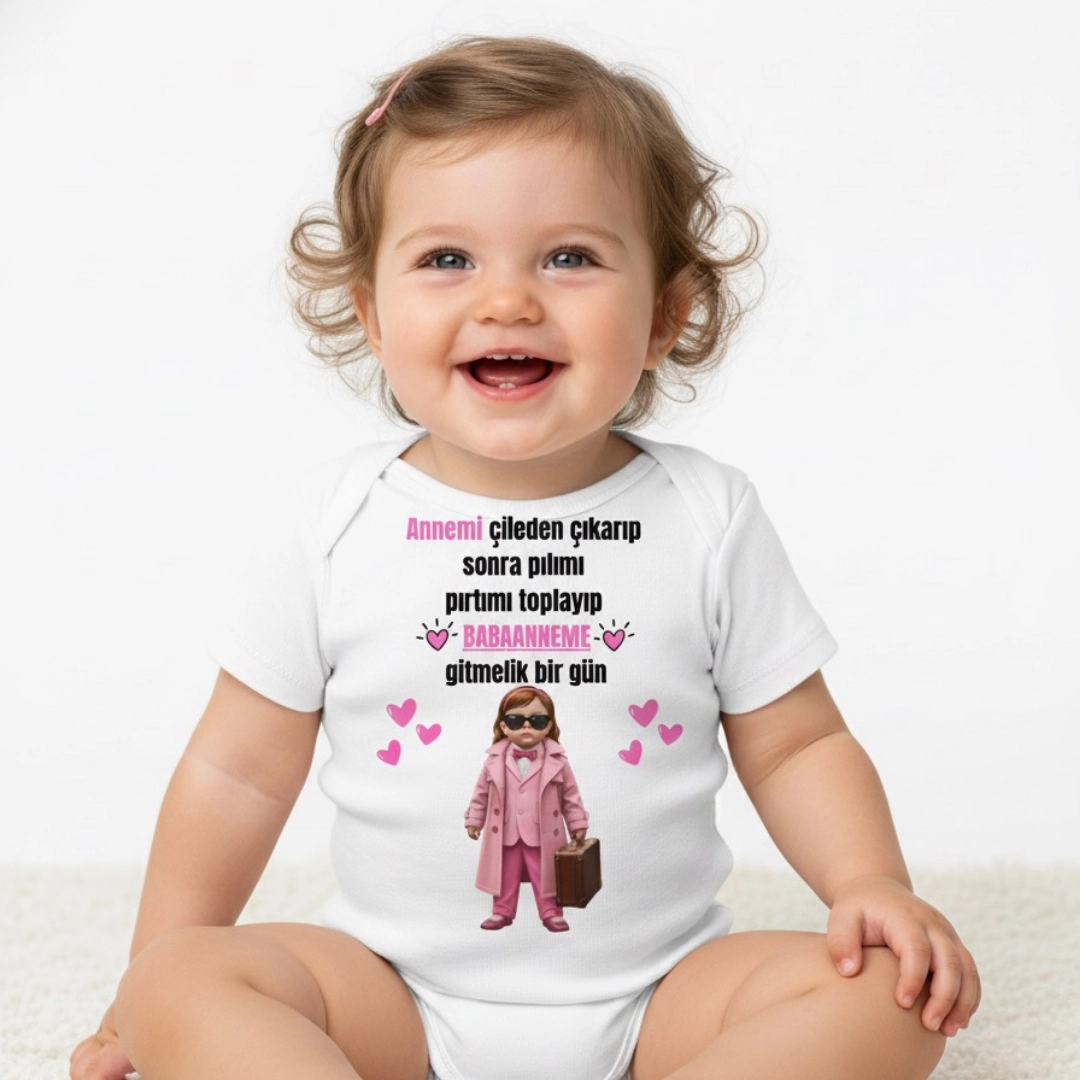 Annemi Çileden Çıkarıp Babaanne Baskılı Zıbın (2) – zarf yaka, çıtçıtlı, rahat kalıp %100 pamuk interlok body.