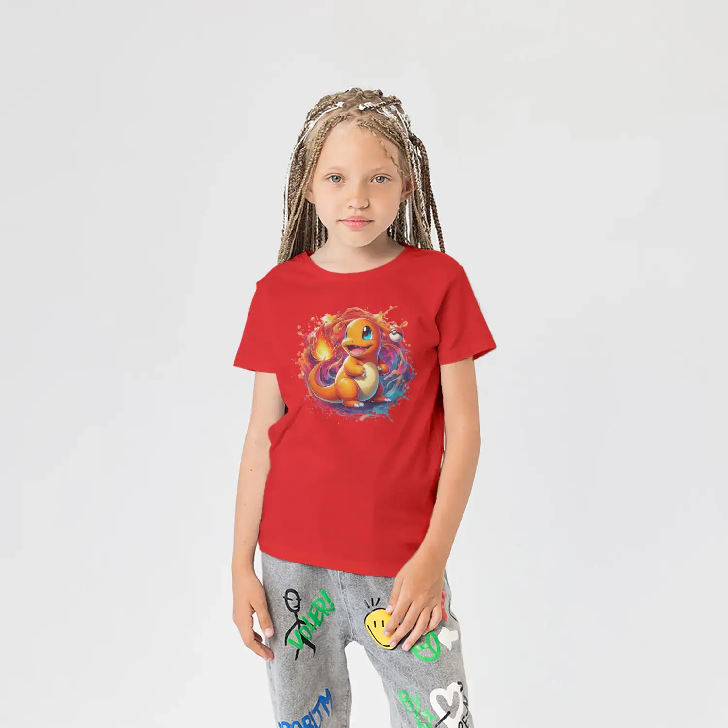 Baskılı çocuk tişörtlerimiz, OEKO-TEX® sertifikalı %100 pamuklu penye kumaştan üretilir.