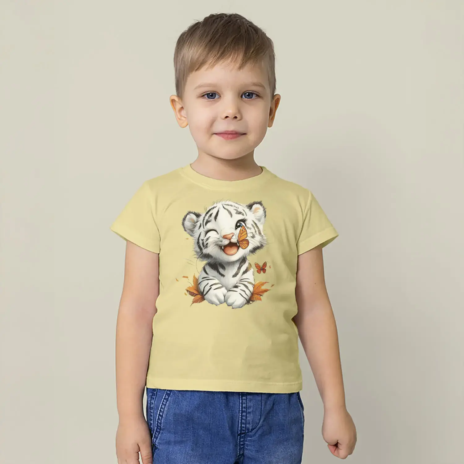 “Beyaz Kaplan Yavrusu Kelebek Baskılı Erkek Çocuk Tişört” için yorum yapan ilk kişi siz olun