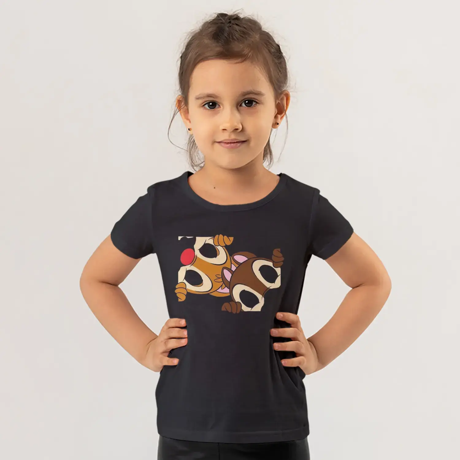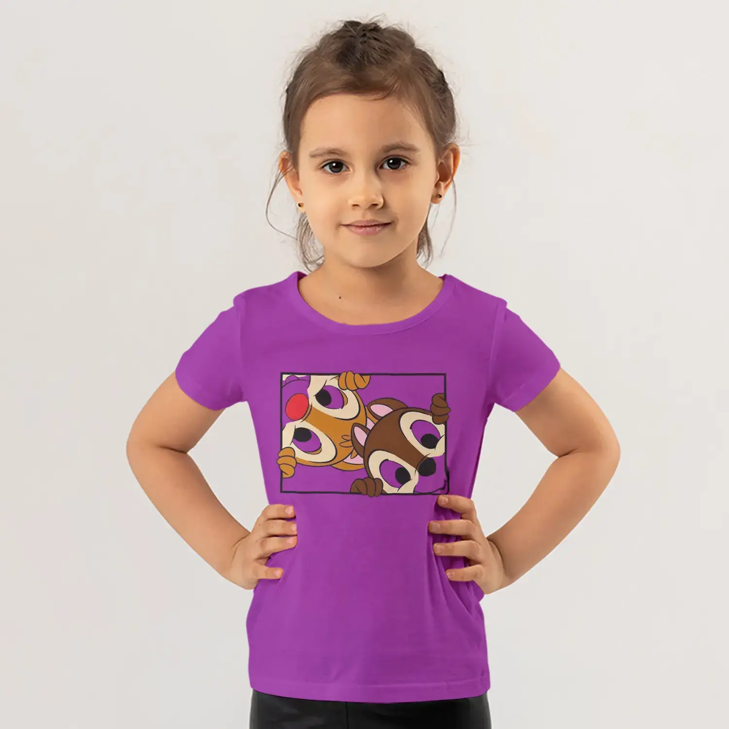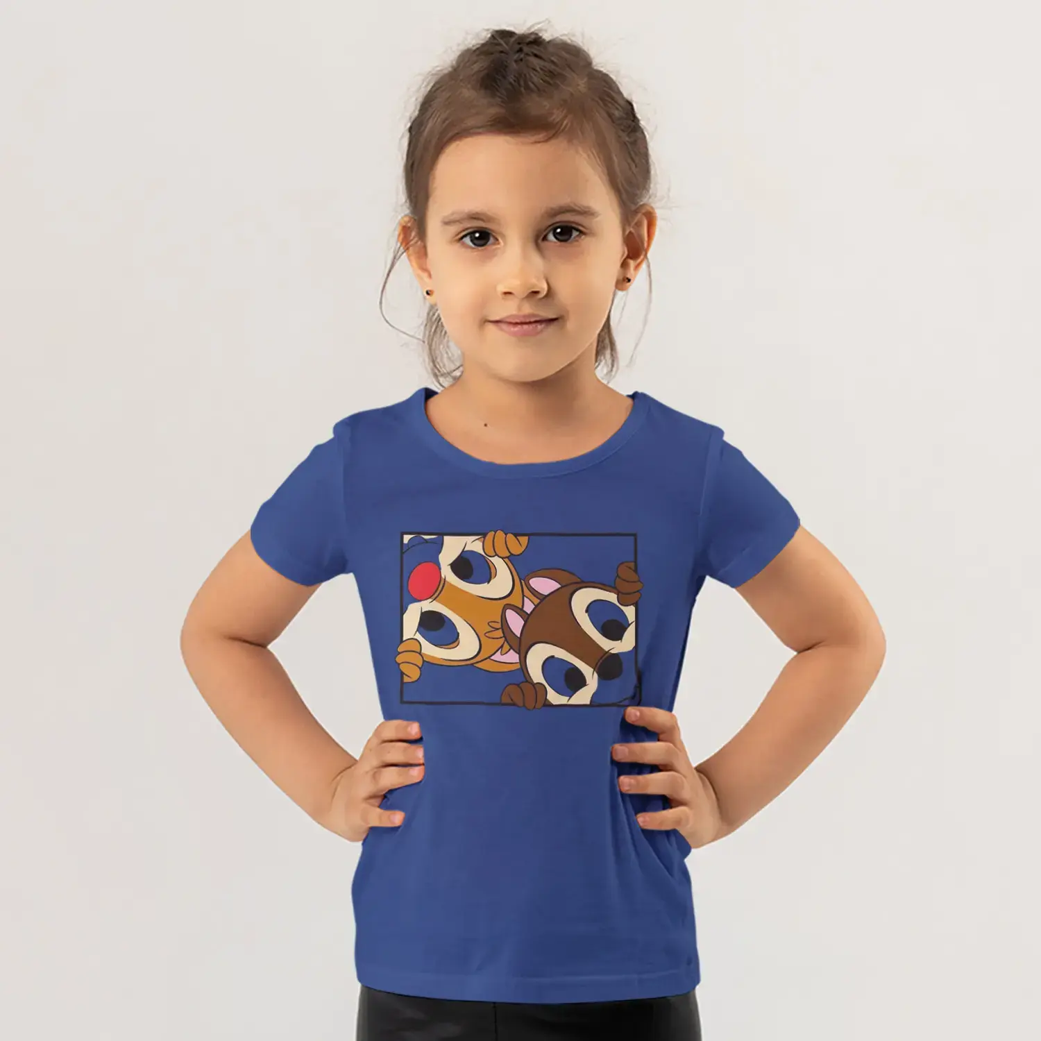 Çerçeveden Bakan İkili Sincap Karikatür Baskılı Kız Çocuk Tişörtü