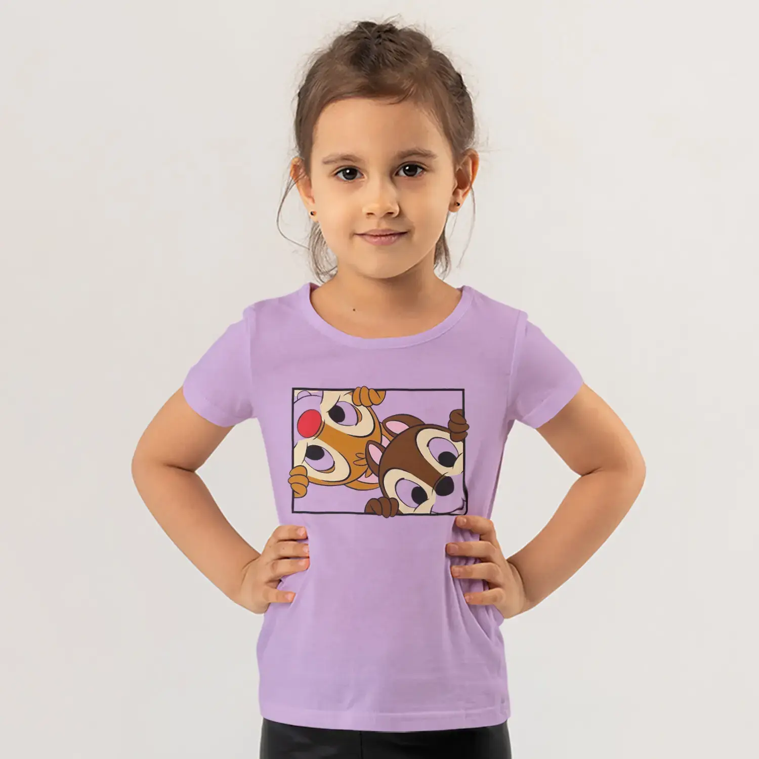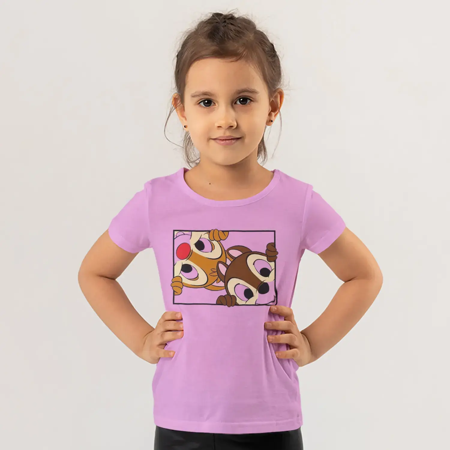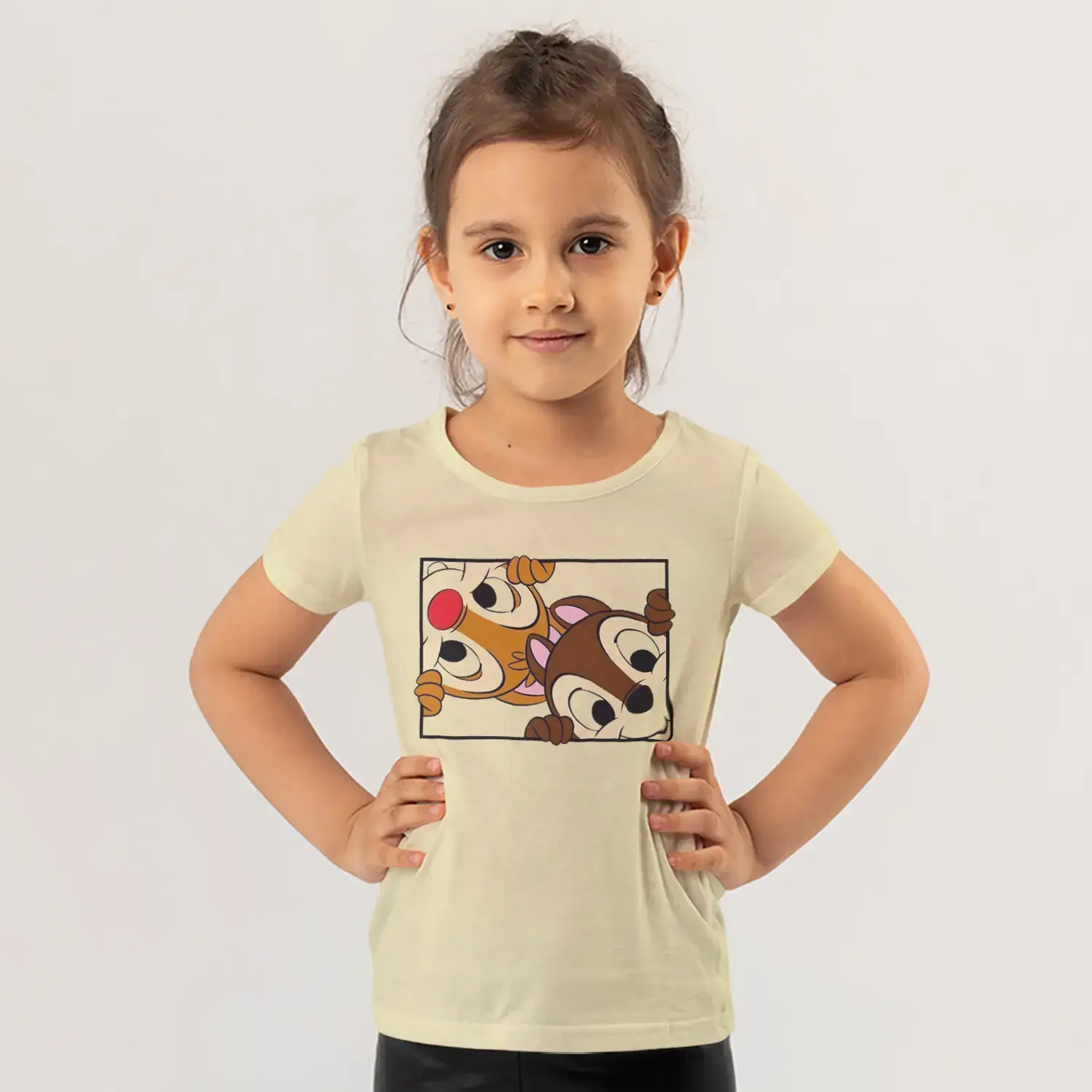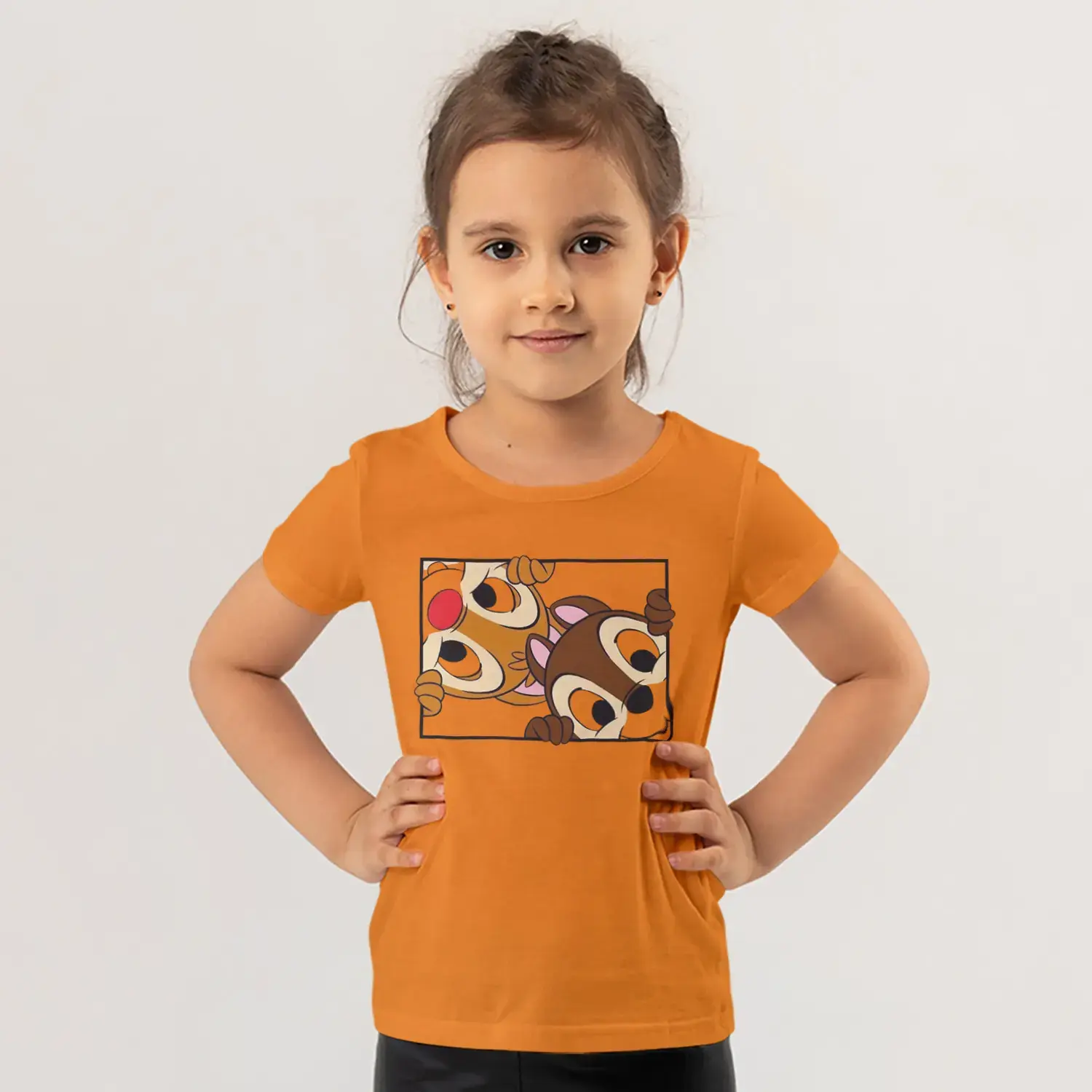 Çerçeveden Bakan İkili Sincap Karikatür Baskılı Kız Çocuk Tişörtü