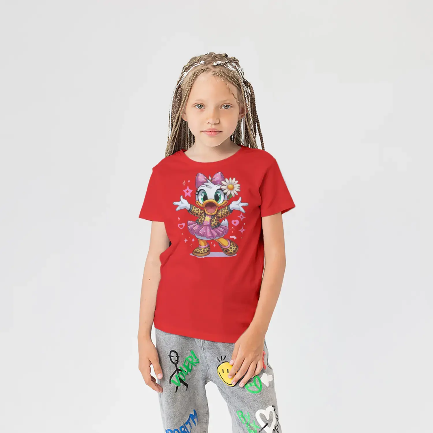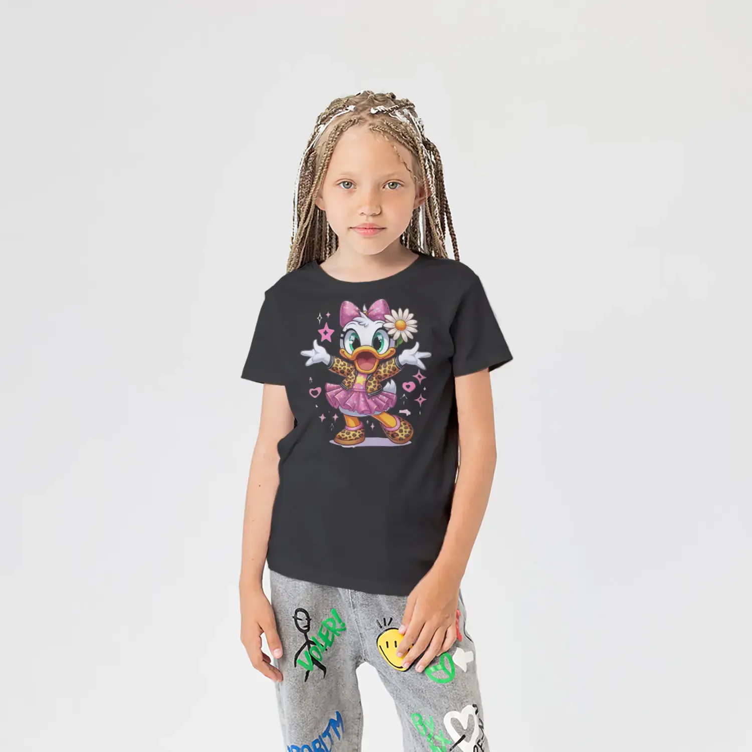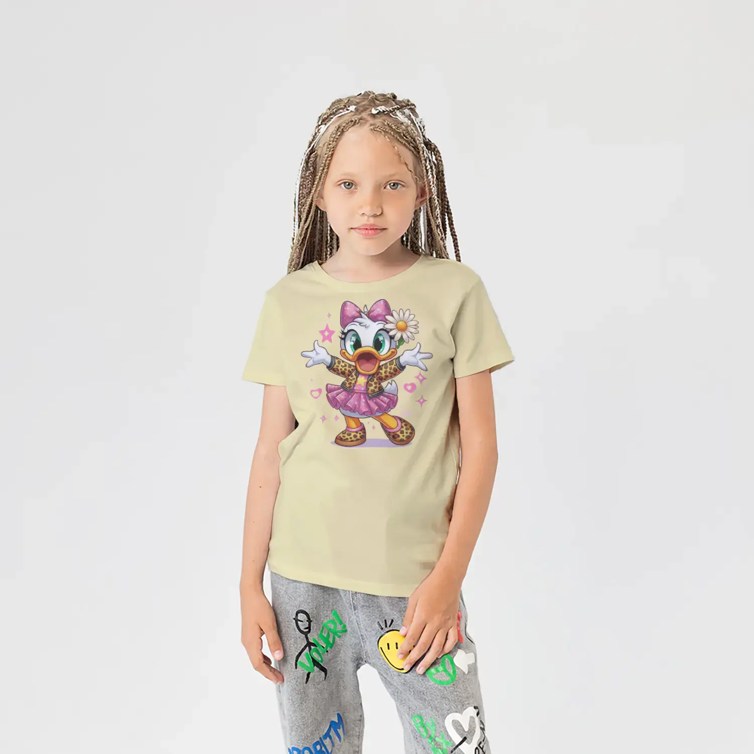“Çiçekli Şık Ördek Kız Figürlü Renkli Baskılı Kız Çocuk Tişörtü” için yorum yapan ilk kişi siz olun