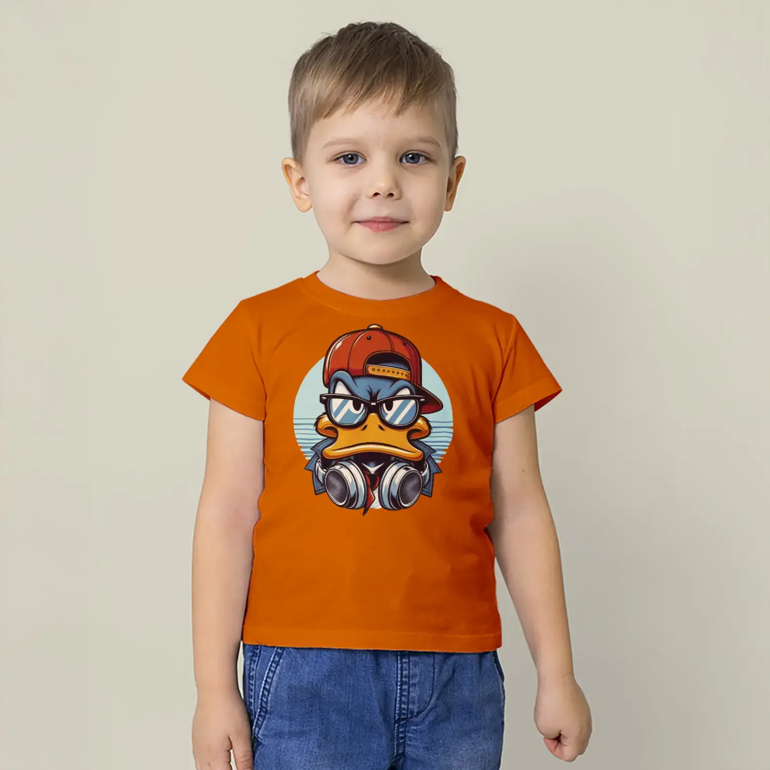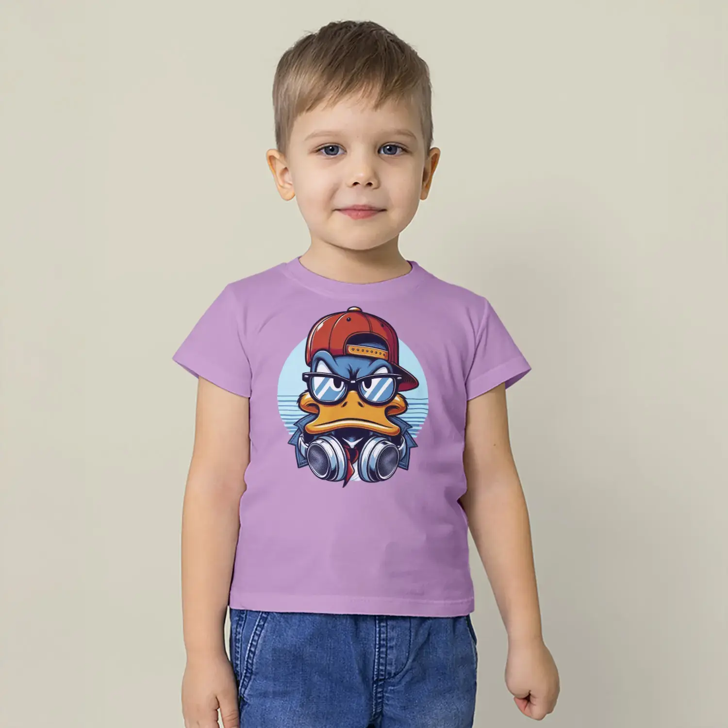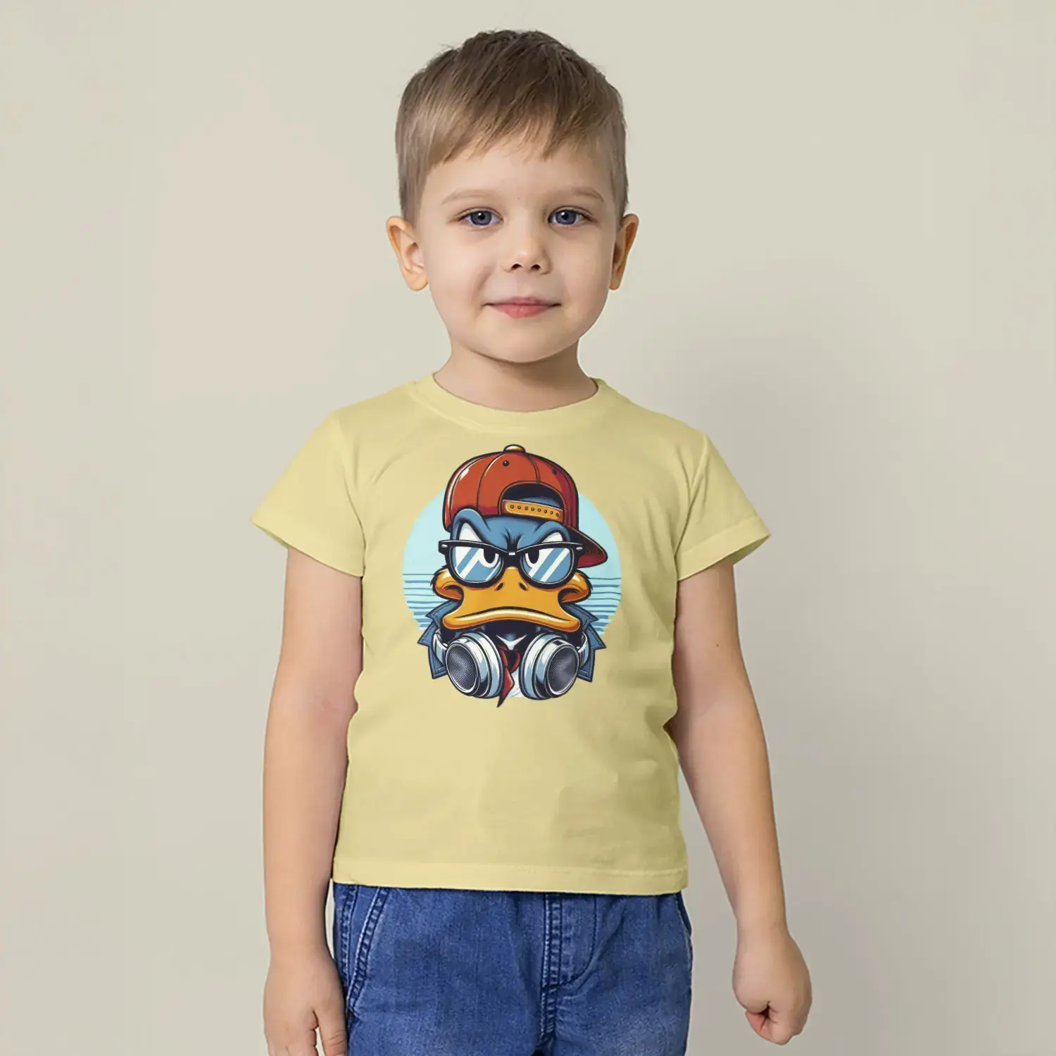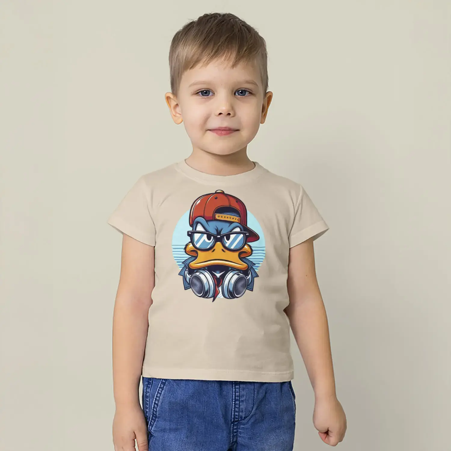 Havalı Ördek Kulaklıklı Hip Hop Baskılı Erkek Çocuk Tişört