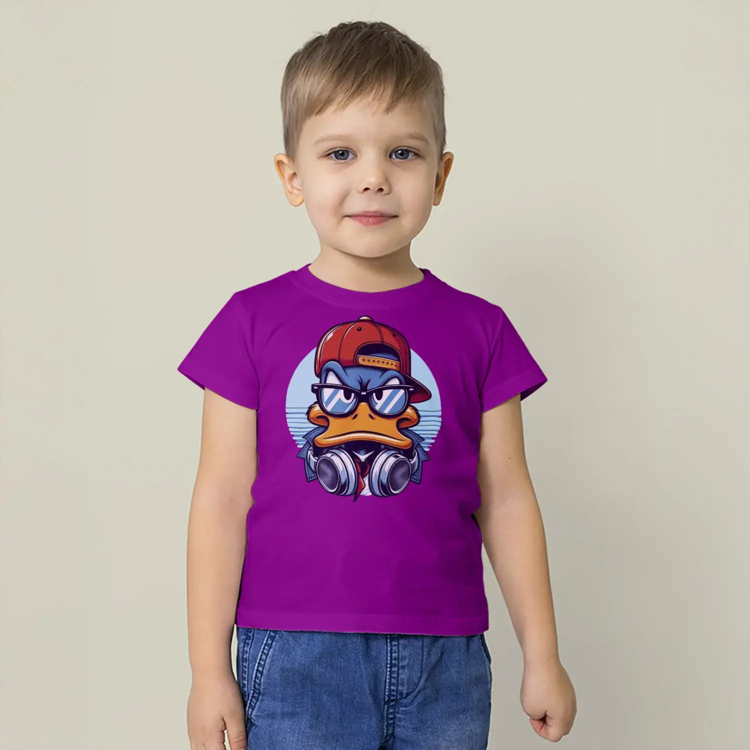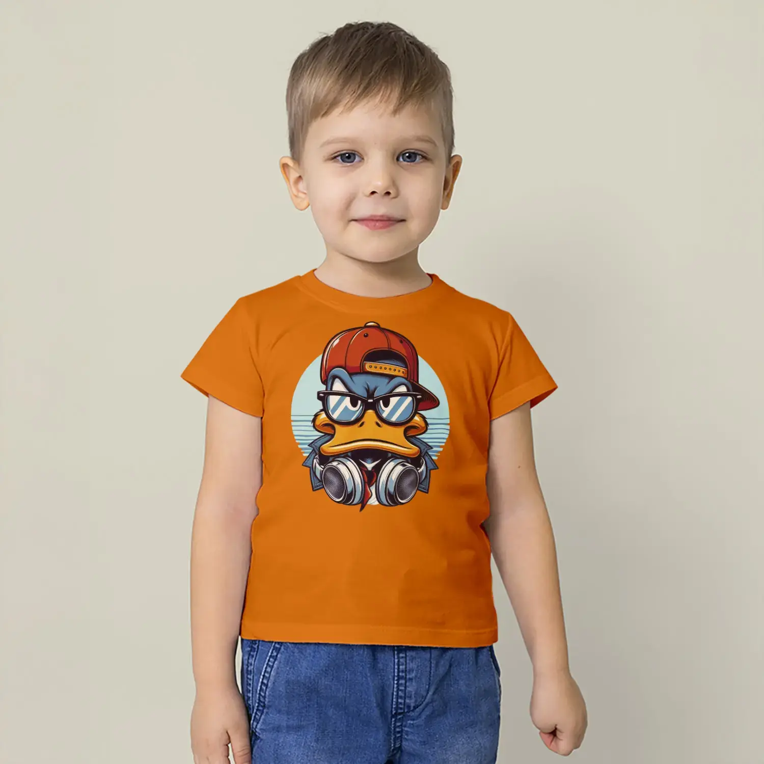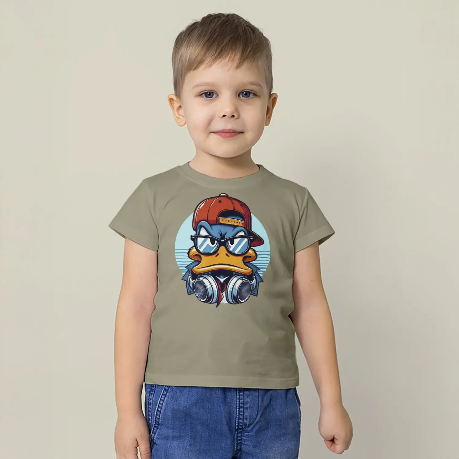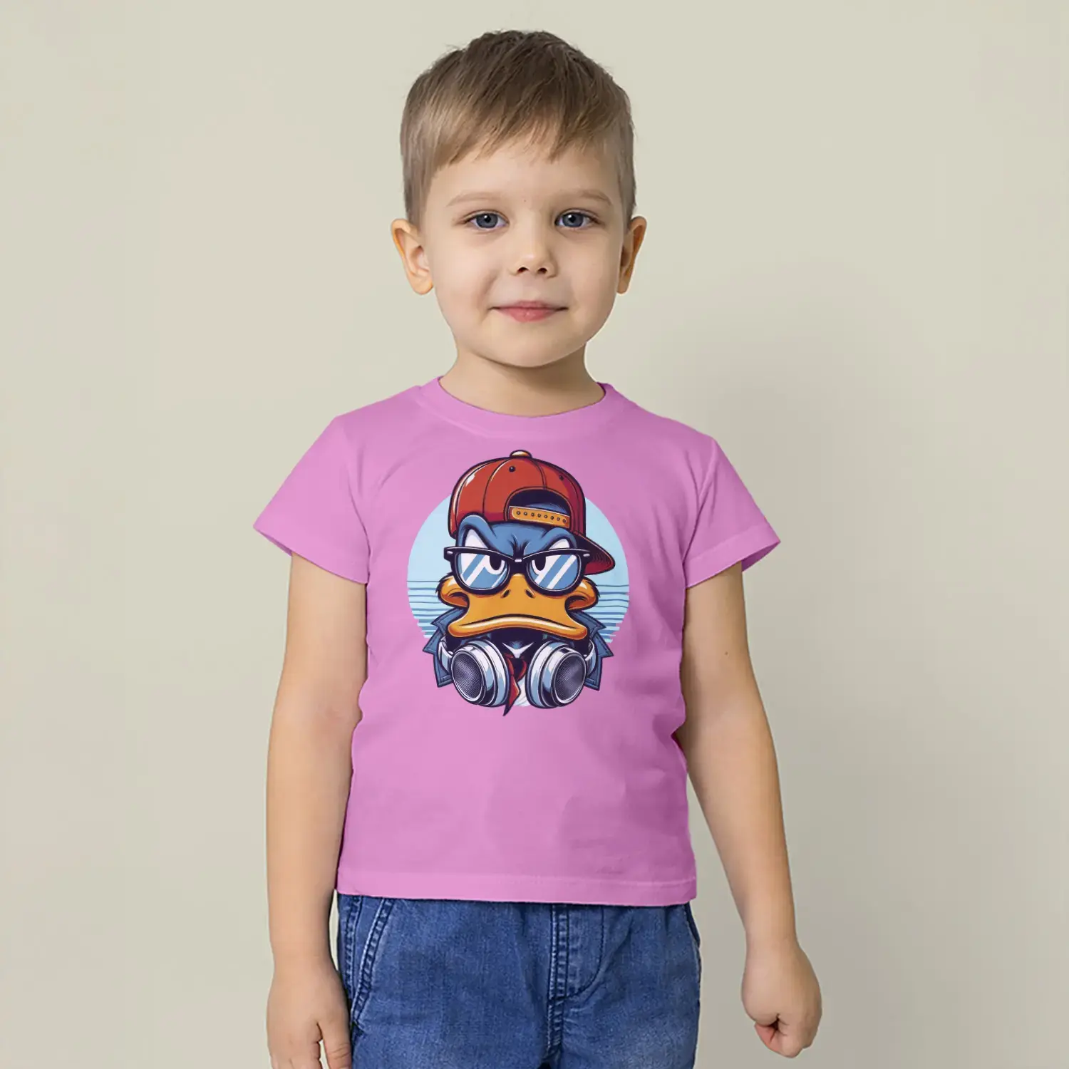 Havalı Ördek Kulaklıklı Hip Hop Baskılı Erkek Çocuk Tişört