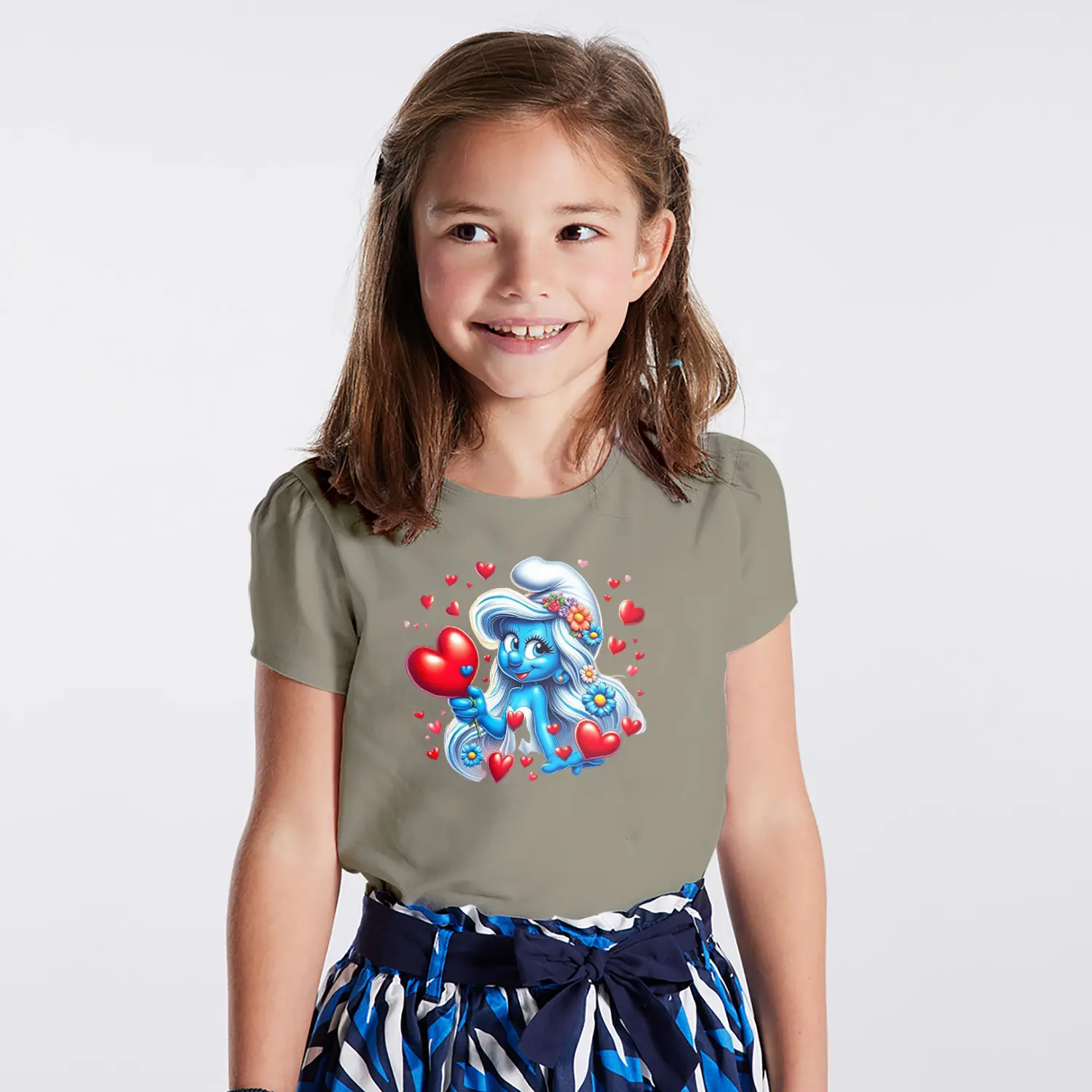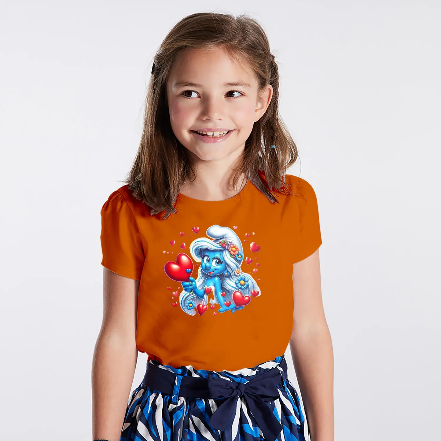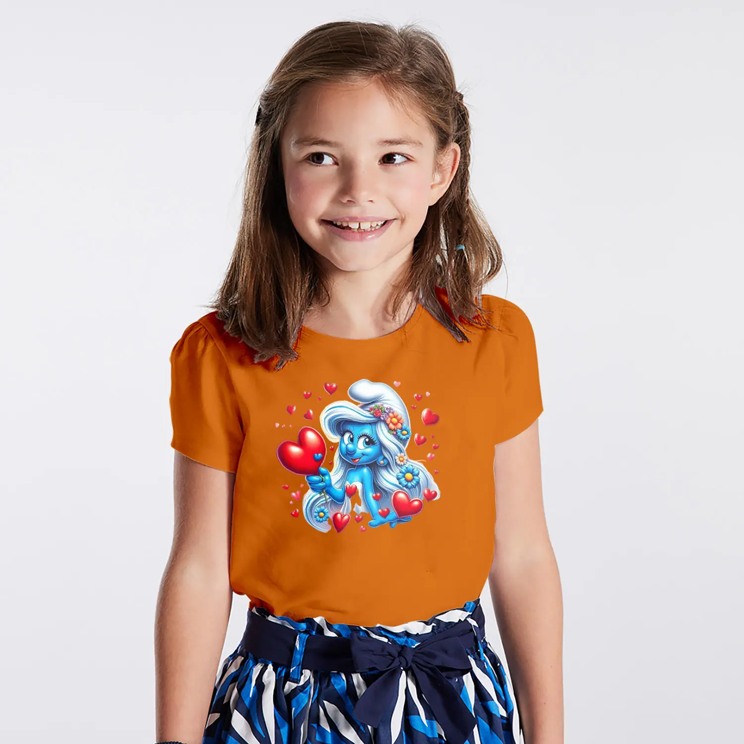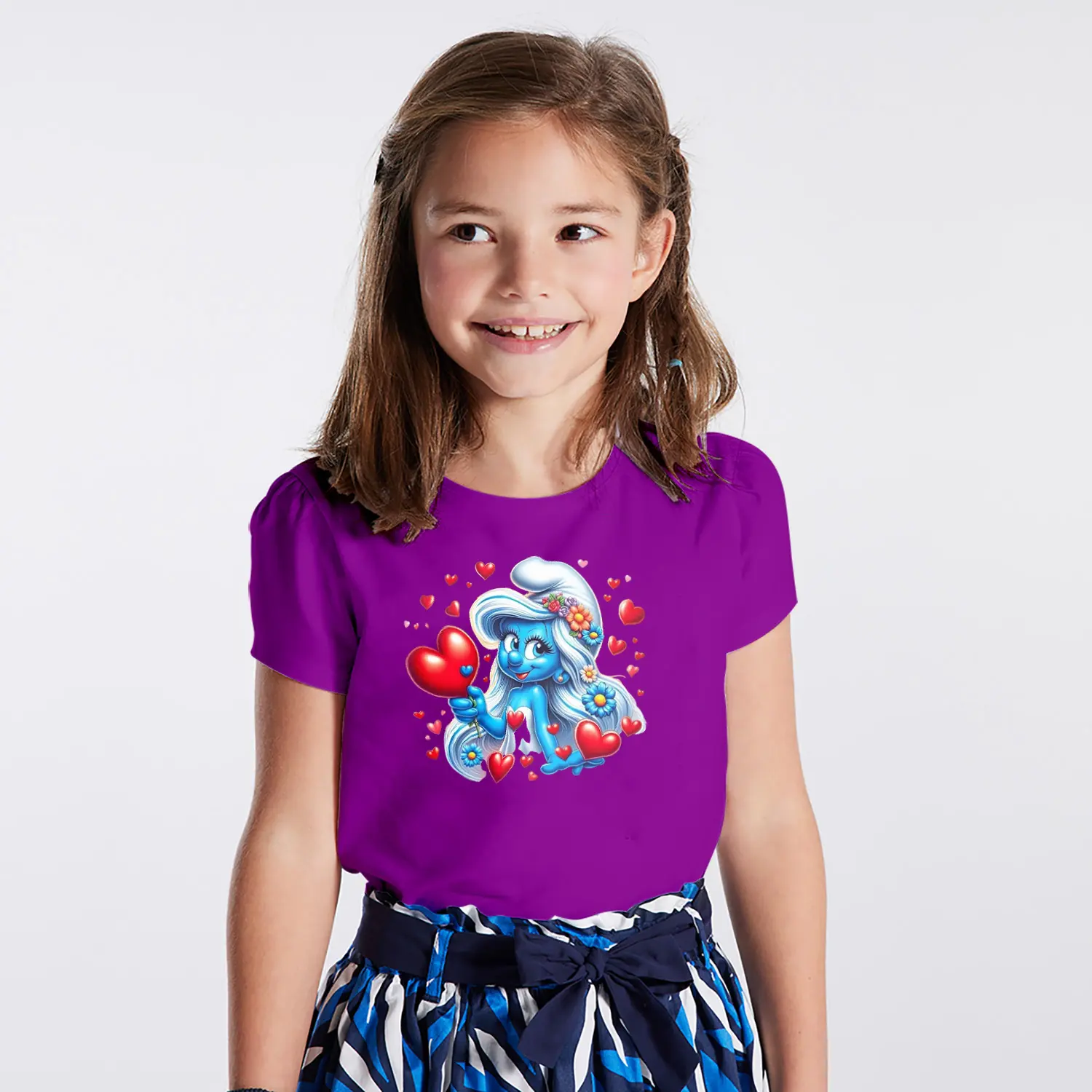 “Kalpli Çiçekli Mavi Cüce Kız Karikatür Figürlü Baskılı Kız Çocuk Tişörtü” için yorum yapan ilk kişi siz olun