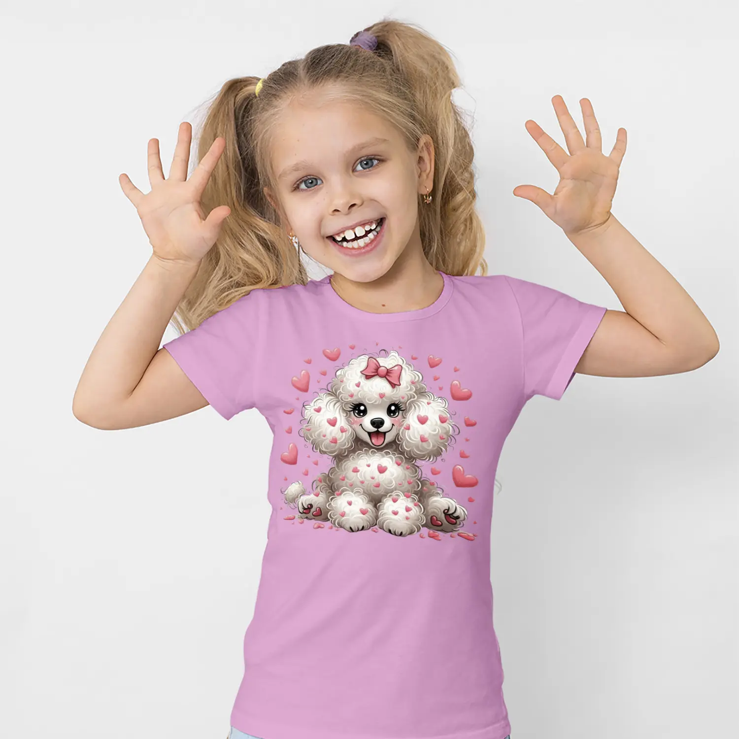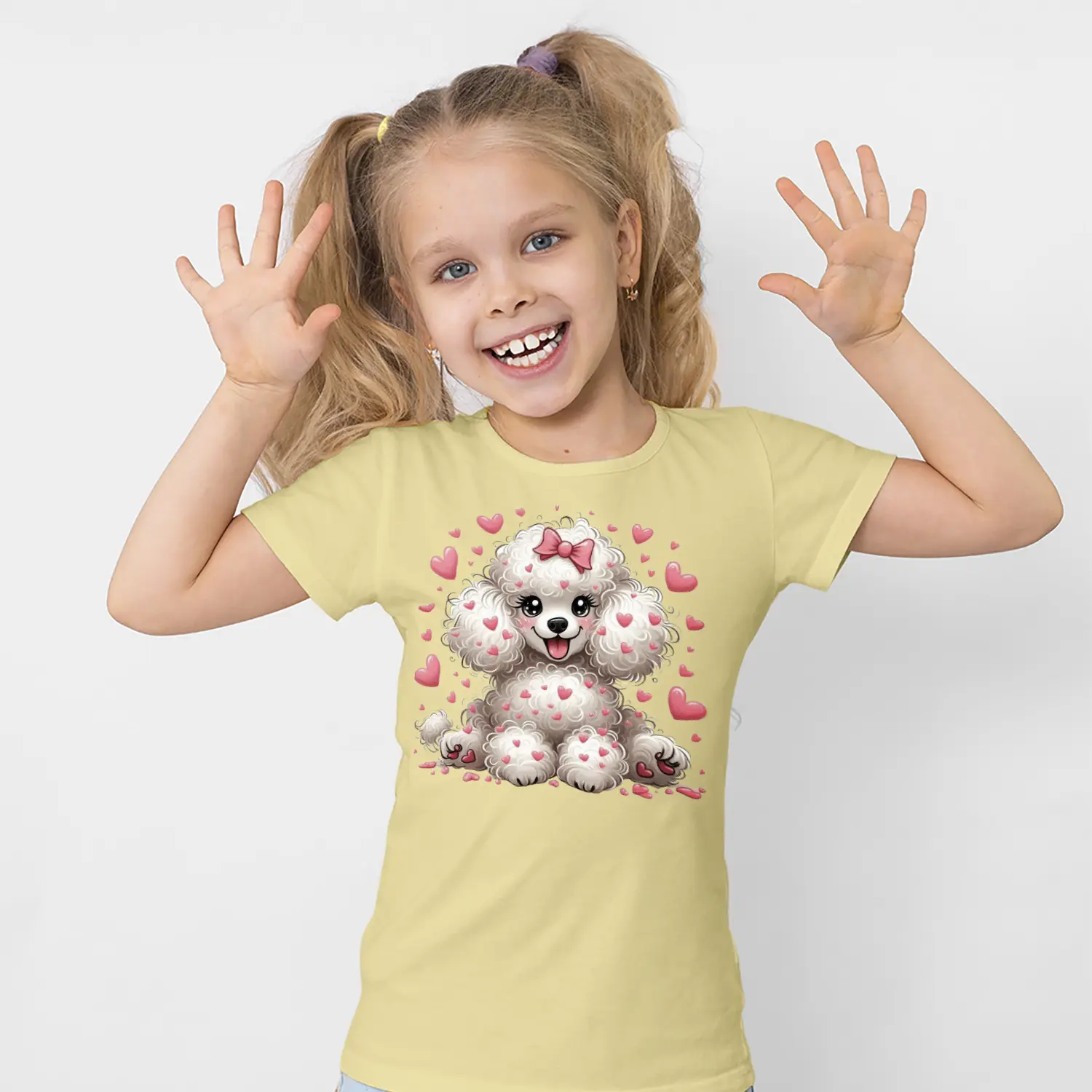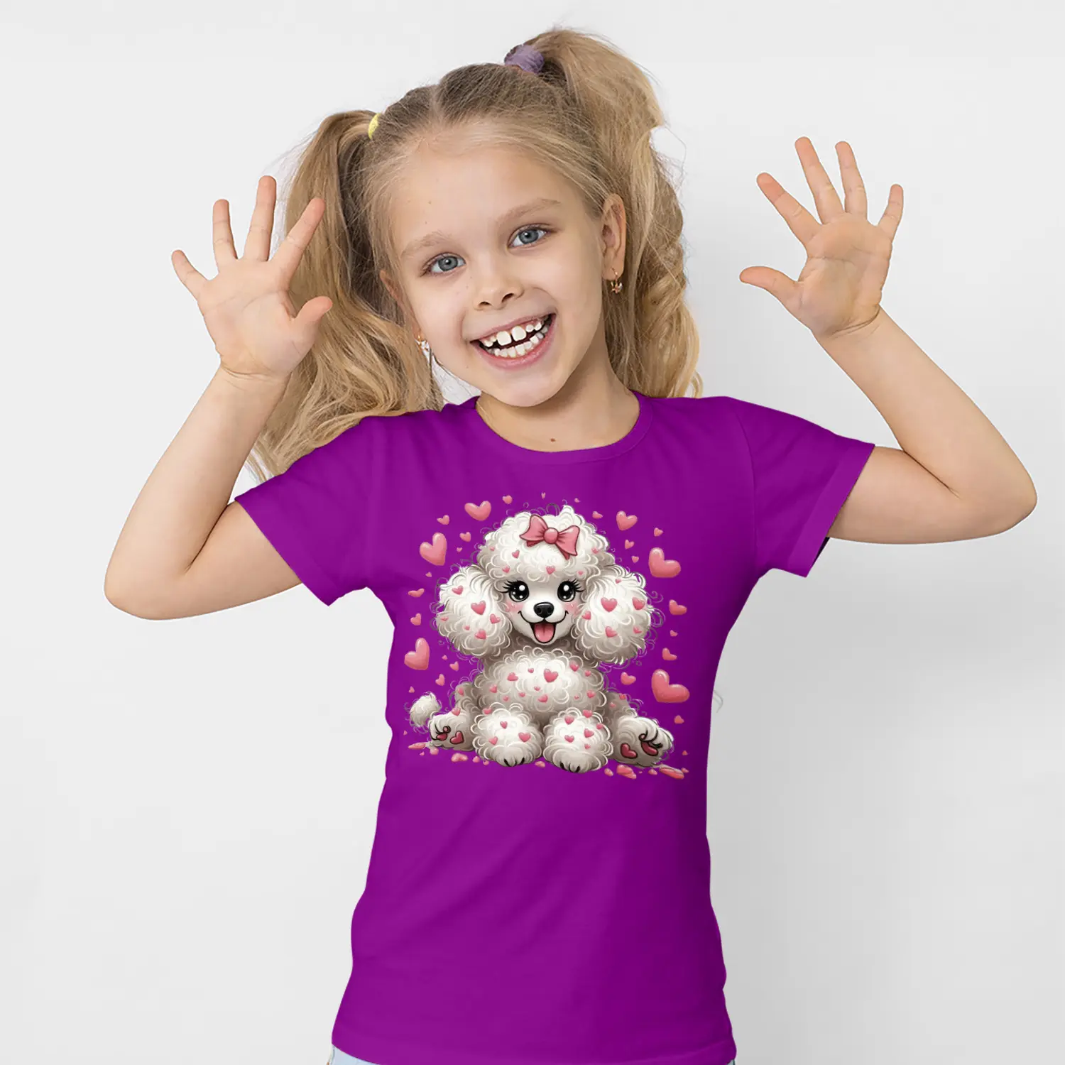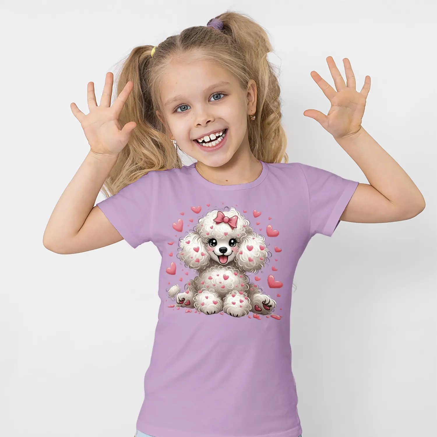 Kalpli Sevimli Kıvırcık Köpek Figürlü Baskılı Kız Çocuk Tişörtü