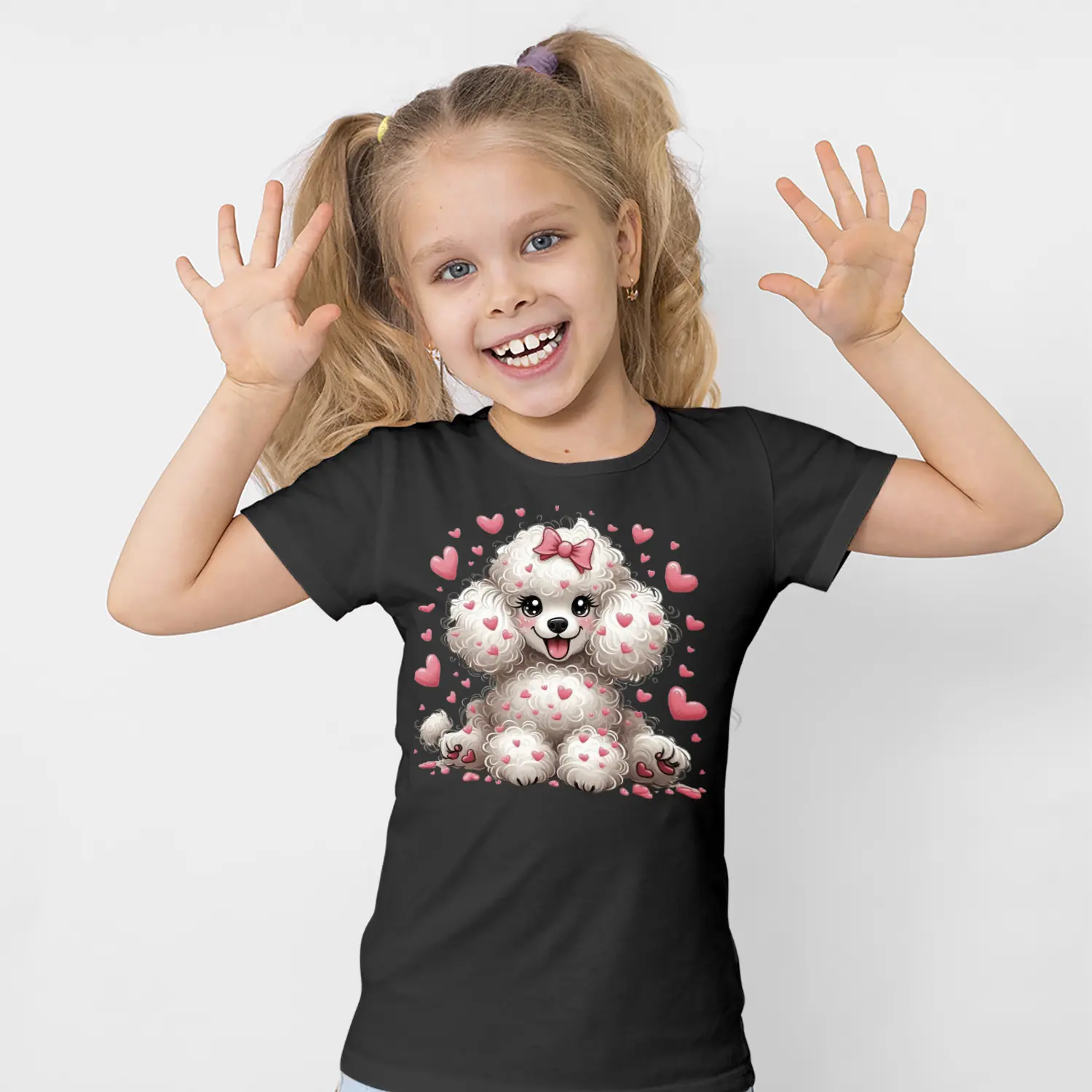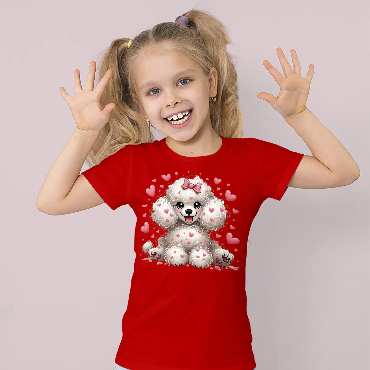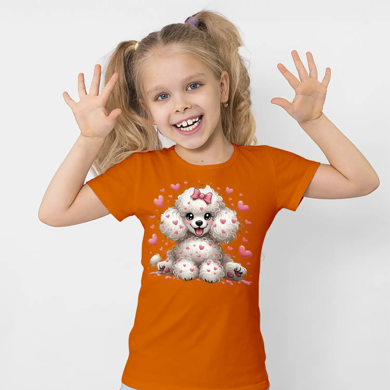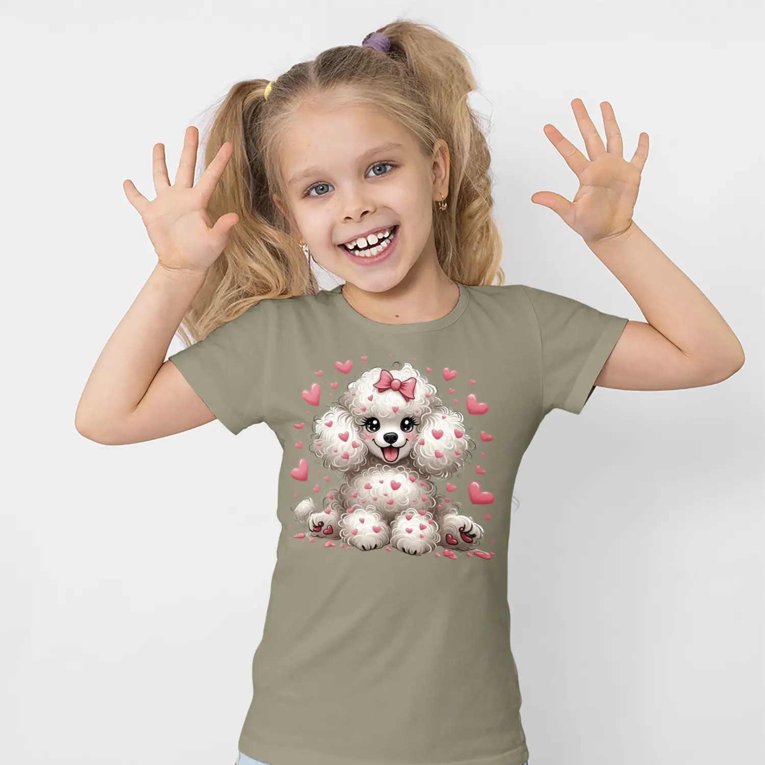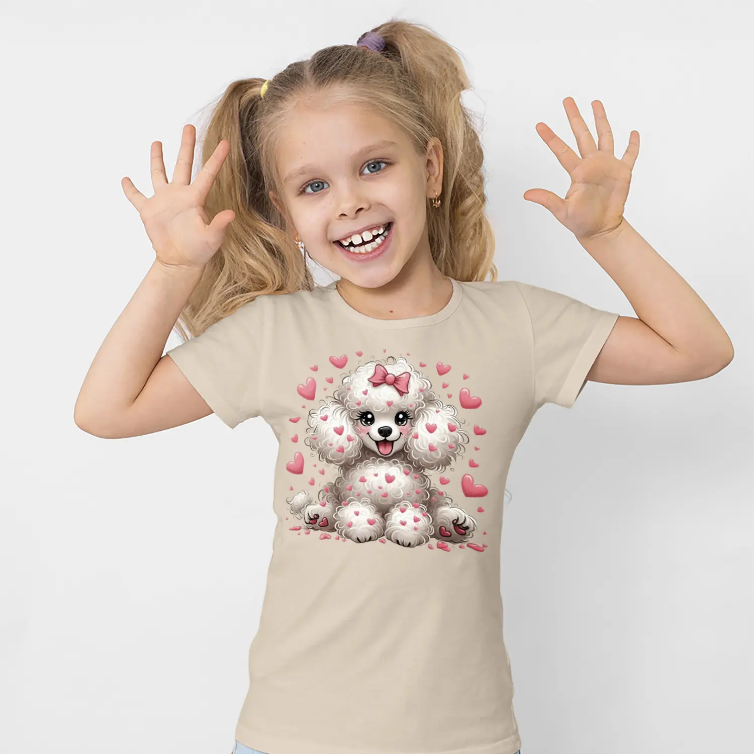 Kalpli Sevimli Kıvırcık Köpek Figürlü Baskılı Kız Çocuk Tişörtü