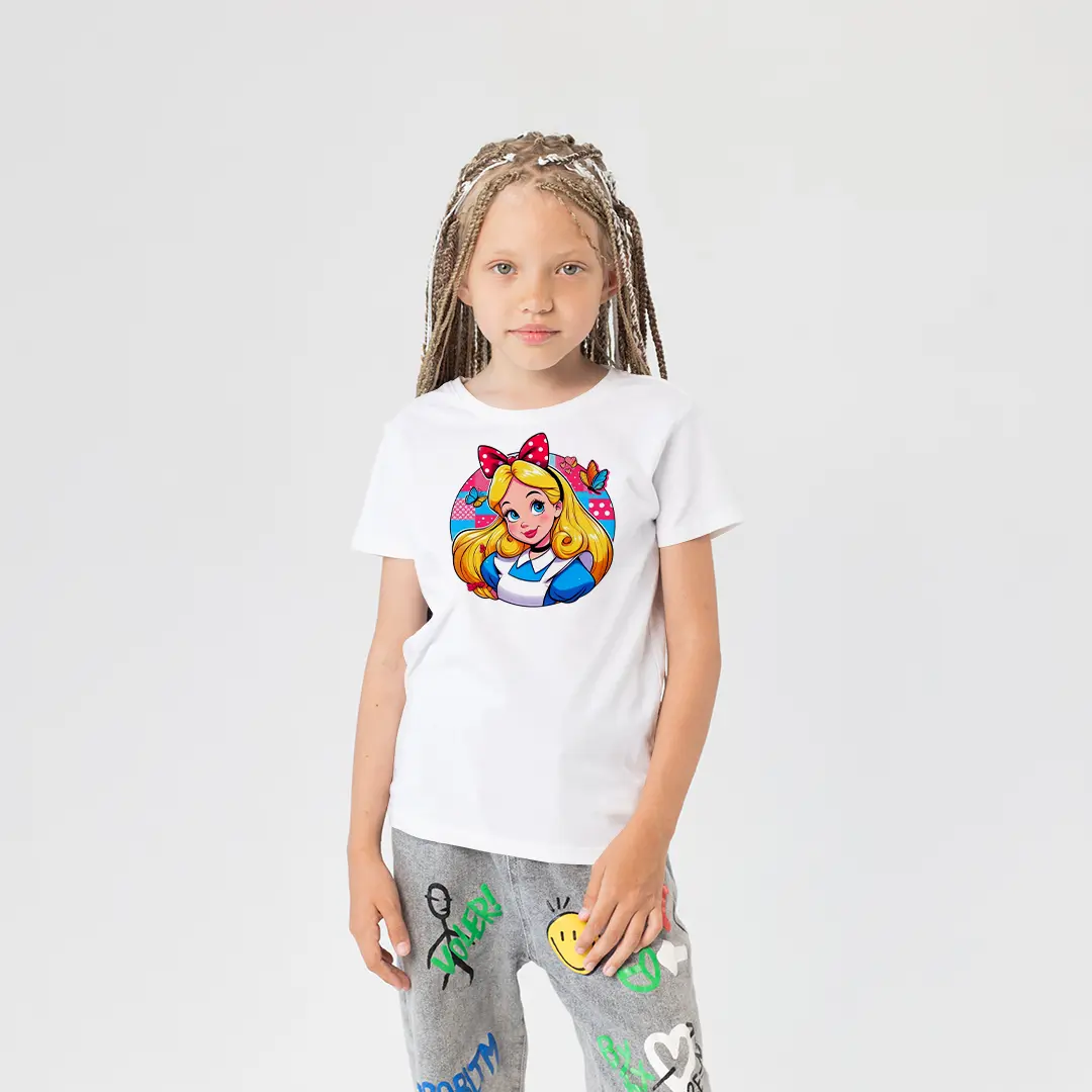 Kız Çocuk Alice Harikalar Diyarı Baskılı Tişört – Masal Karakterli Çocuk Tişört