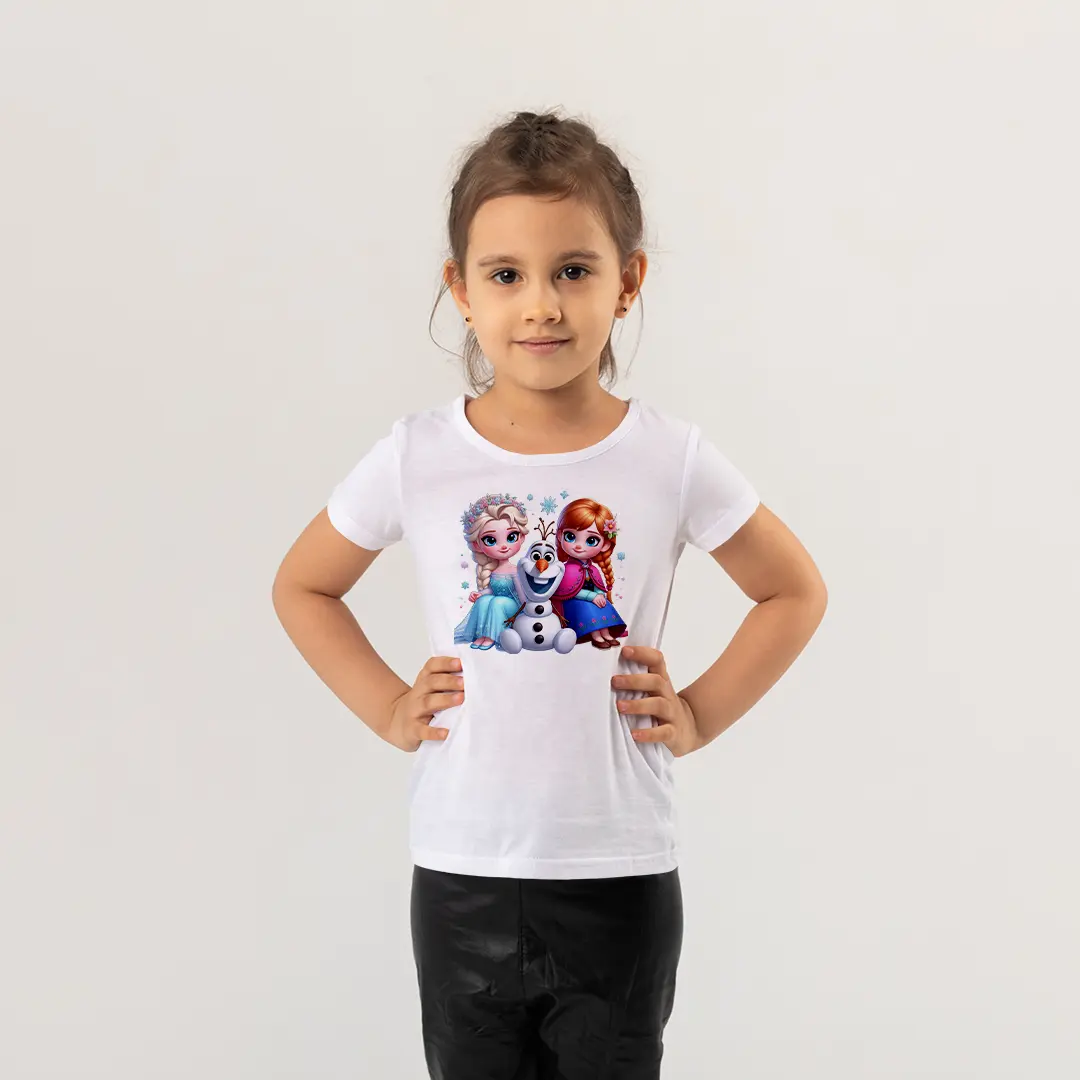 Kız Çocuk Elsa Anna Olaf Baskılı Tişört
