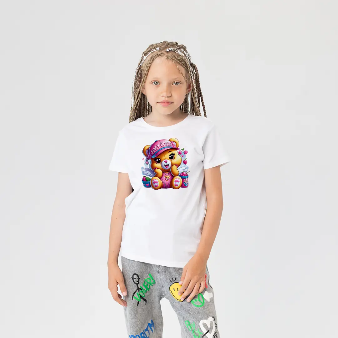 Kız Çocuk Sevimli Ayıcık Baskılı Tişört – Renkli Karakter Çocuk Tişört