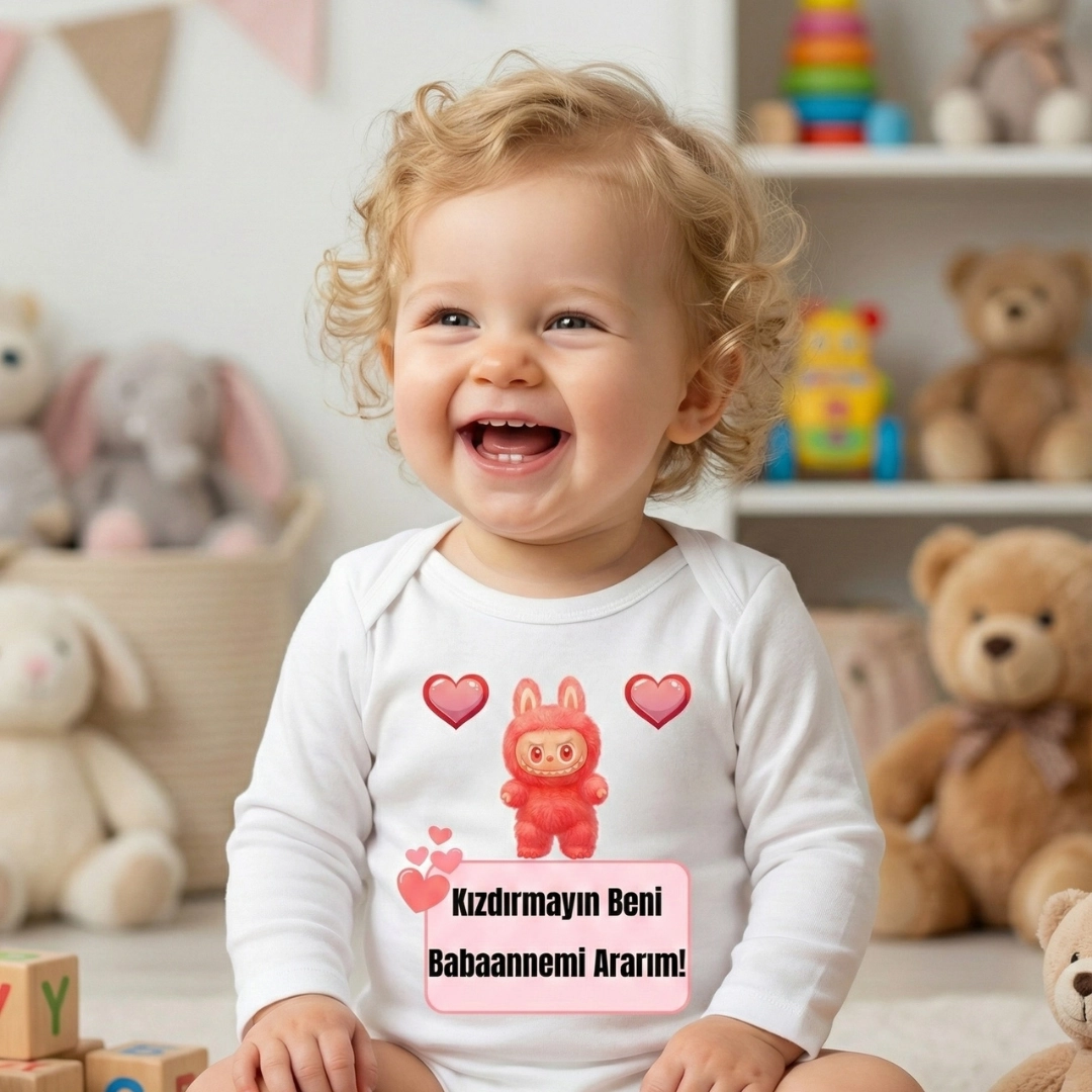 Kızdırmayın Beni Babaannemi Ararım Baskılı Zıbın – zarf yaka, çıtçıtlı, rahat kalıp %100 pamuk interlok body.