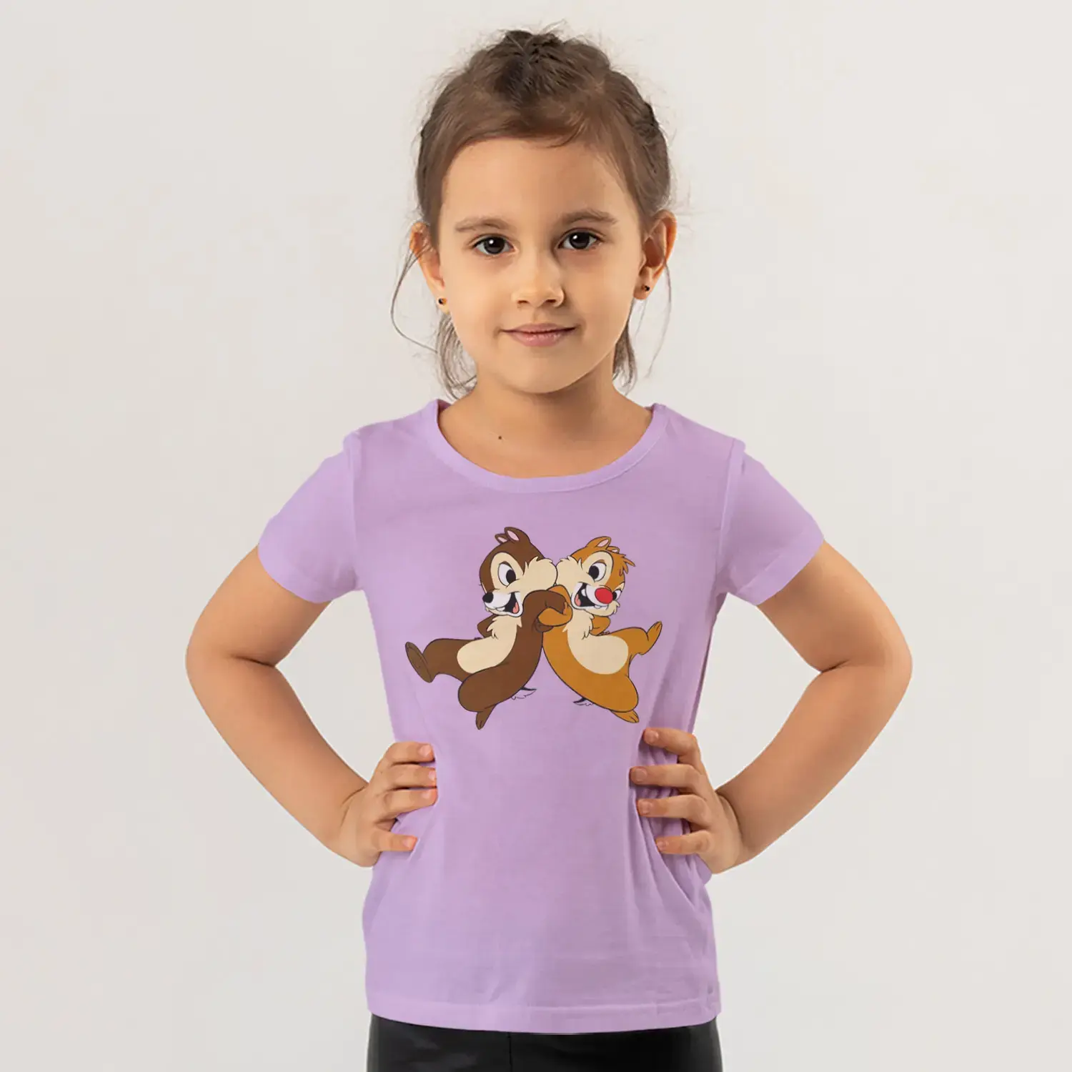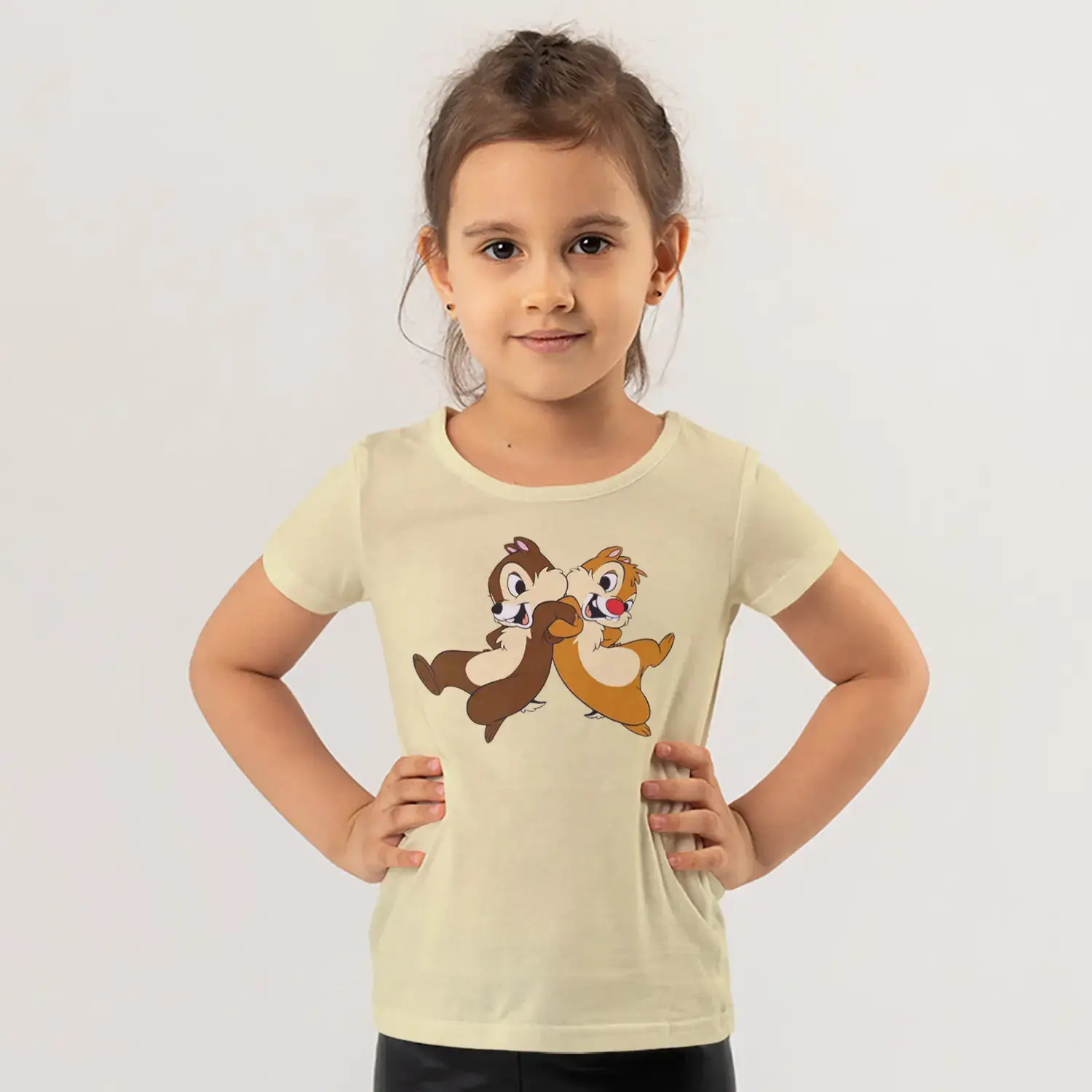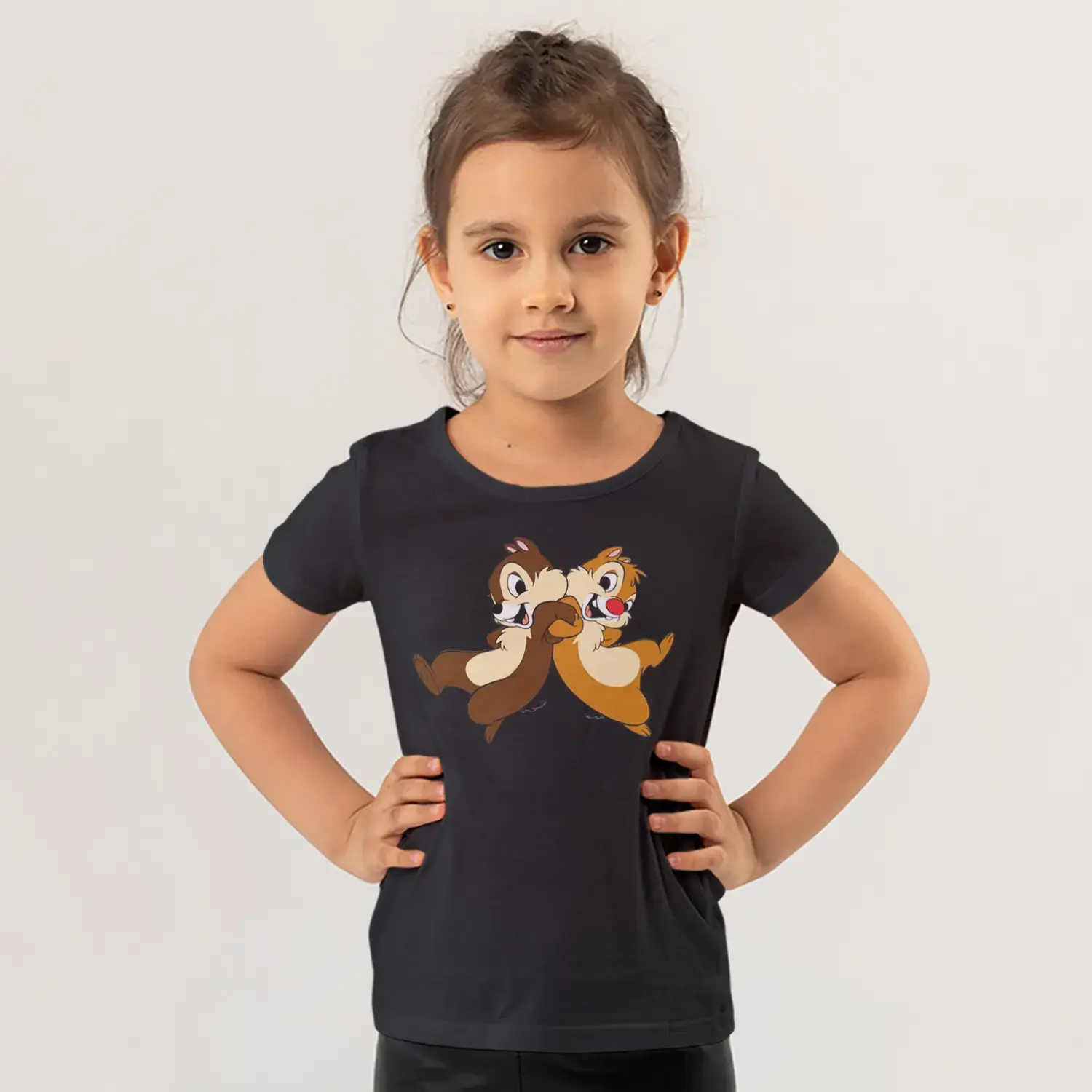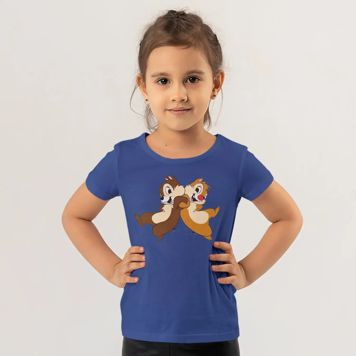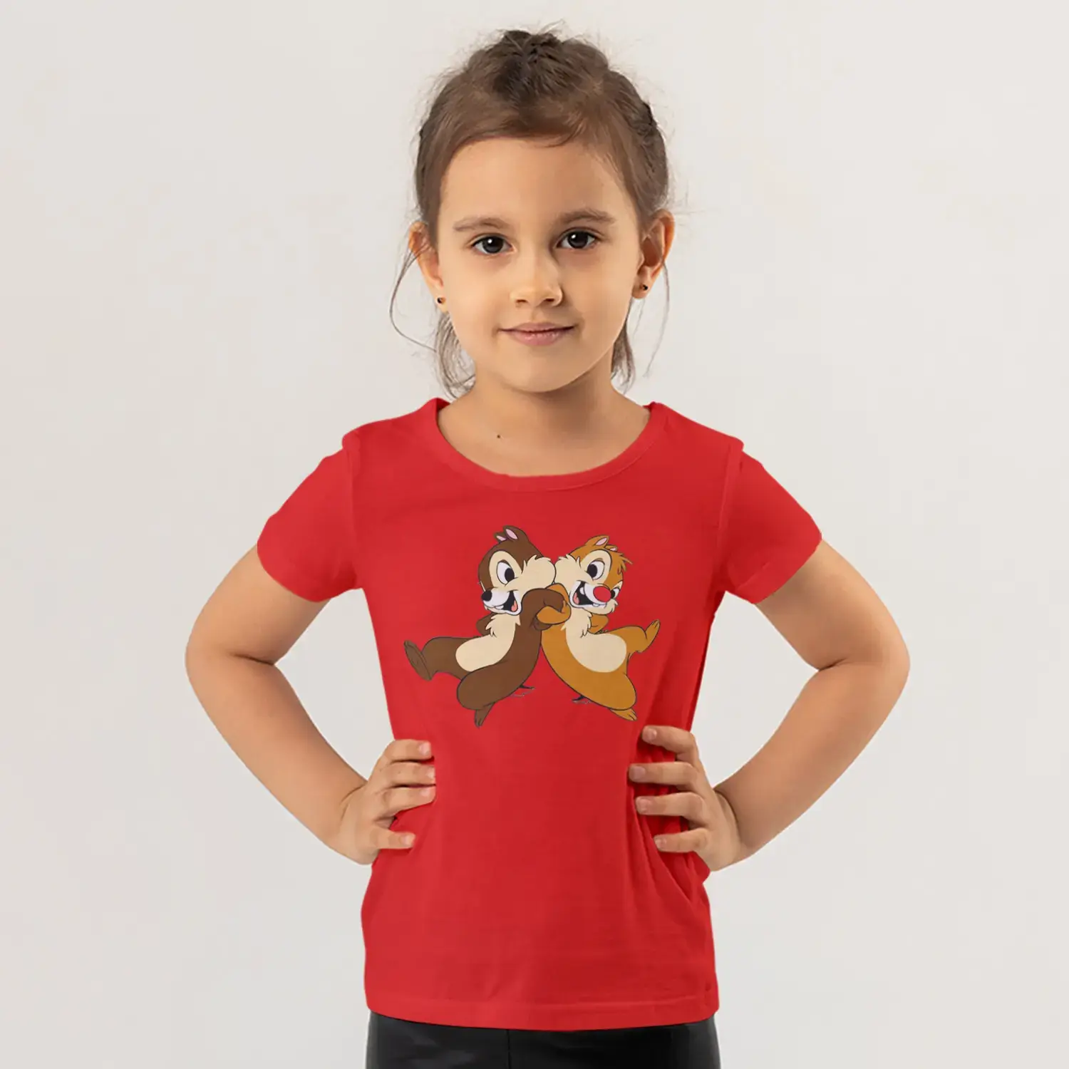 Koşan İkili Sincap Arkadaşlar Karikatür Baskılı Kız Çocuk Tişörtü