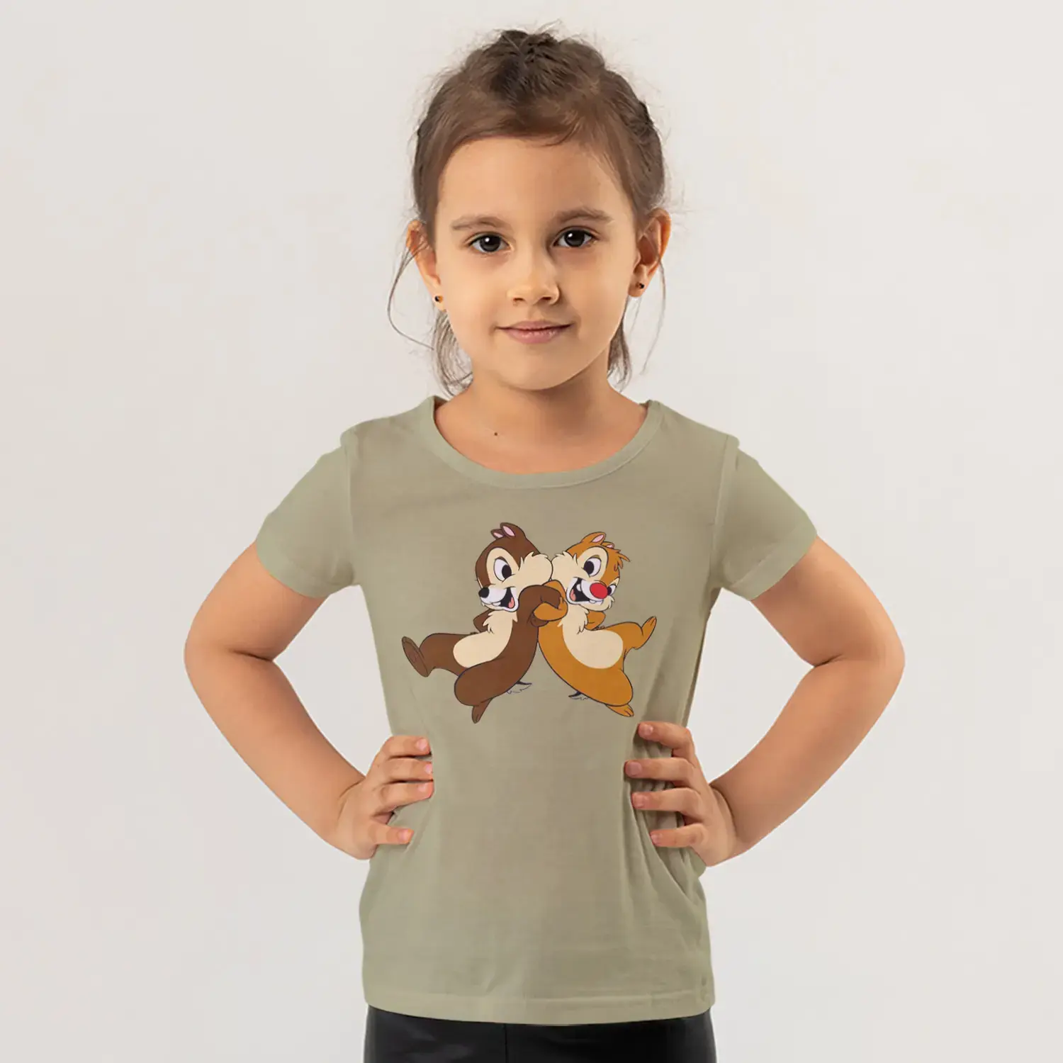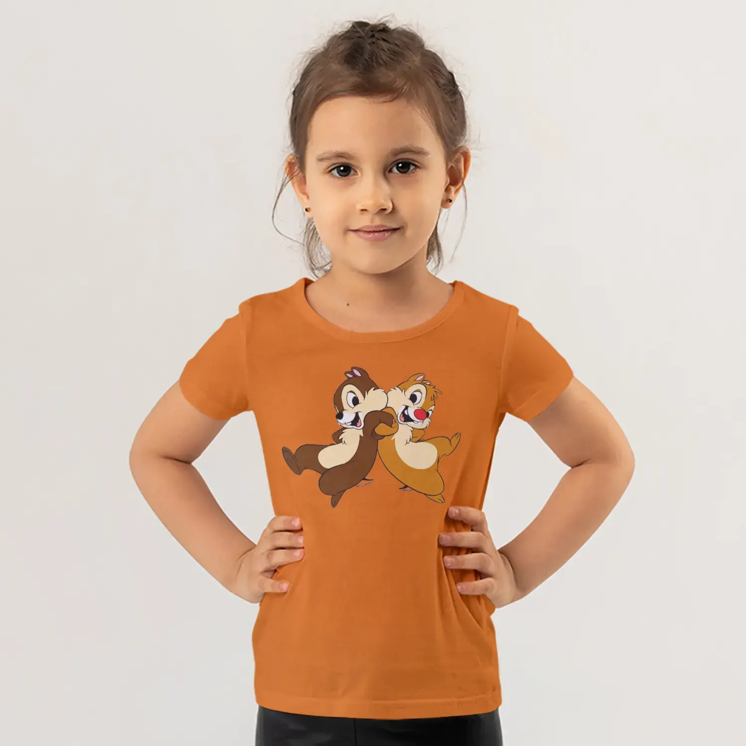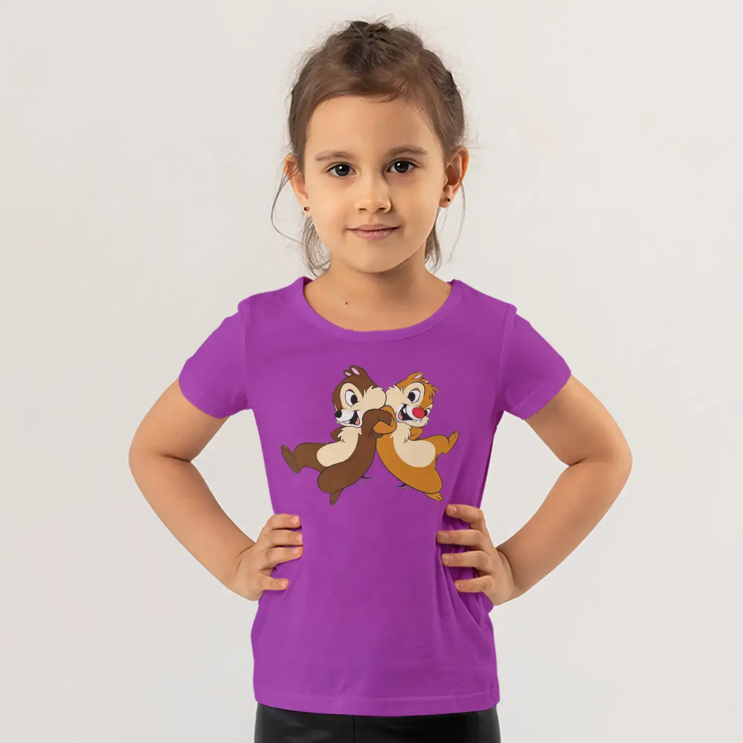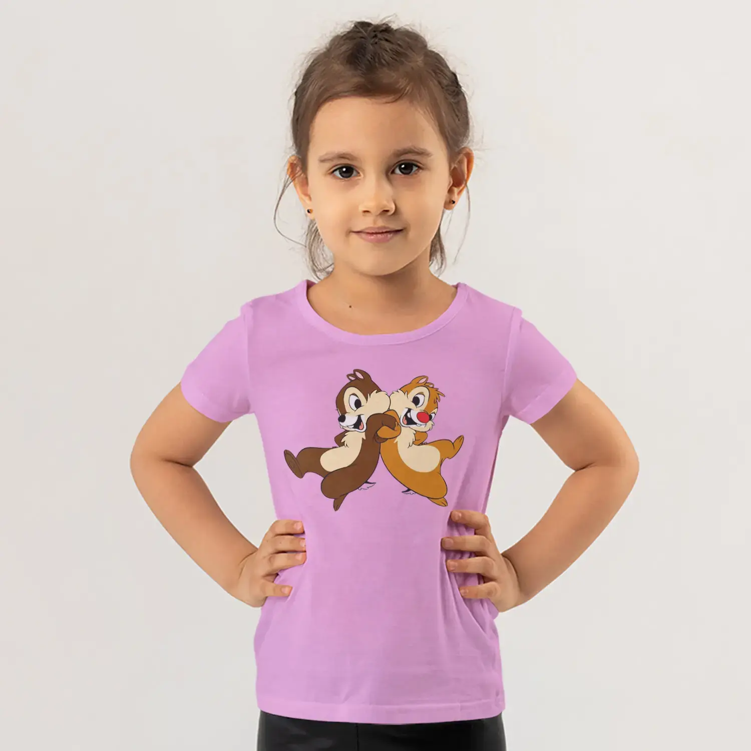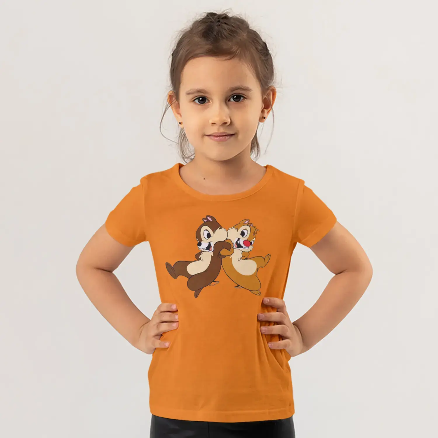 Koşan İkili Sincap Arkadaşlar Karikatür Baskılı Kız Çocuk Tişörtü