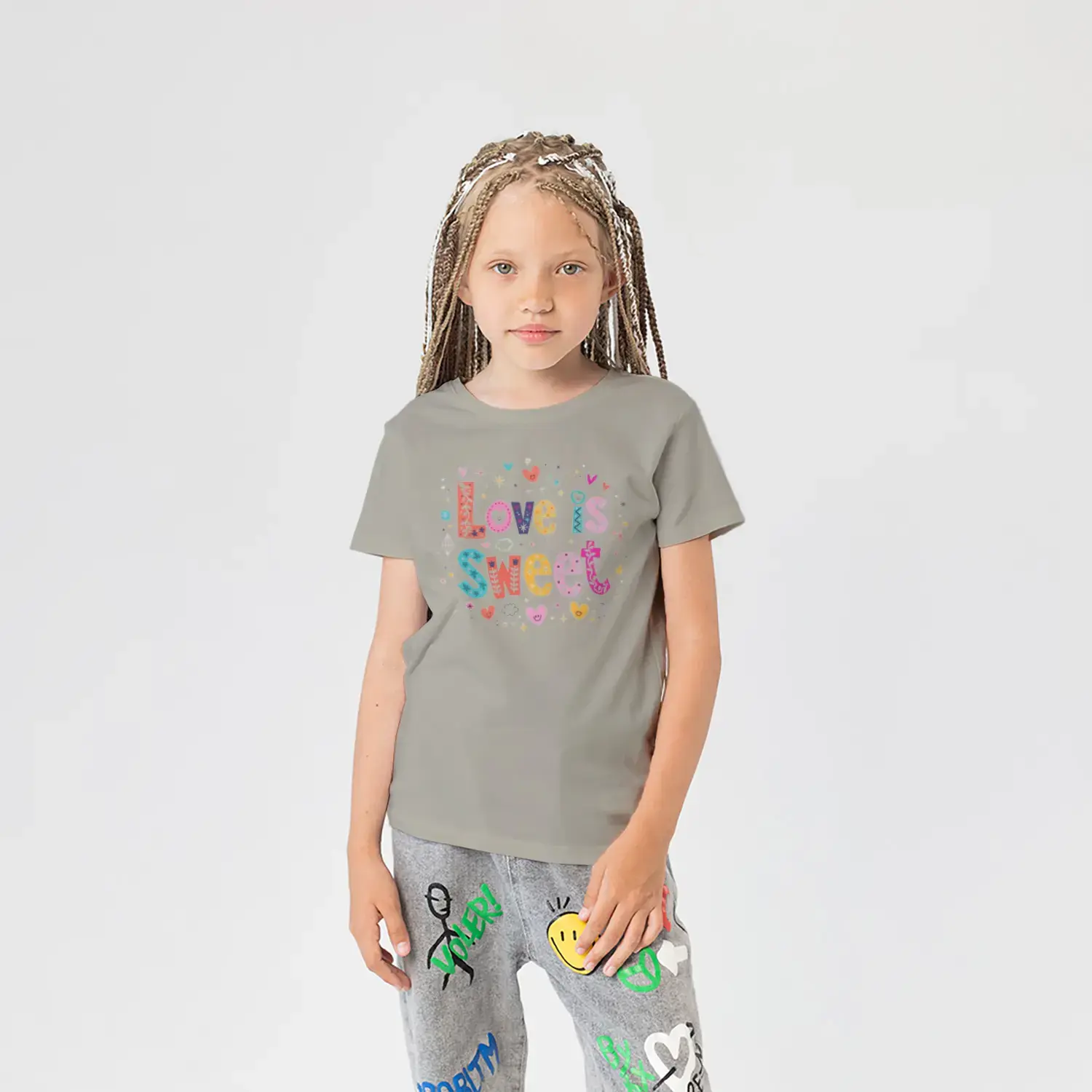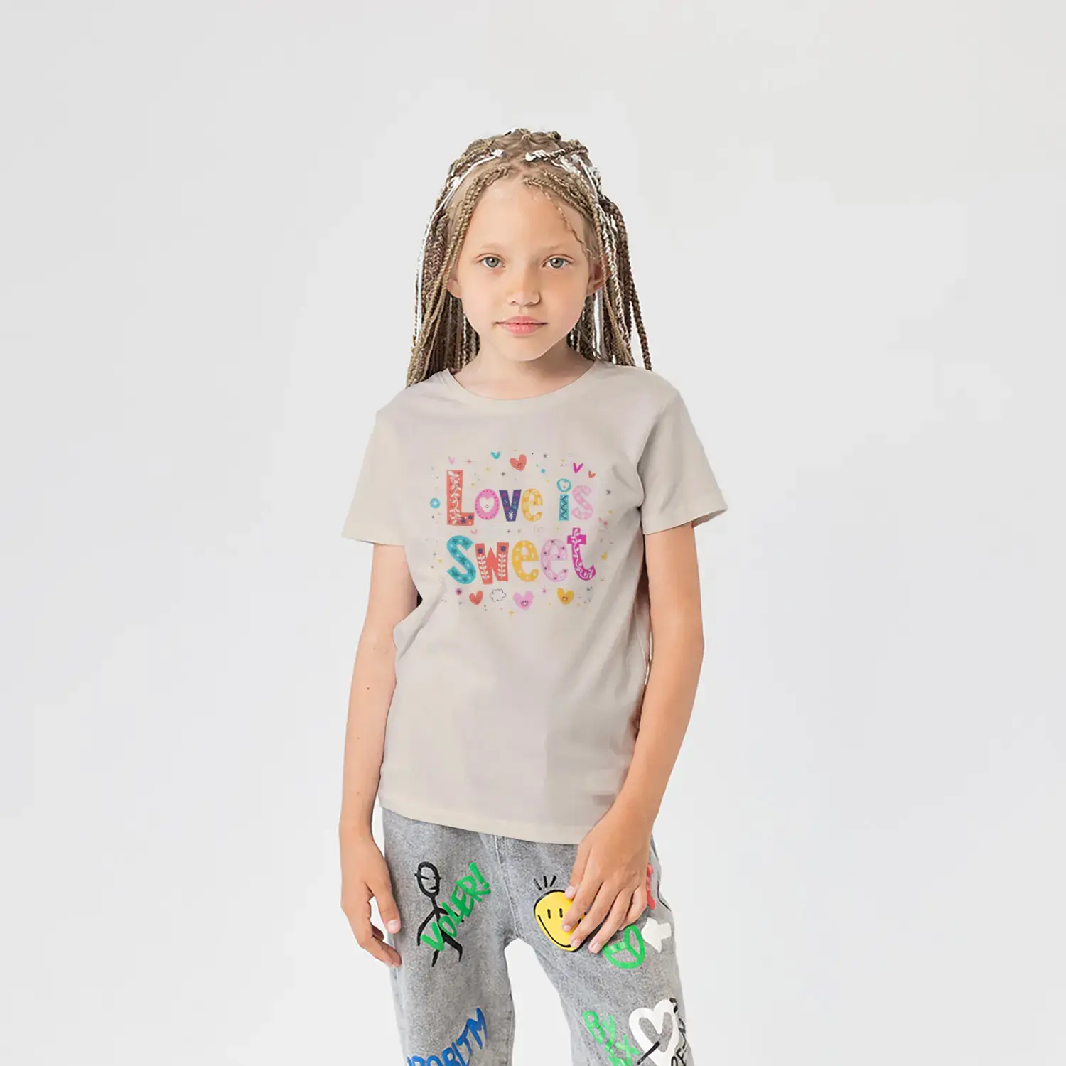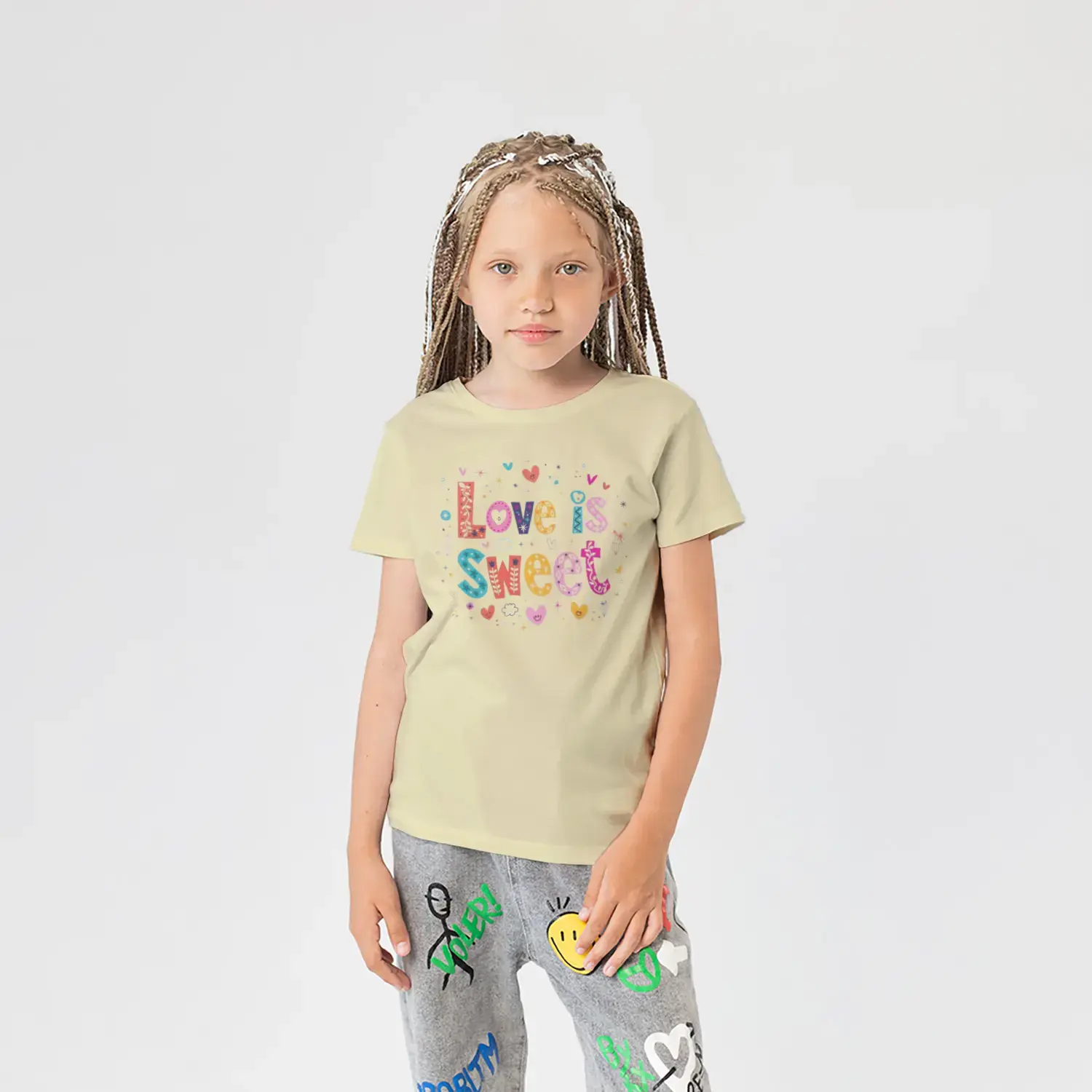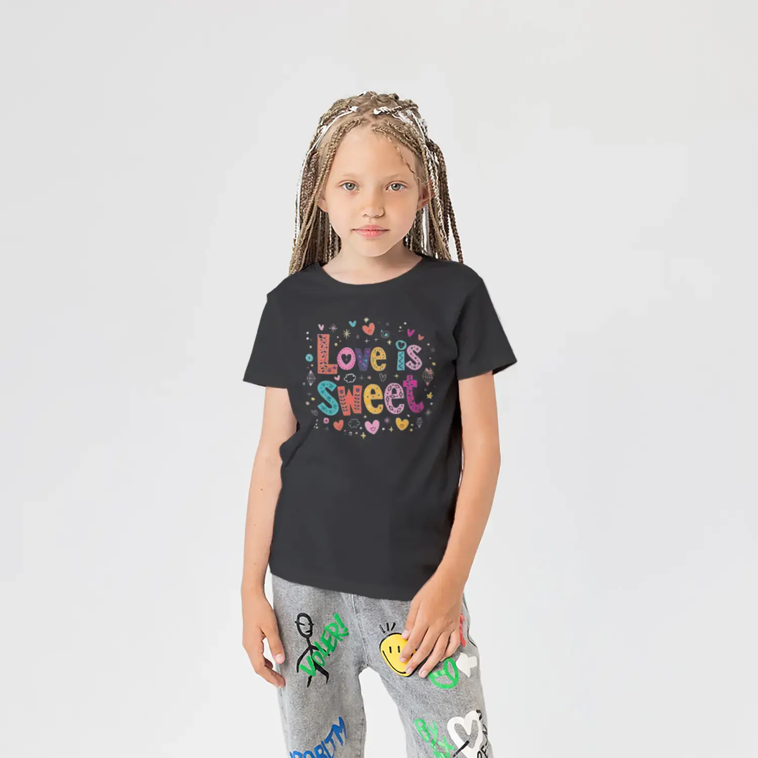 Love Is Sweet Renkli Yazı Baskılı Kız Çocuk Tişörtü