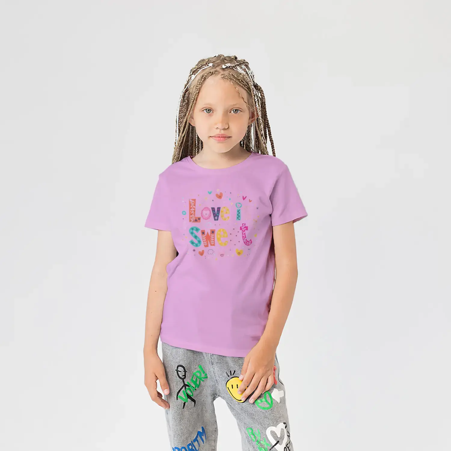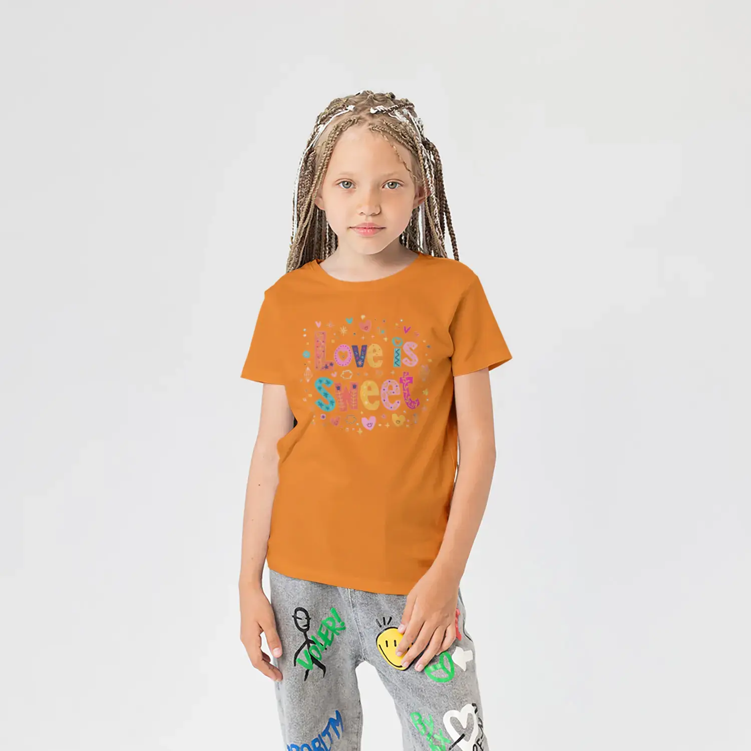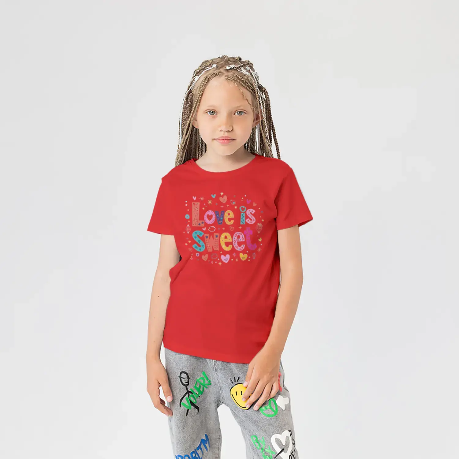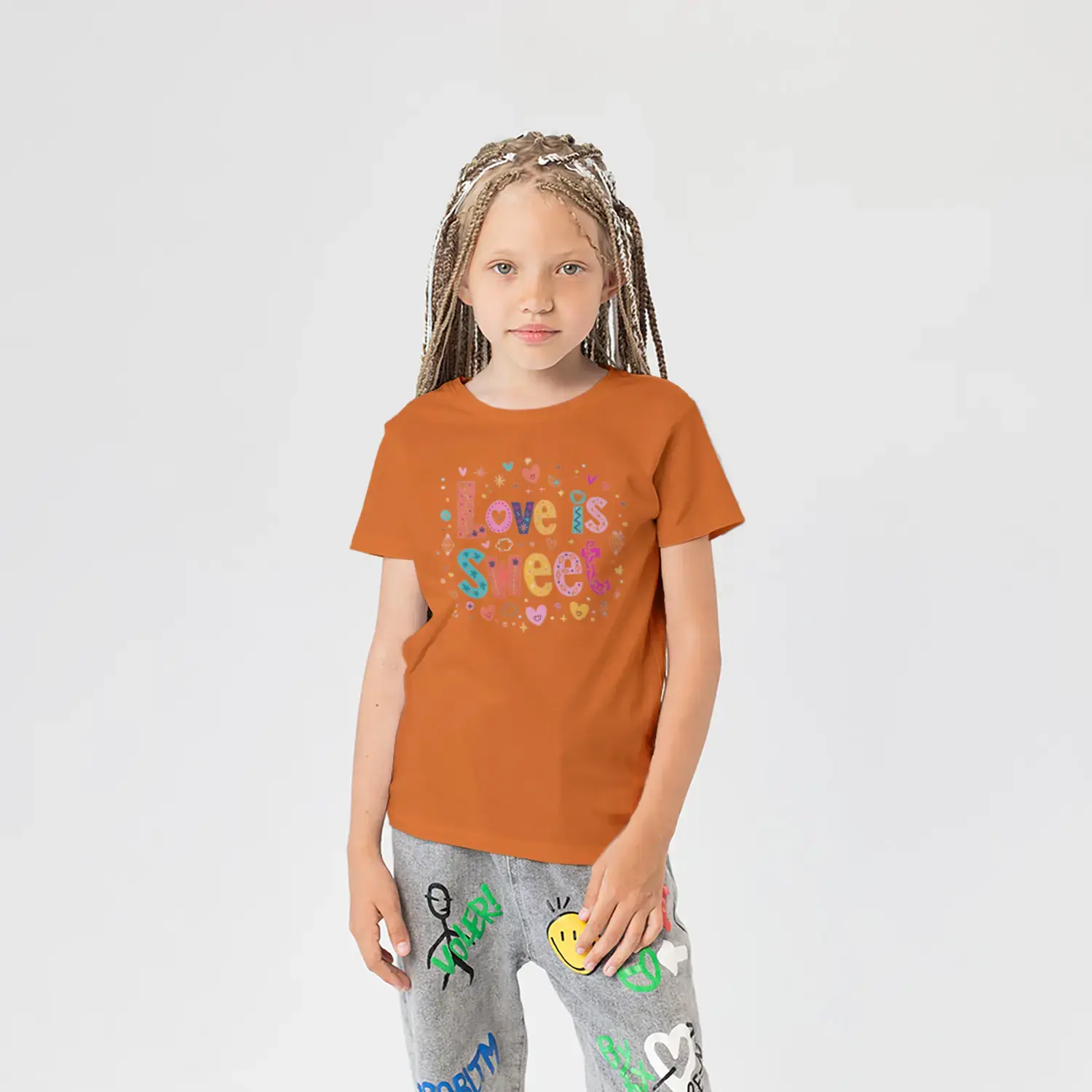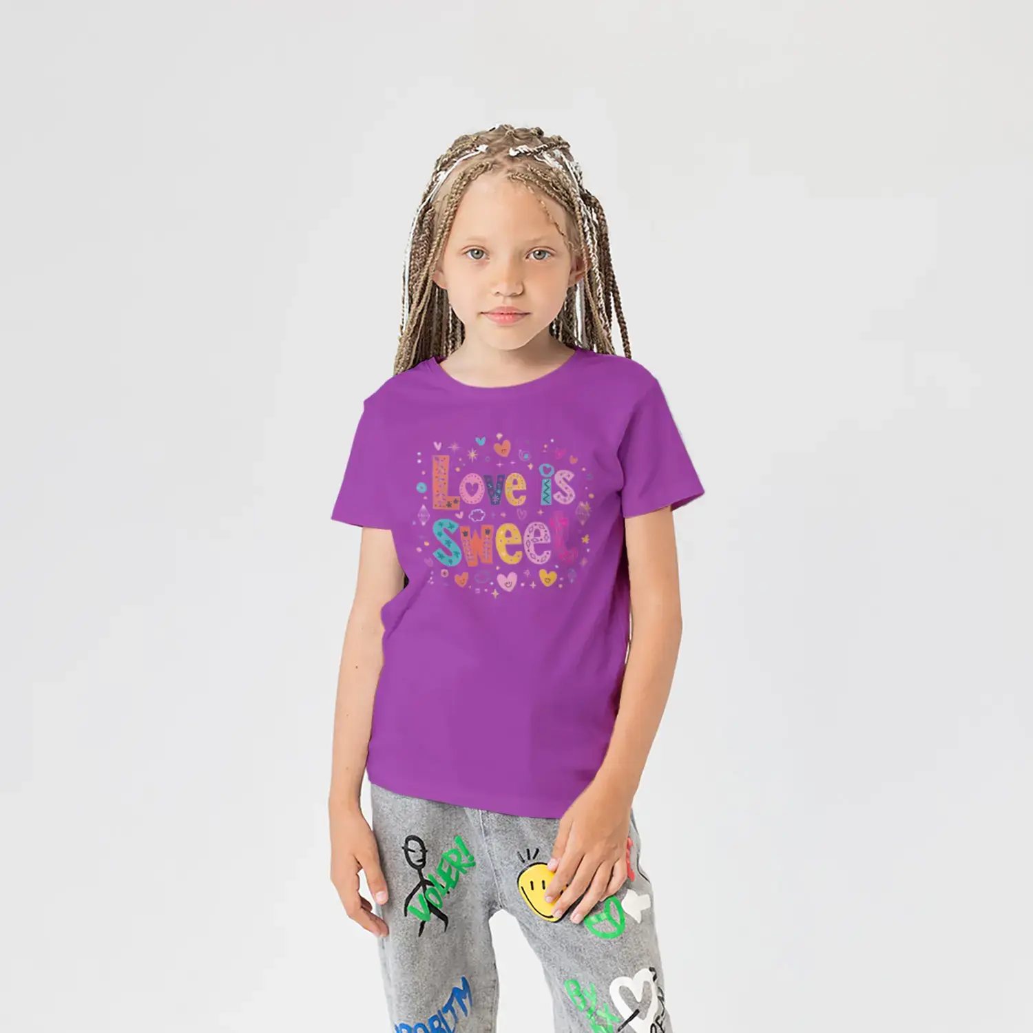 Love Is Sweet Renkli Yazı Baskılı Kız Çocuk Tişörtü