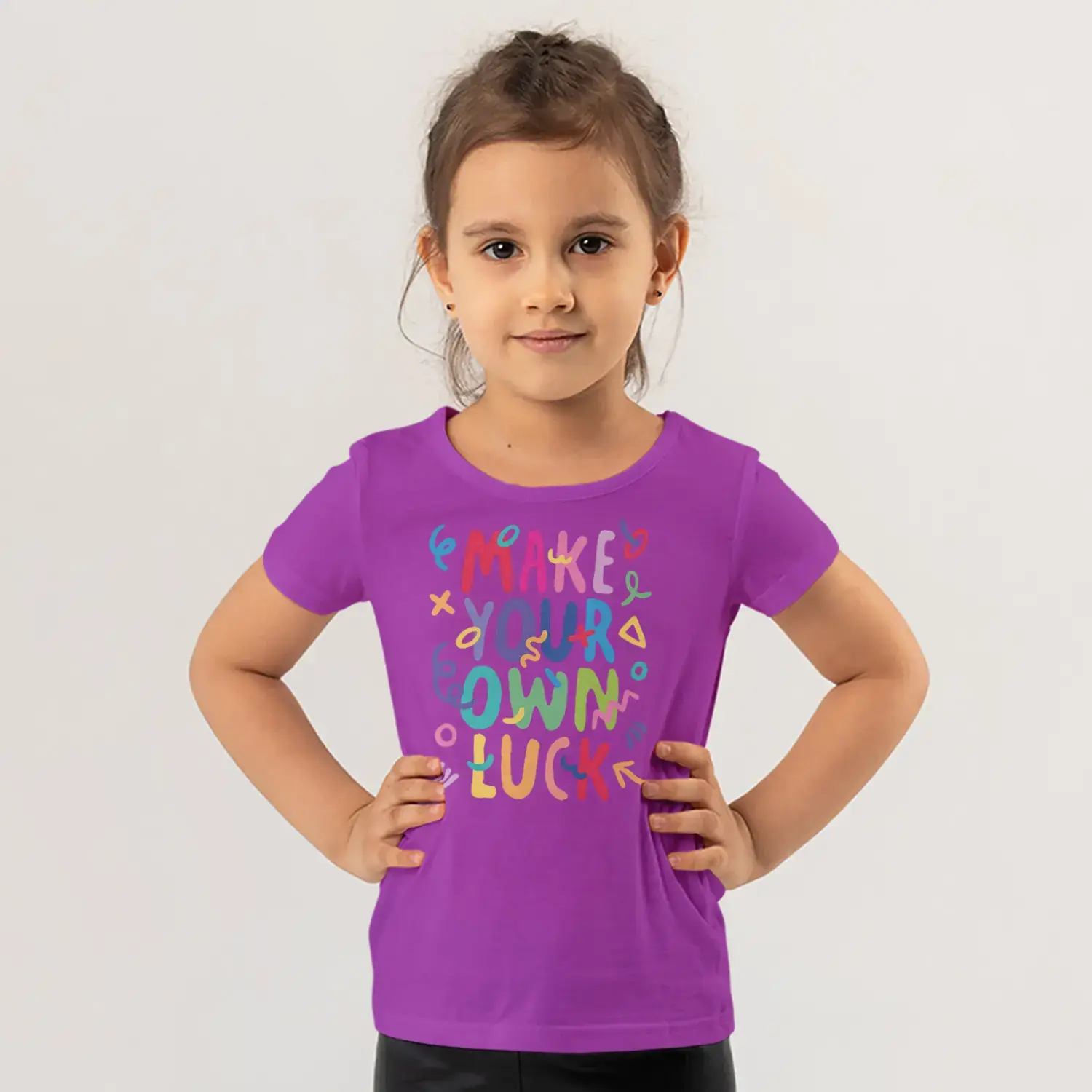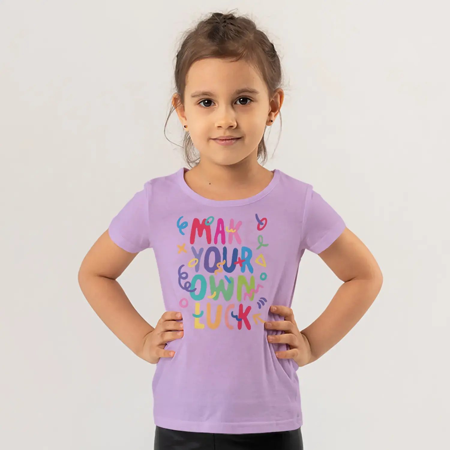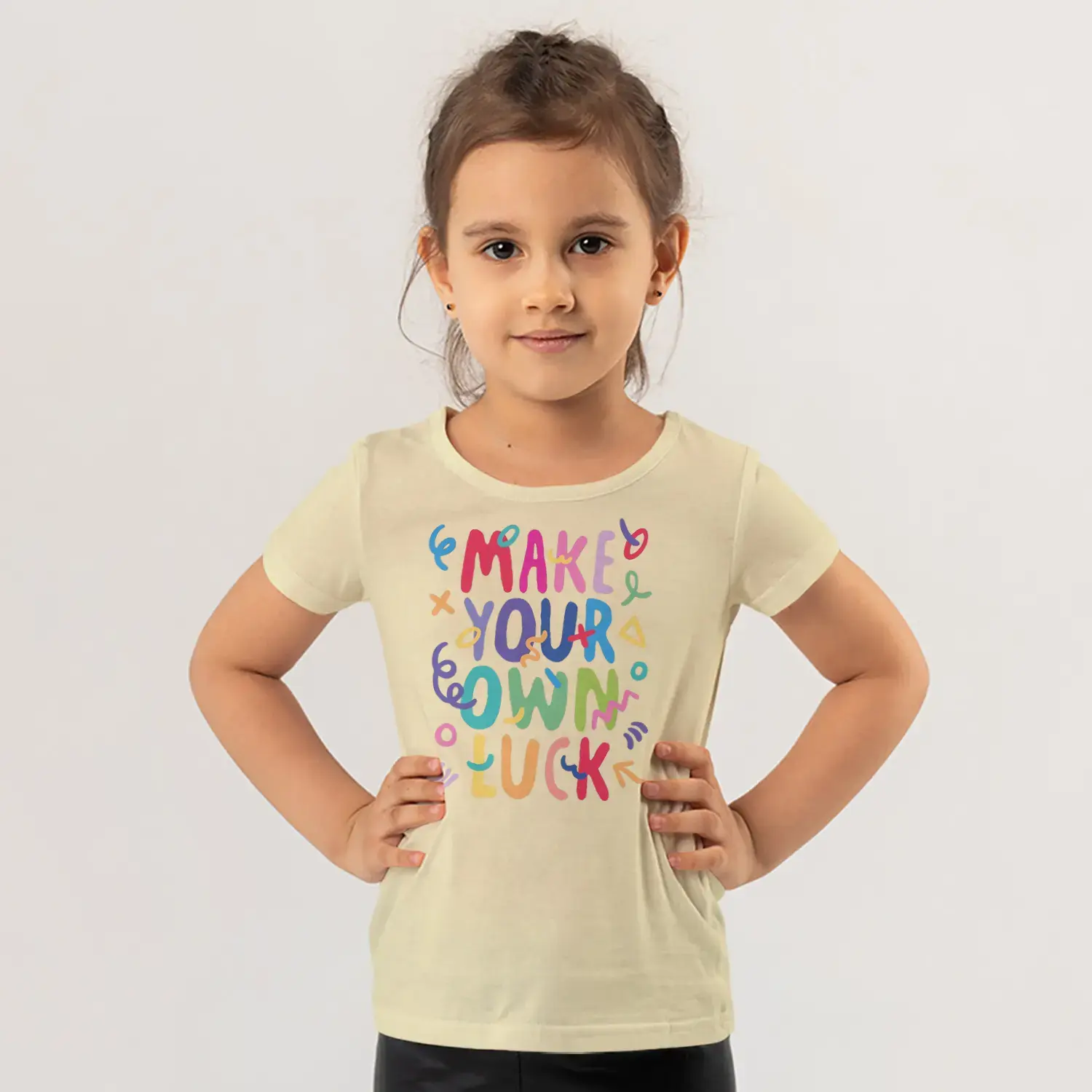 Make Your Own Luck Renkli Motivasyon Yazı Baskılı Kız Çocuk Tişörtü
