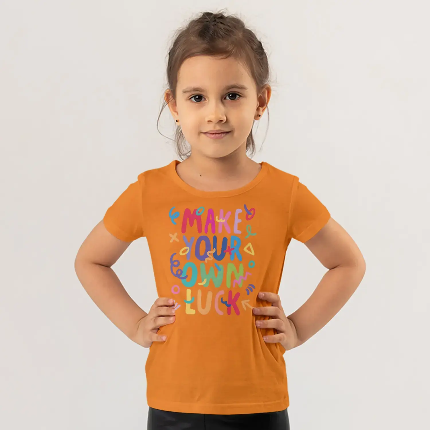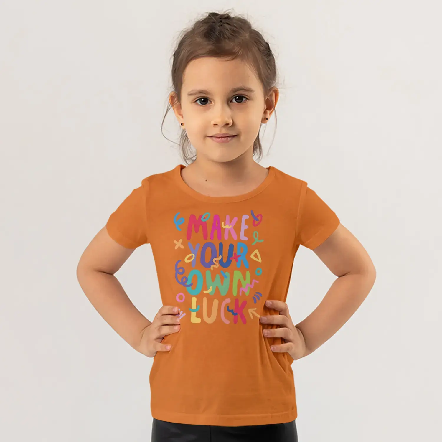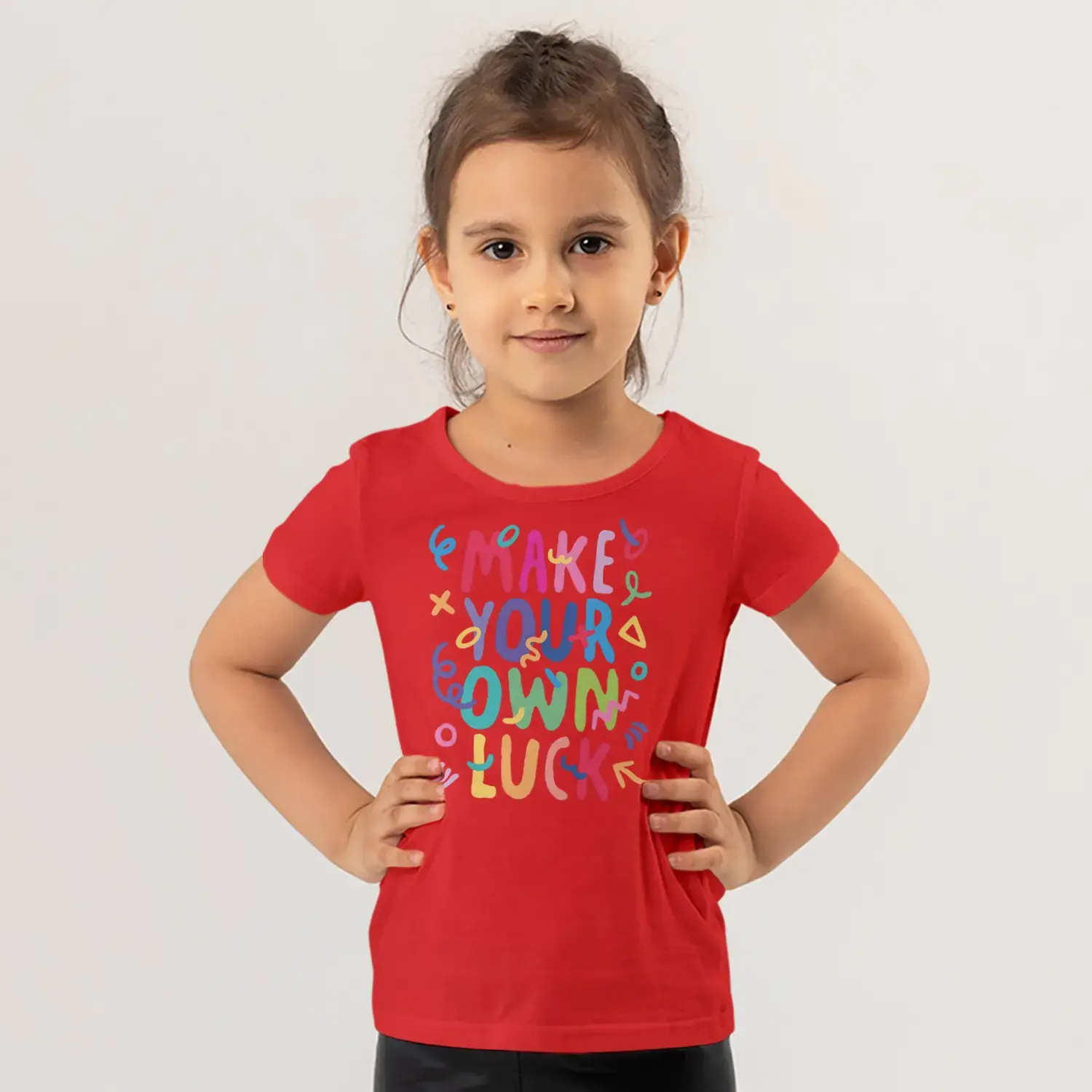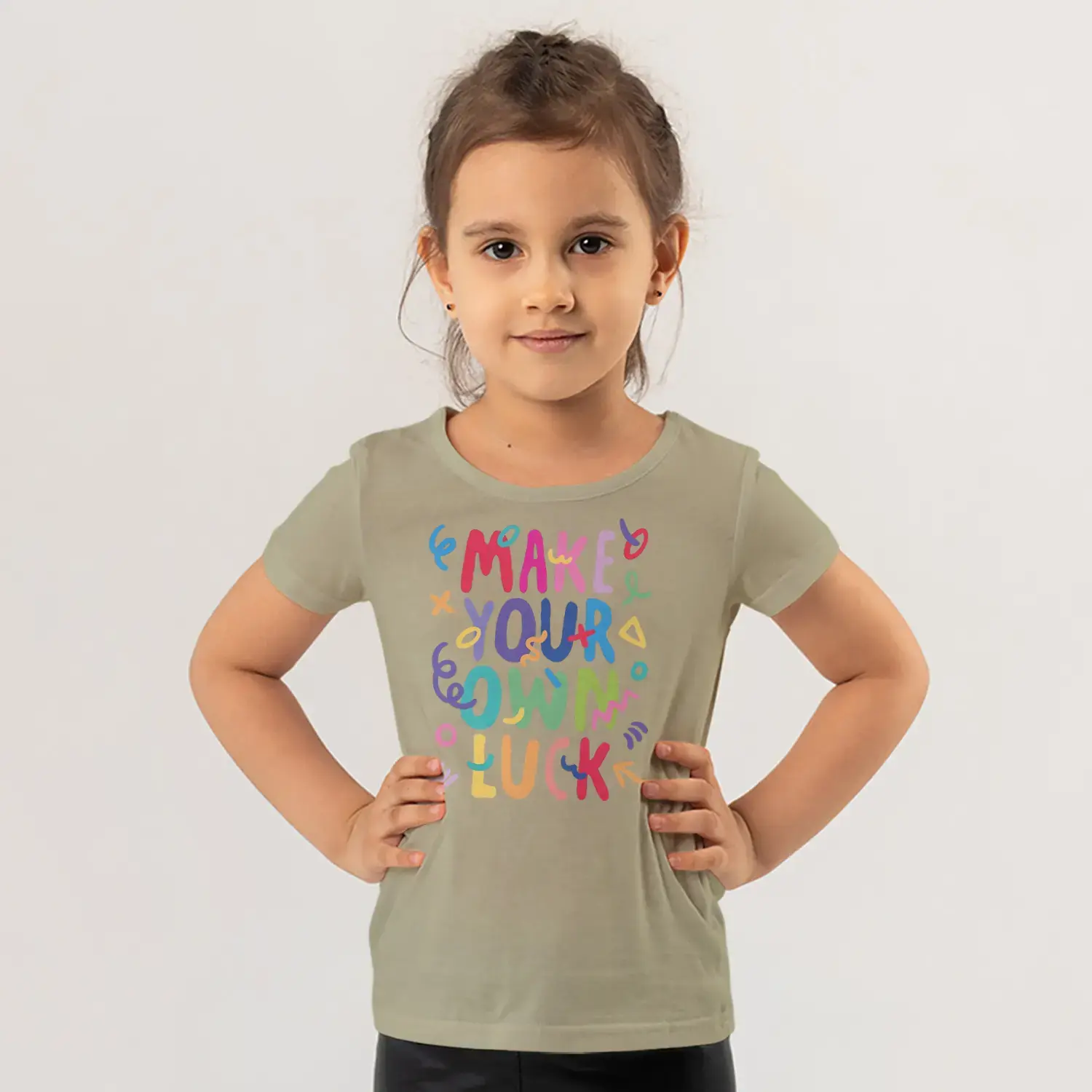 Make Your Own Luck Renkli Motivasyon Yazı Baskılı Kız Çocuk Tişörtü