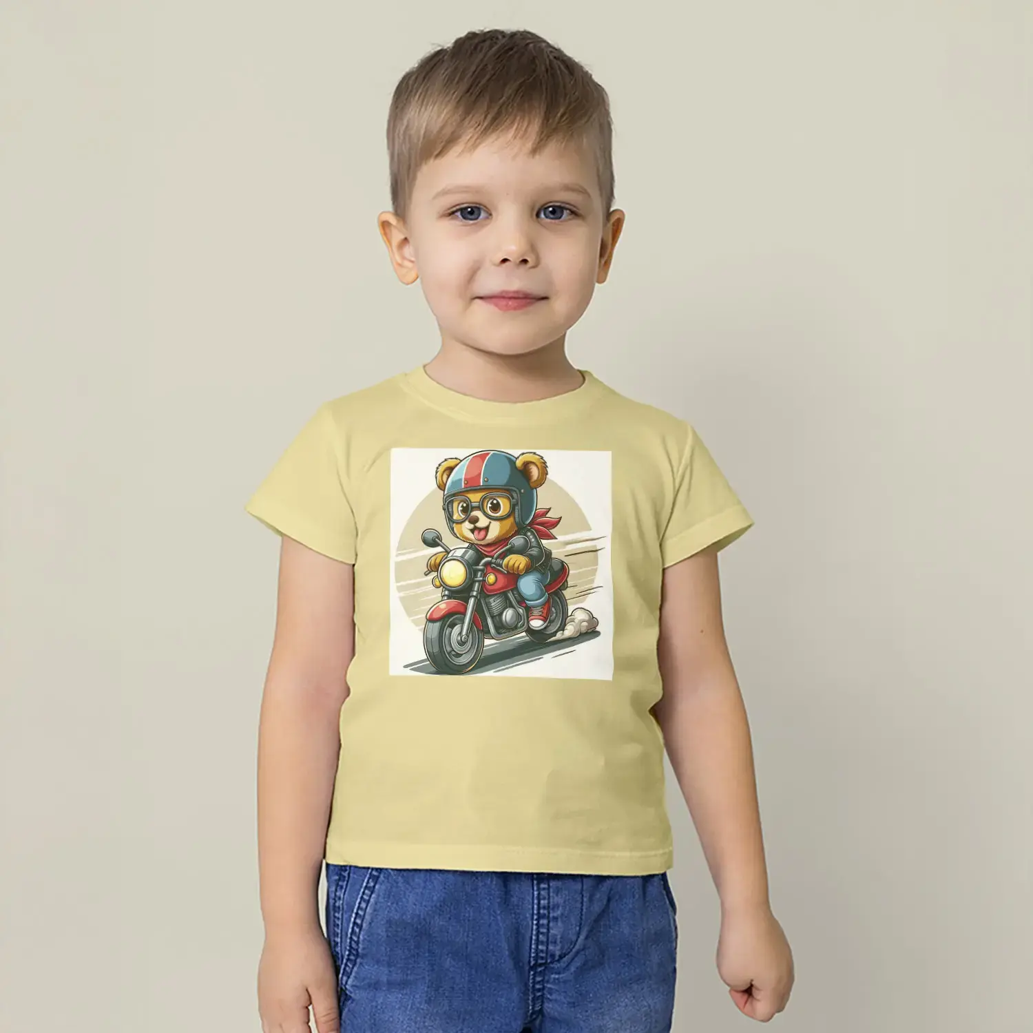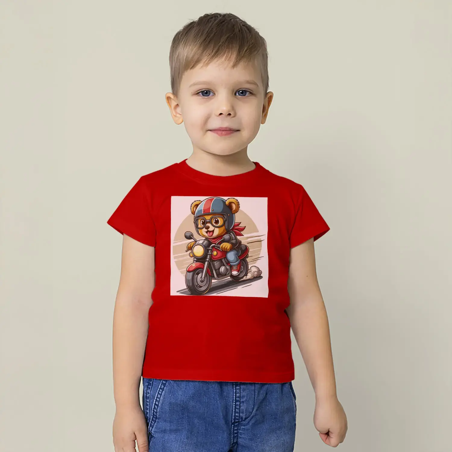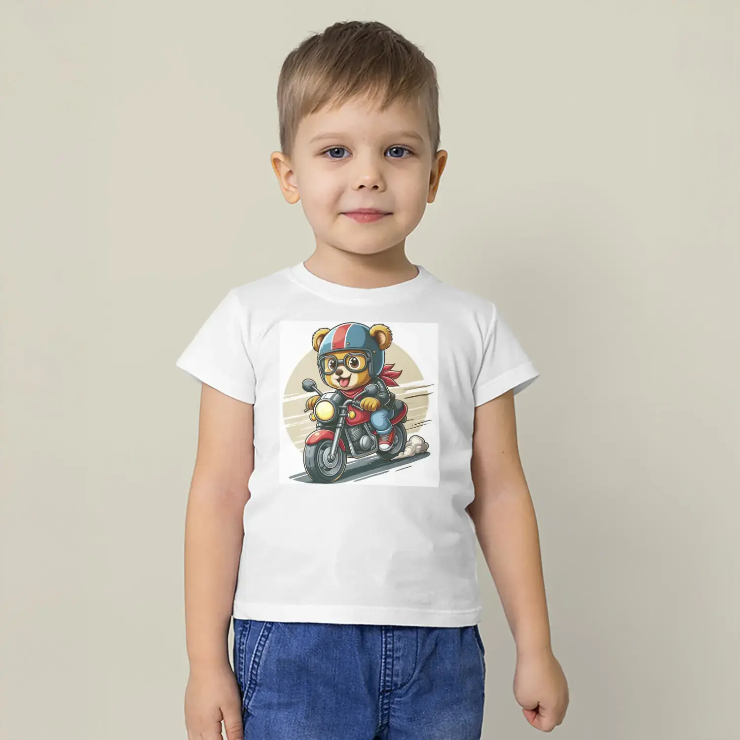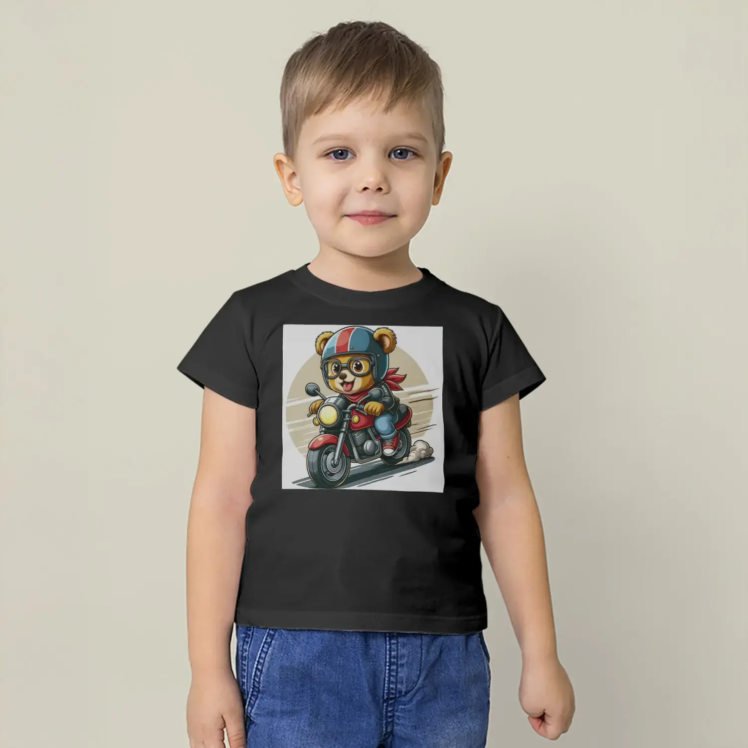 Motorcu Ayıcık Baskılı Erkek Çocuk Tişört