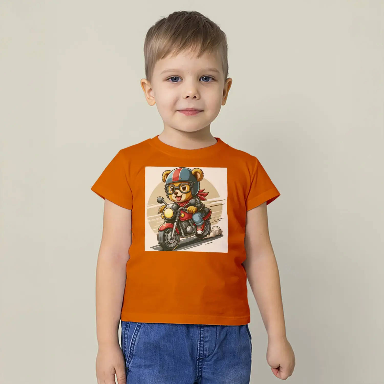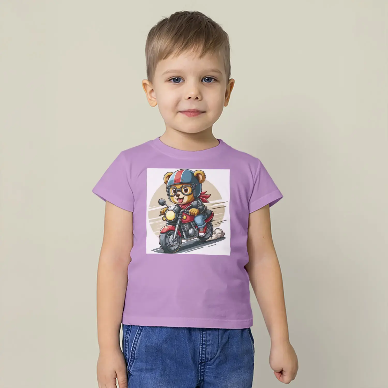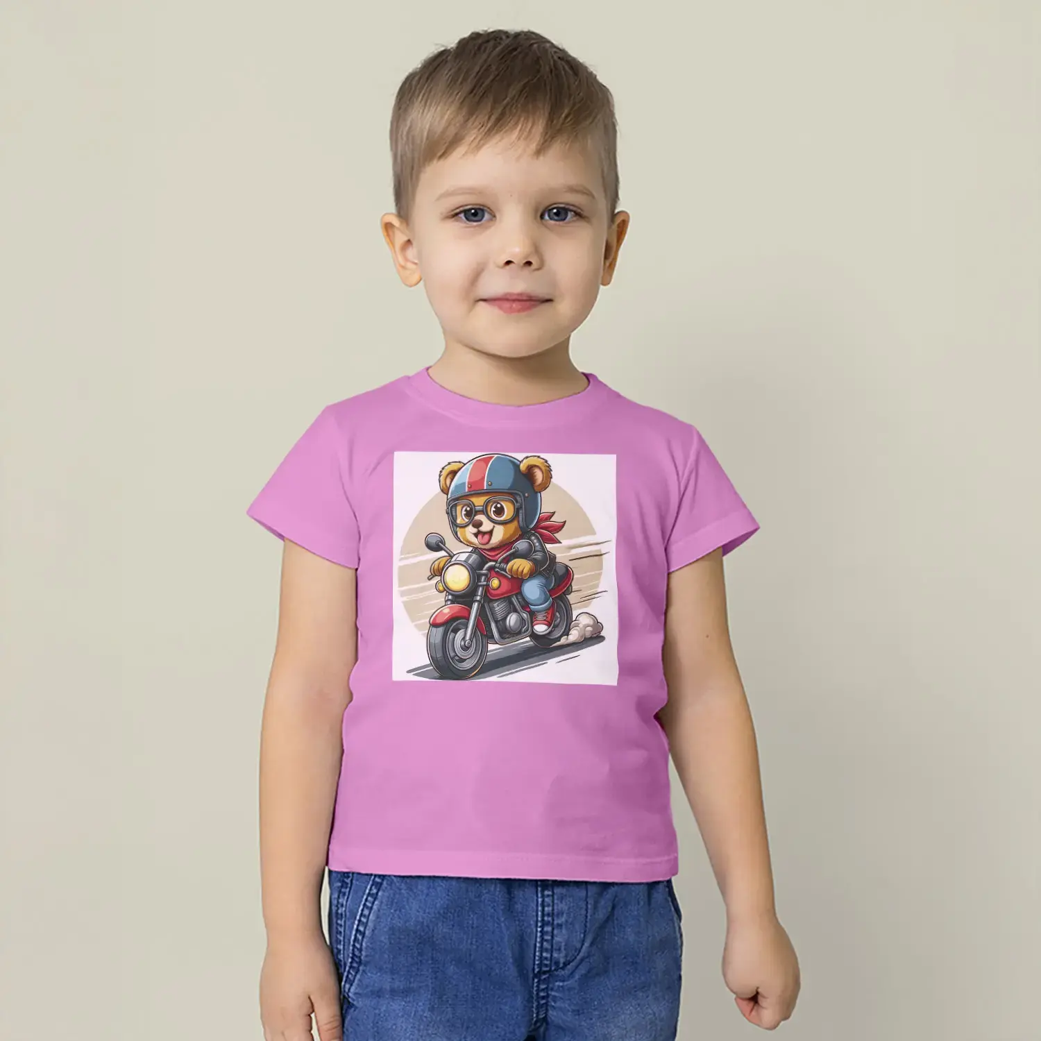 Motorcu Ayıcık Baskılı Erkek Çocuk Tişört