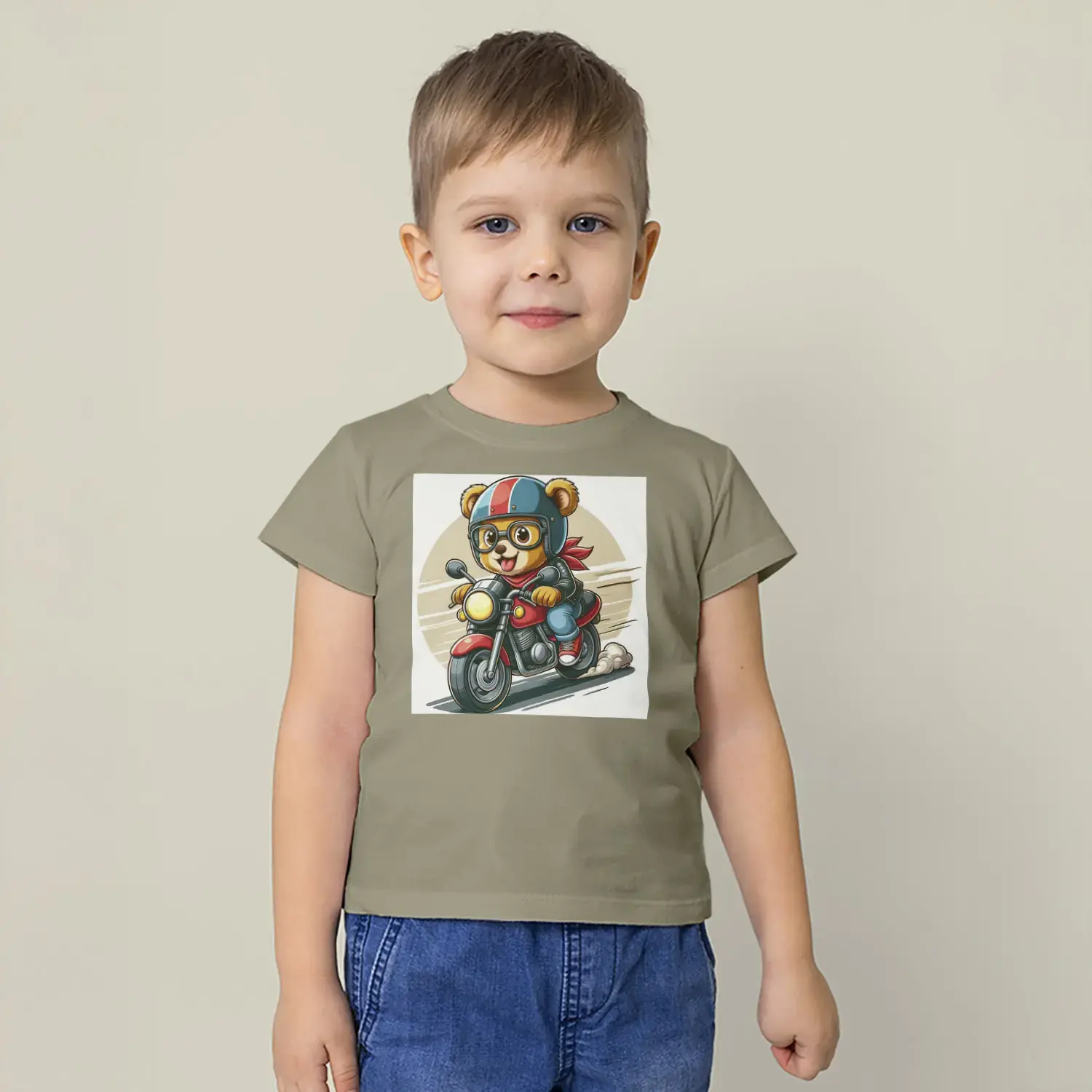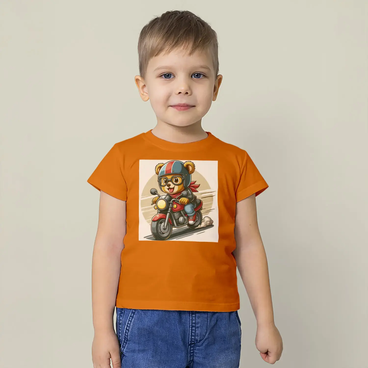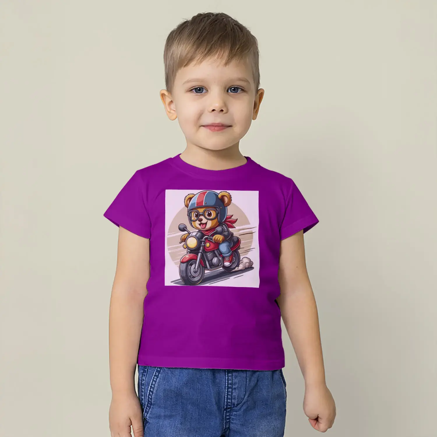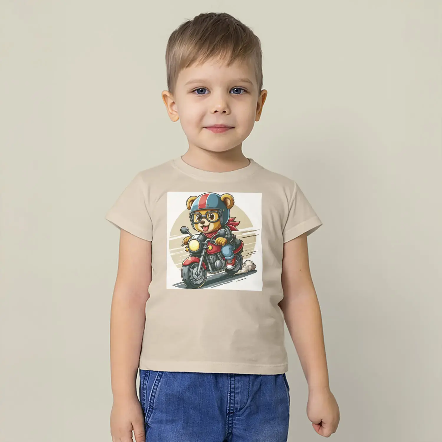 Motorcu Ayıcık Baskılı Erkek Çocuk Tişört