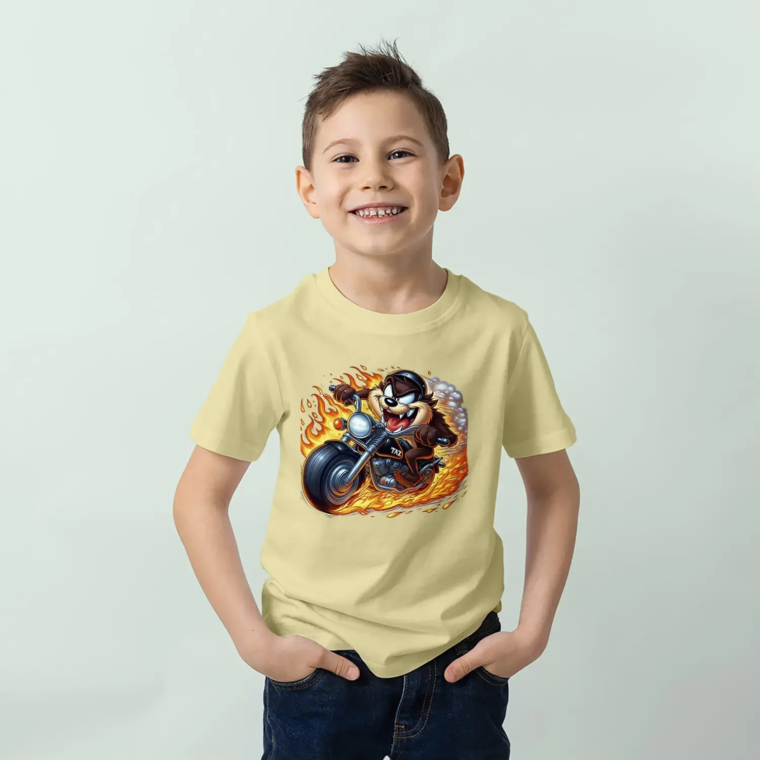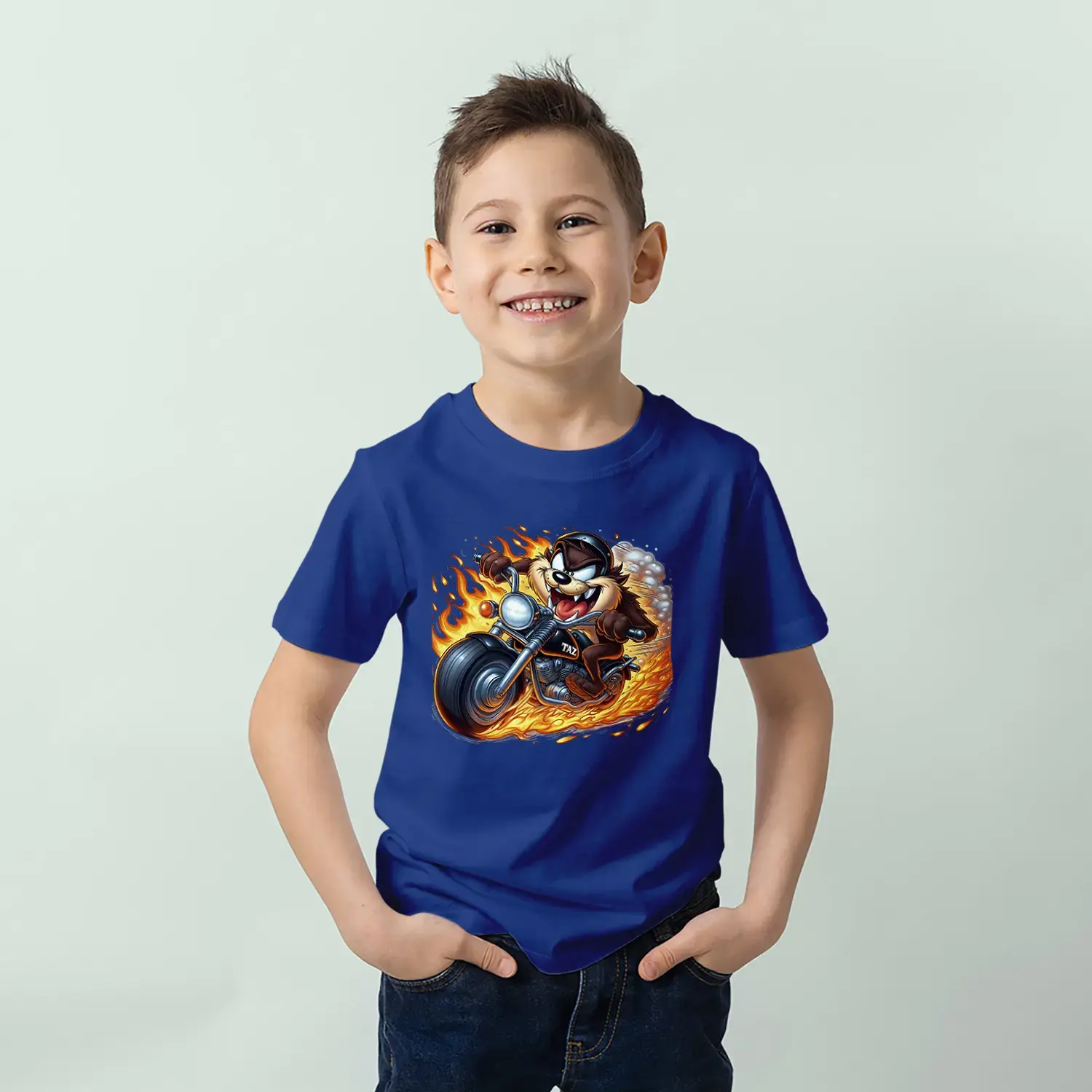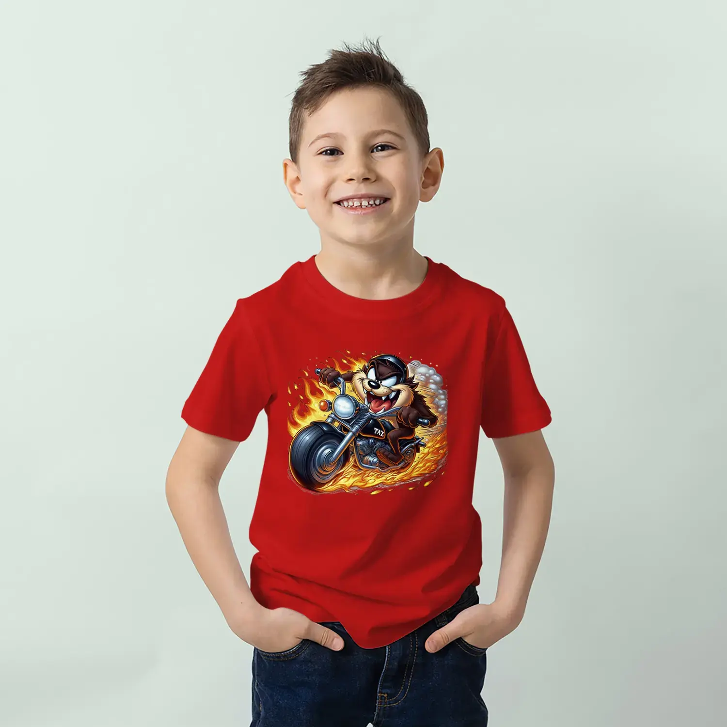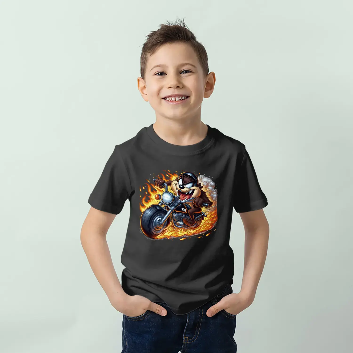 Motorcu Çılgın Karakter Baskılı Erkek Çocuk Tişört