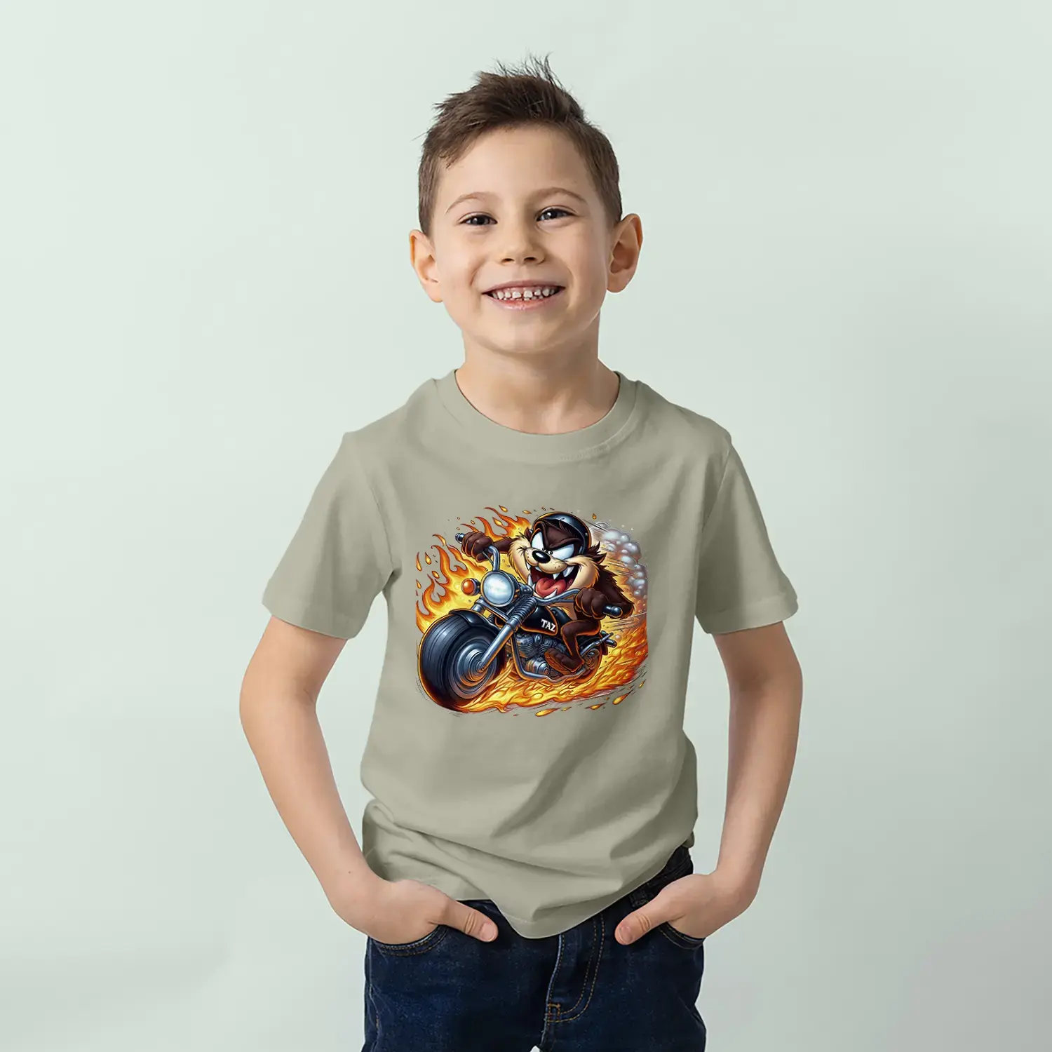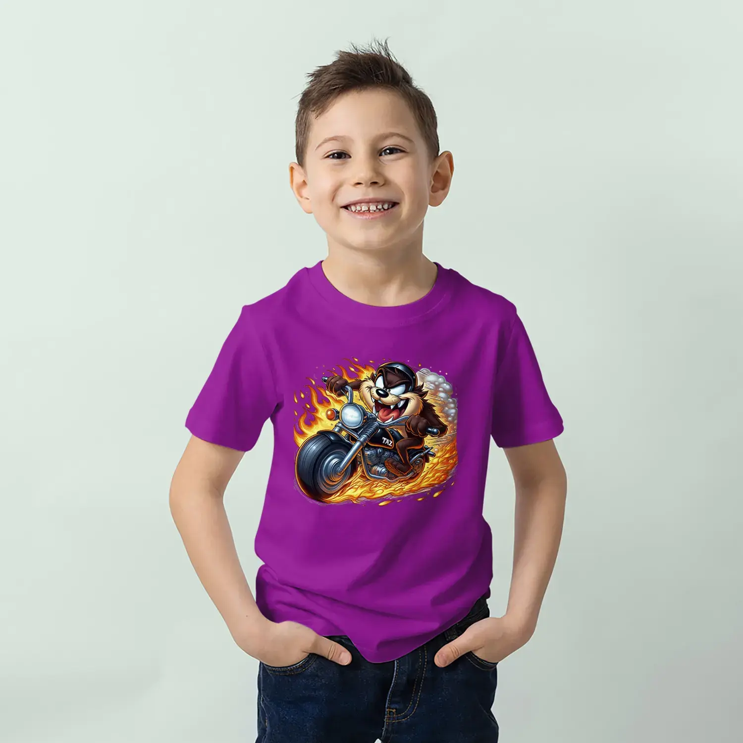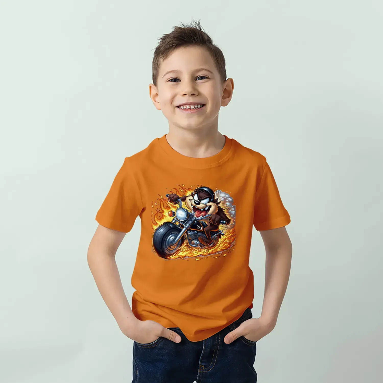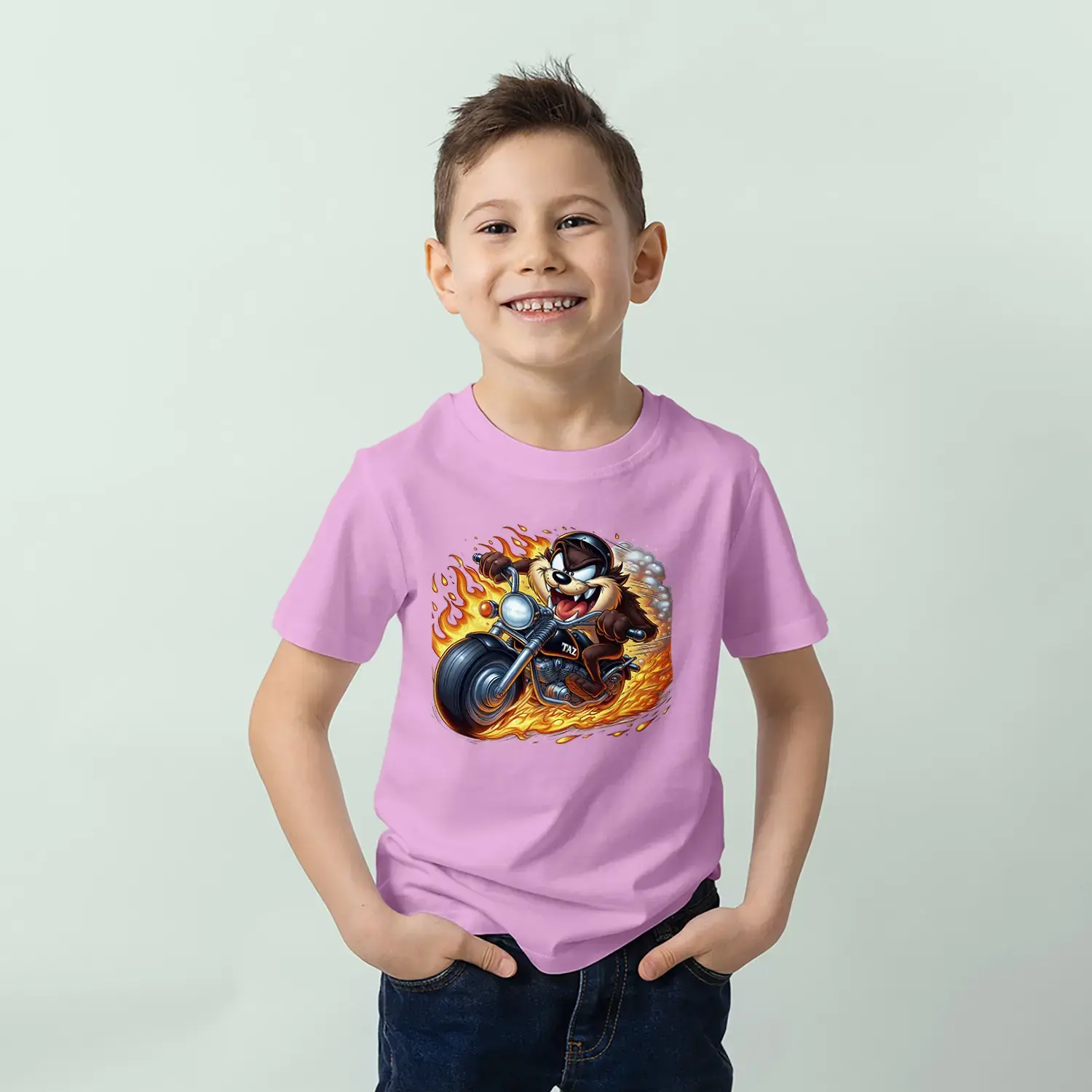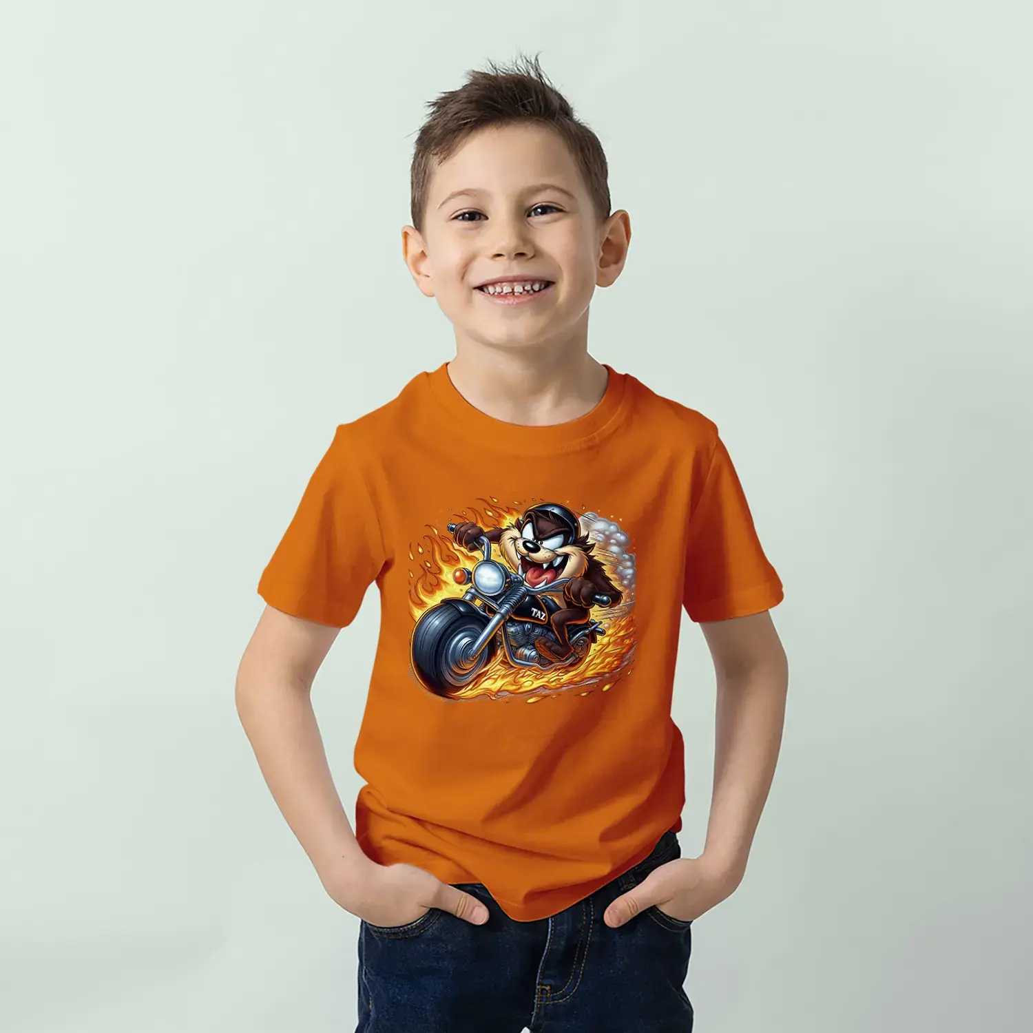 Motorcu Çılgın Karakter Baskılı Erkek Çocuk Tişört