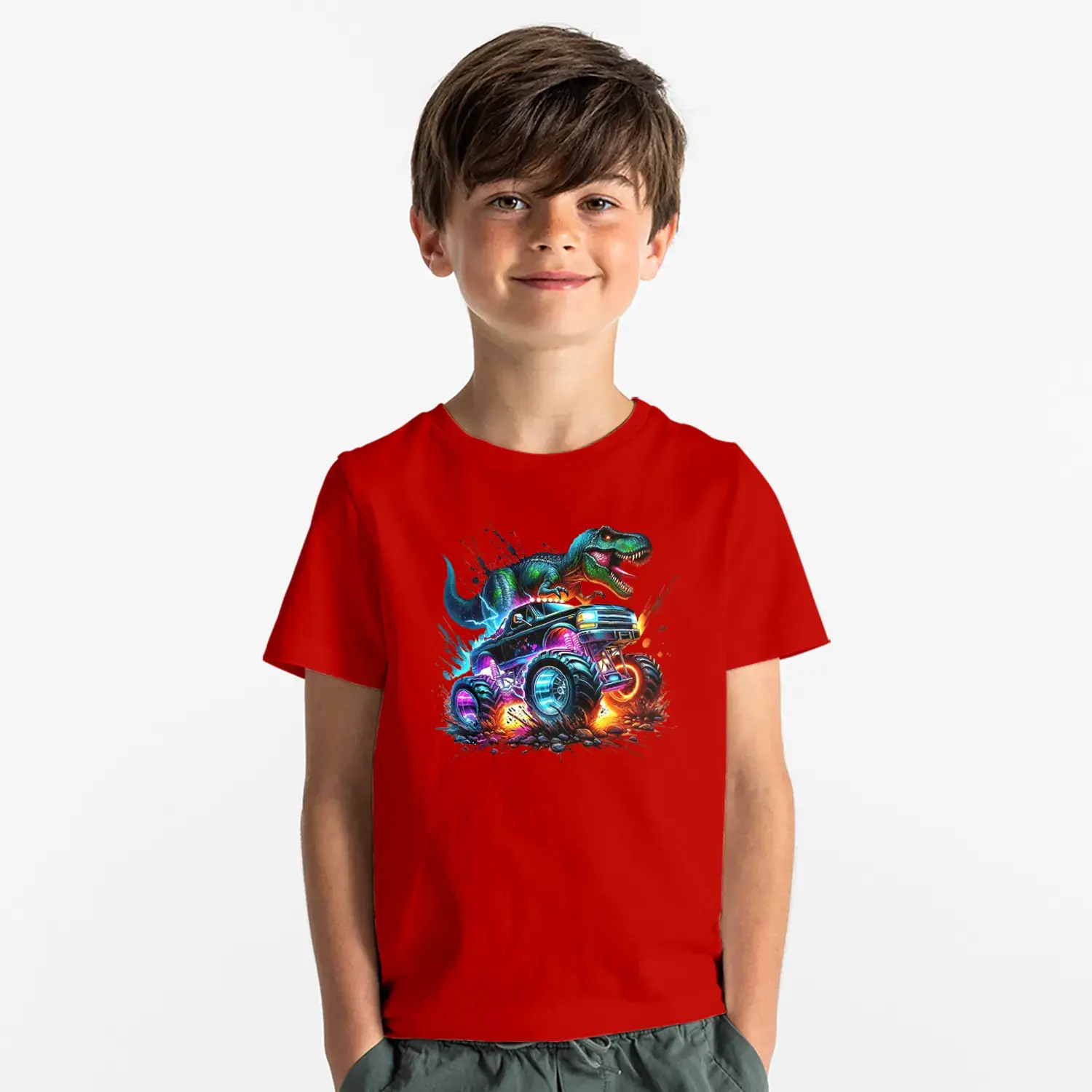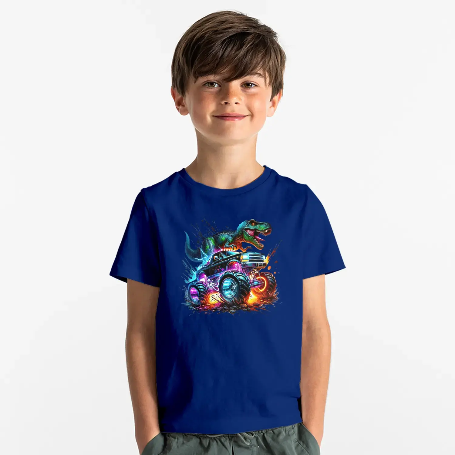 Neon Dinozor Arabalı Baskılı Erkek Çocuk Tişört