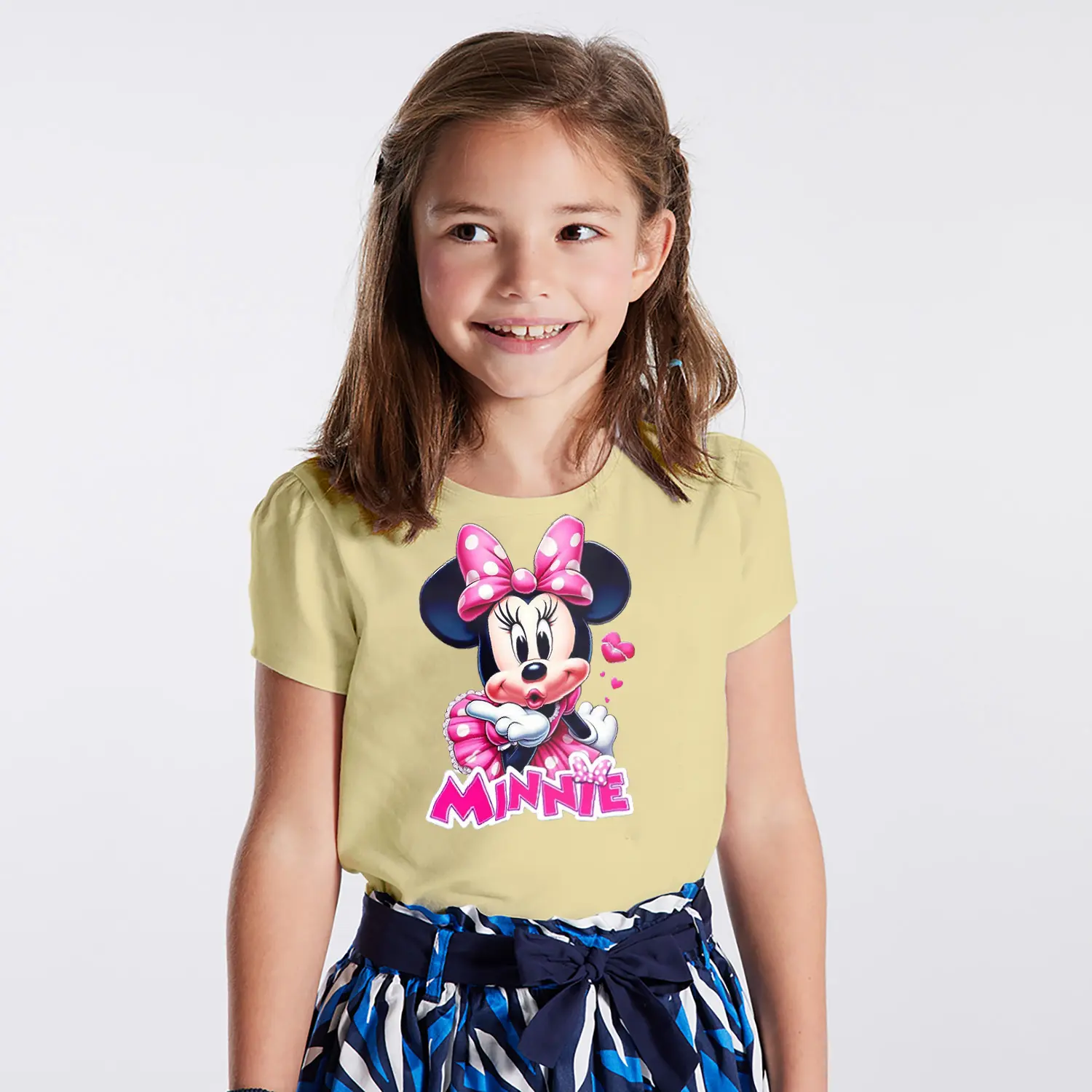 “Pembe Elbiseli Kalpli Yuvarlak Kulaklı Fare Karikatür Minnie Yazılı Baskılı Kız Çocuk Tişörtü” için yorum yapan ilk kişi siz olun