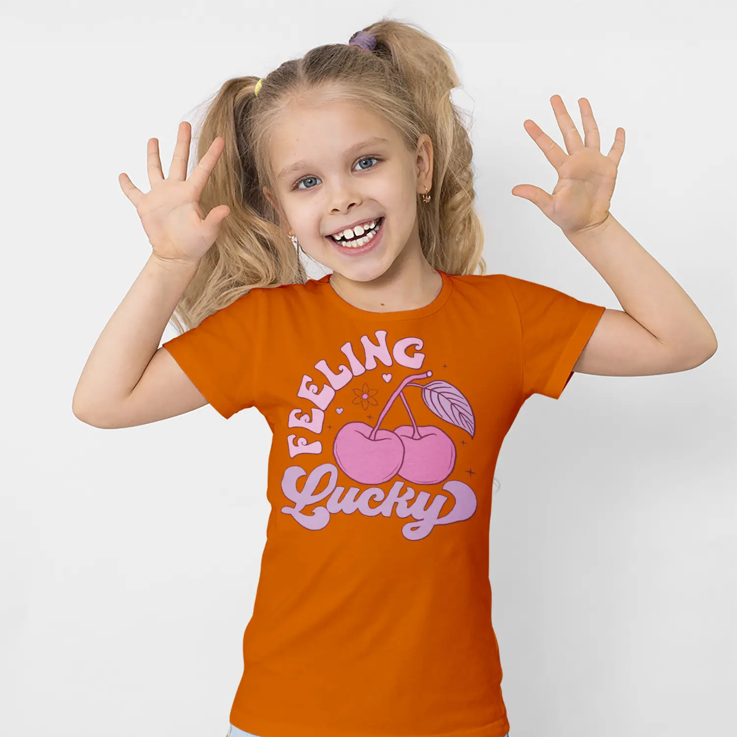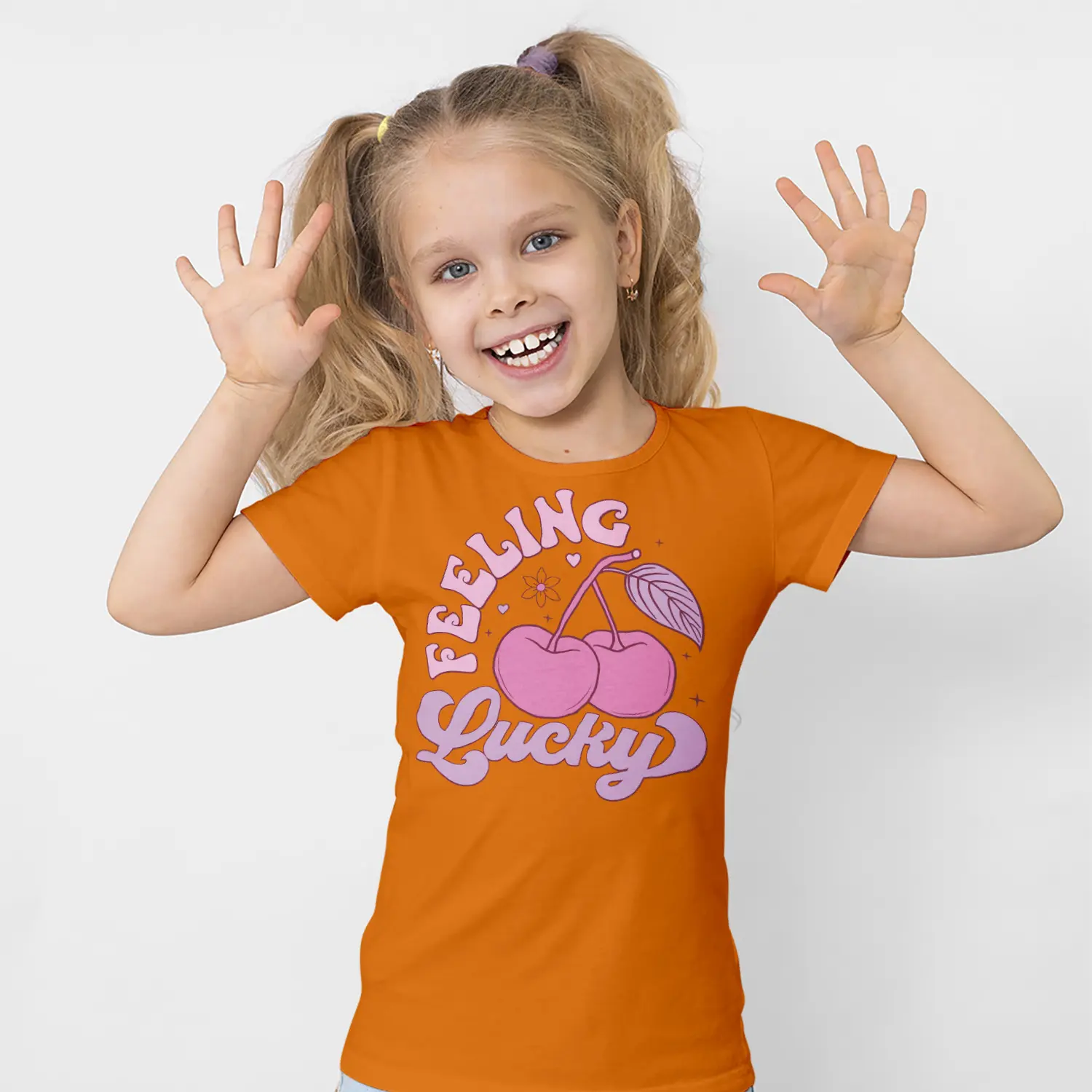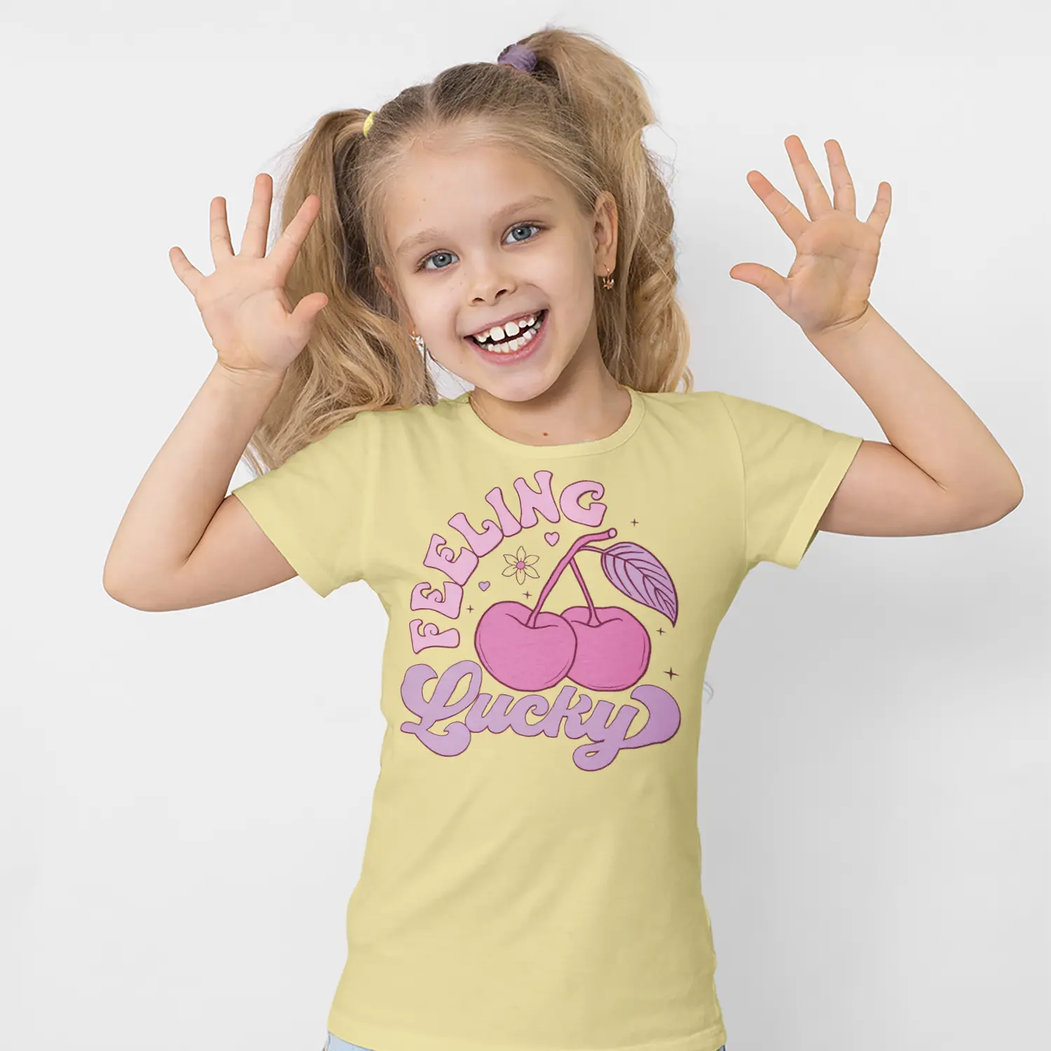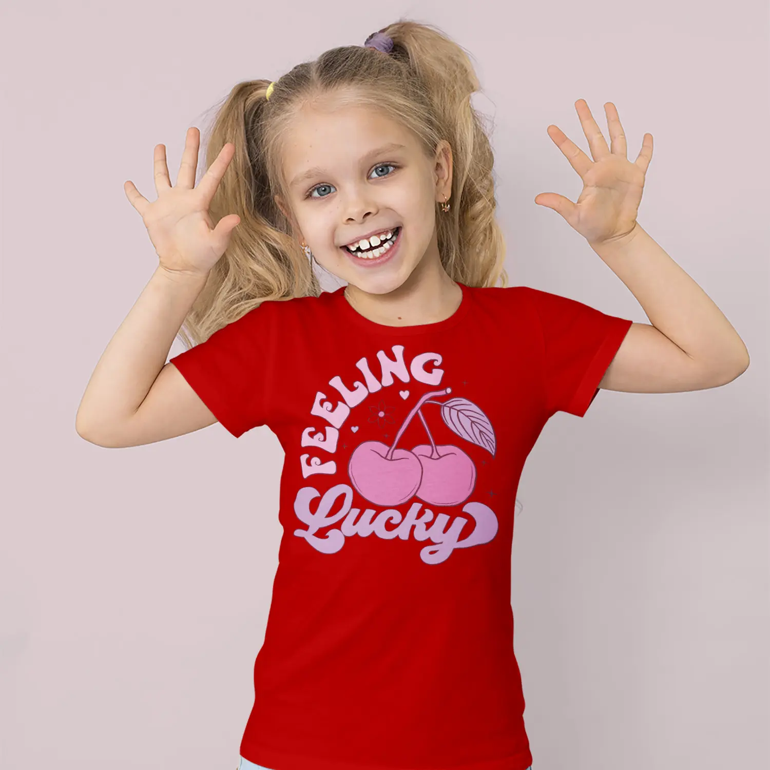“Pembe Kiraz ve Feeling Lucky Yazılı Baskılı Kız Çocuk Tişörtü” için yorum yapan ilk kişi siz olun