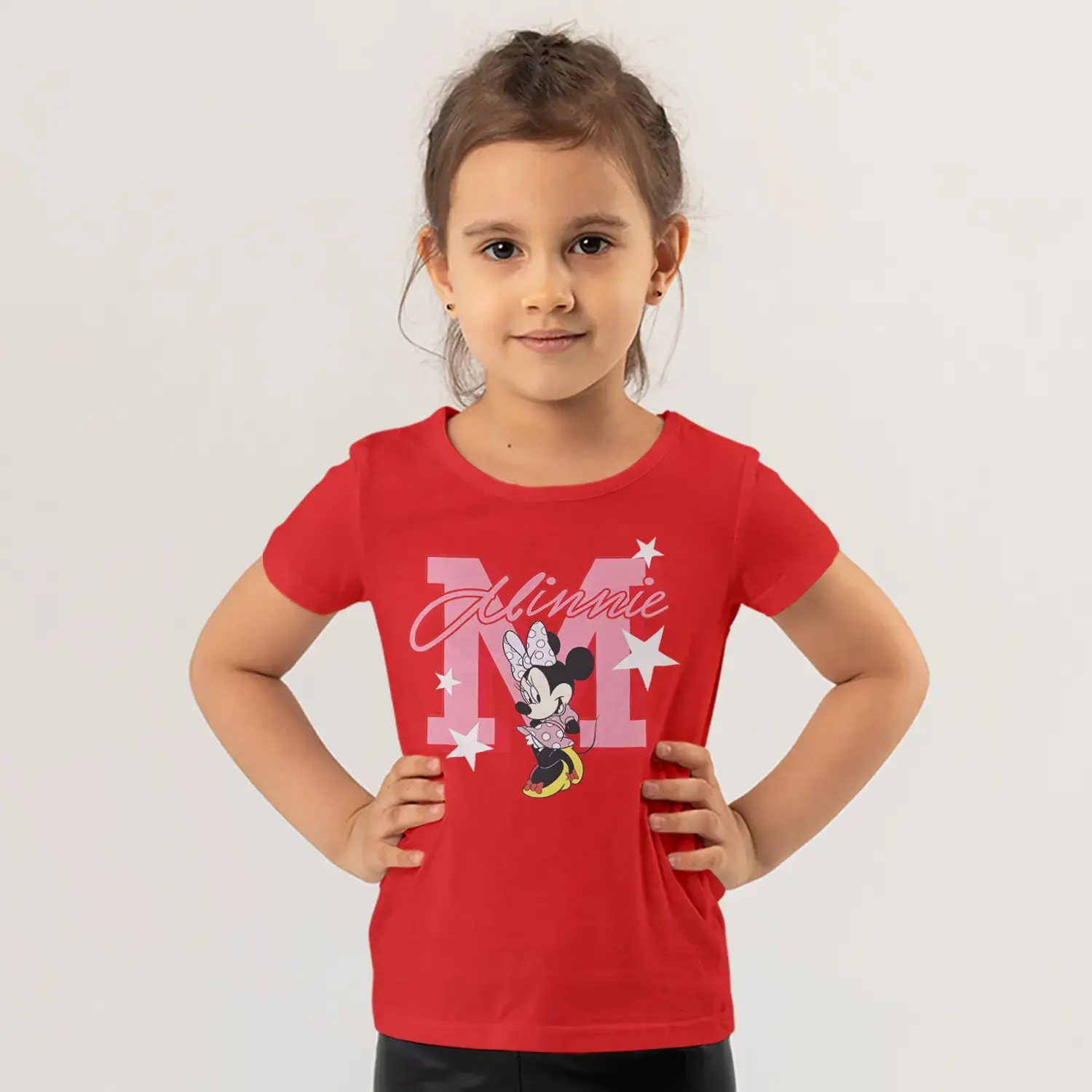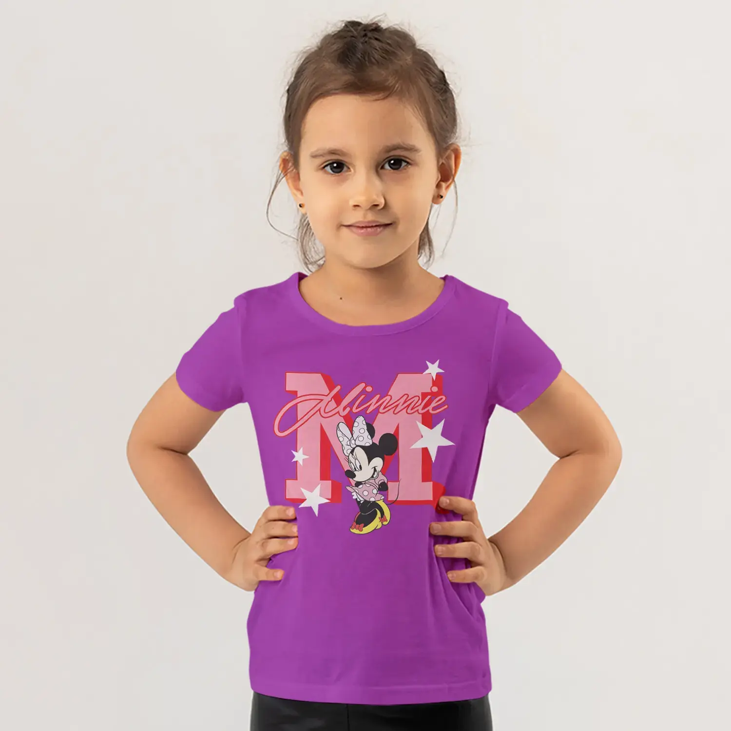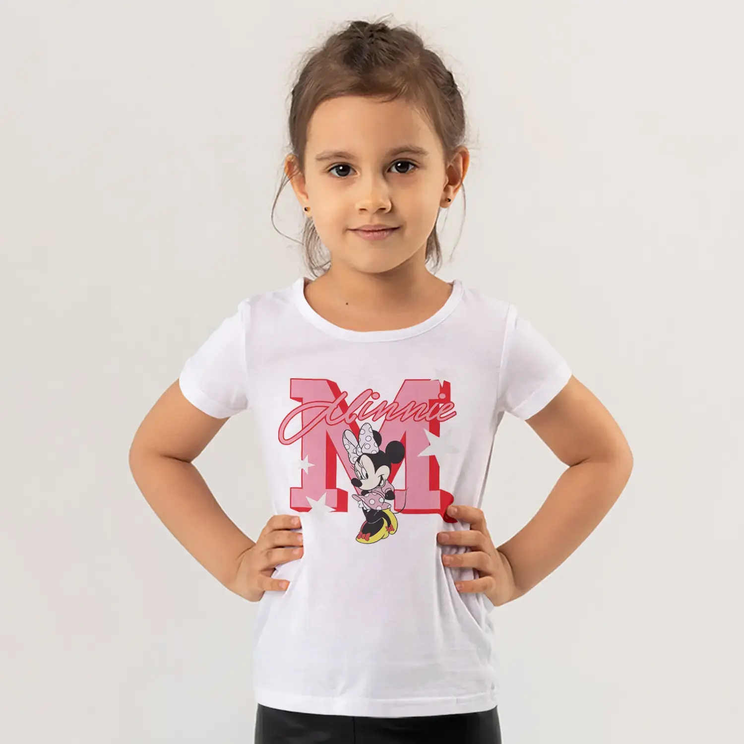 Pembe M Harfli Fiyonklu Şık Fare Kahraman Baskılı Kız Çocuk Tişörtü