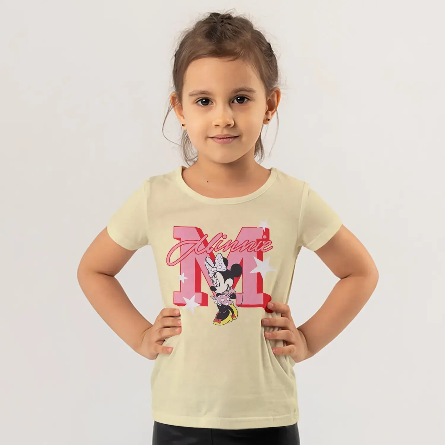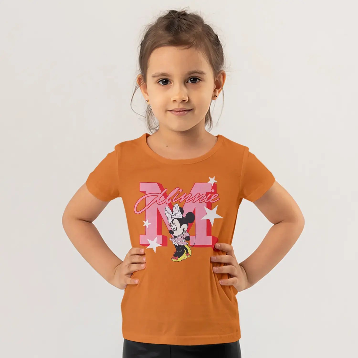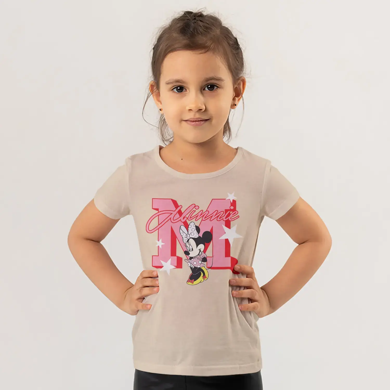 Pembe M Harfli Fiyonklu Şık Fare Kahraman Baskılı Kız Çocuk Tişörtü
