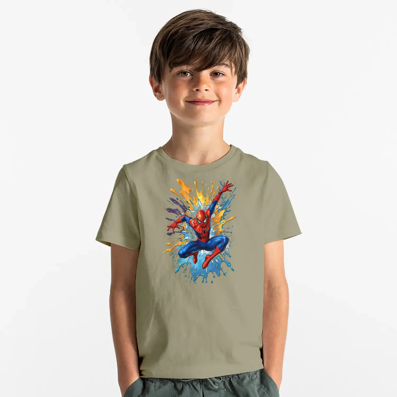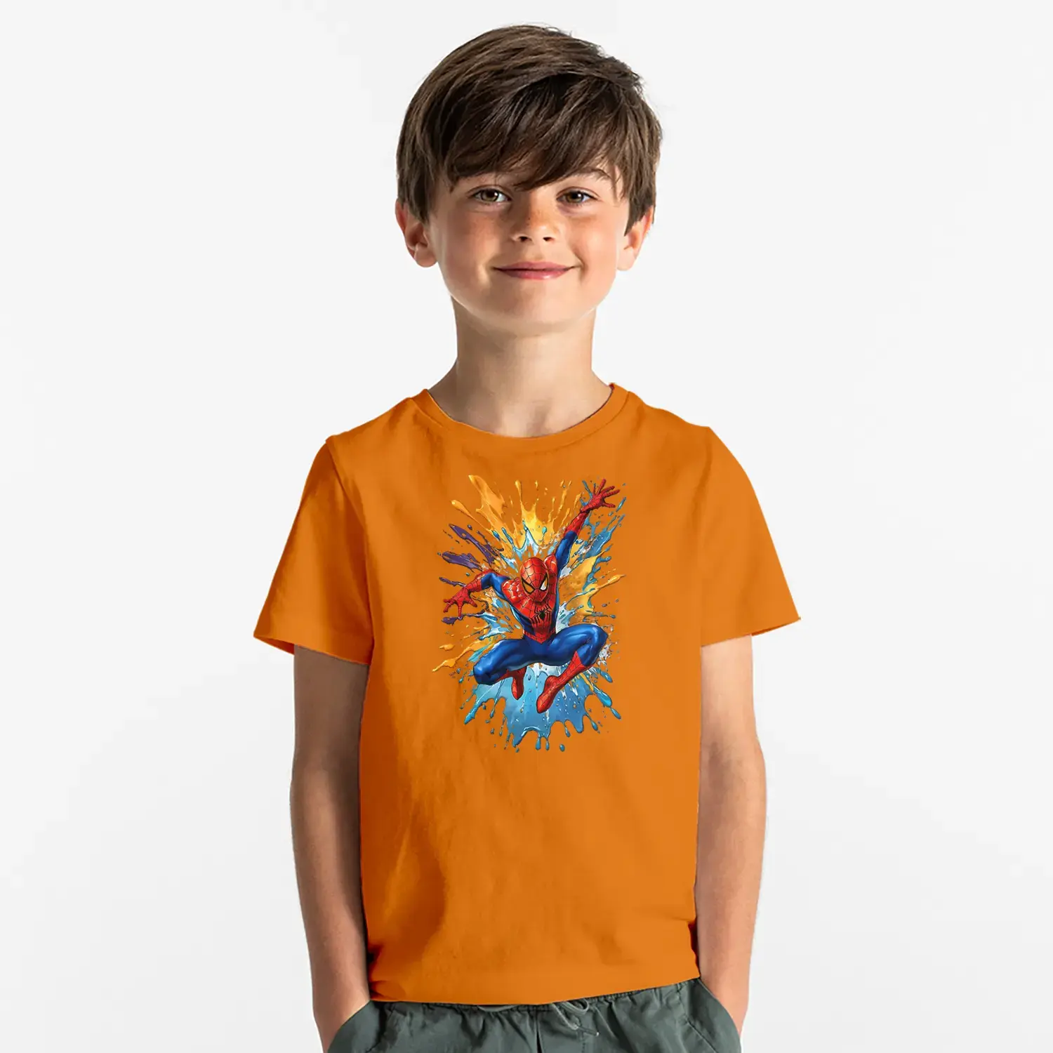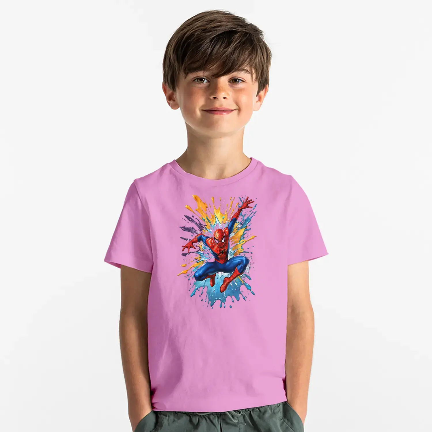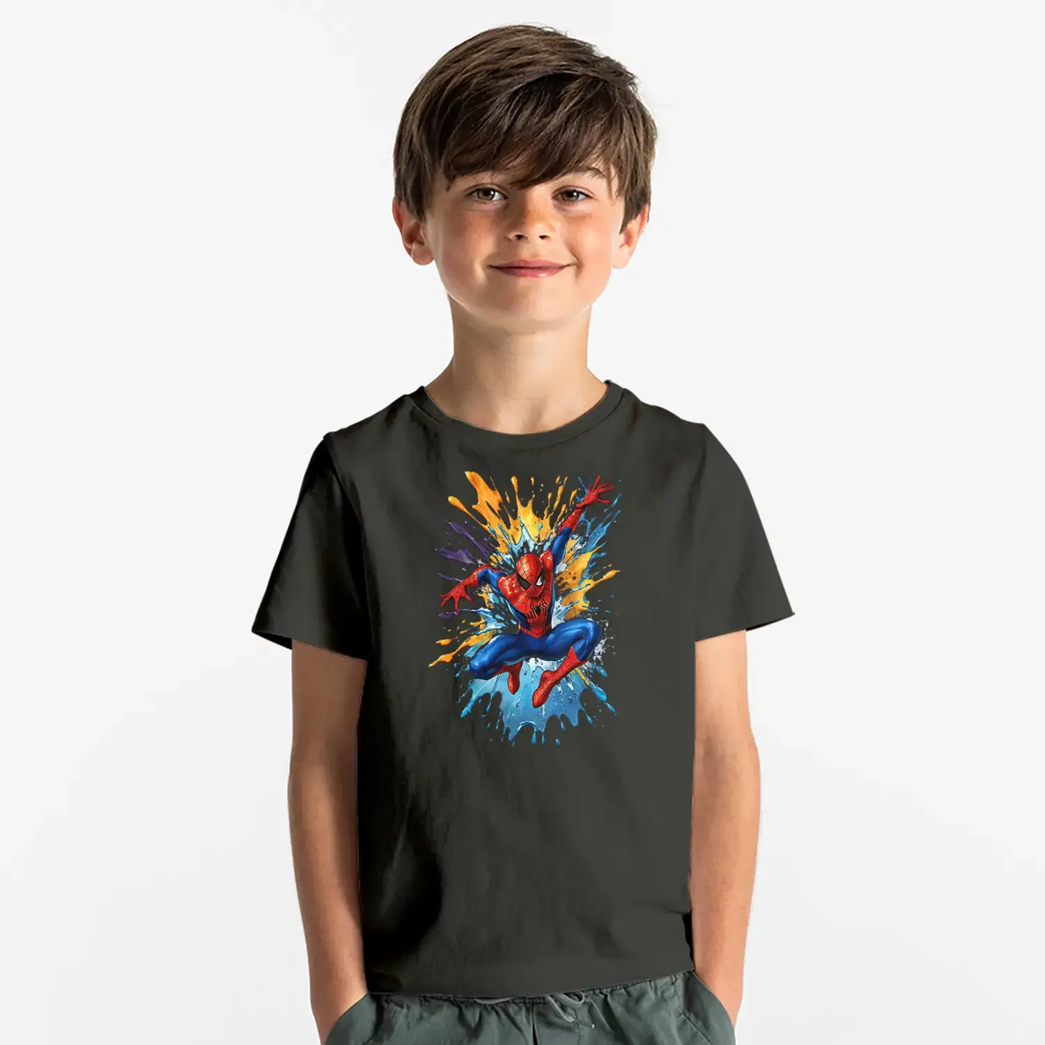 Renk Patlamalı Zıplayan Ağ Atan Süper Kahraman Baskılı Erkek Çocuk Tişört