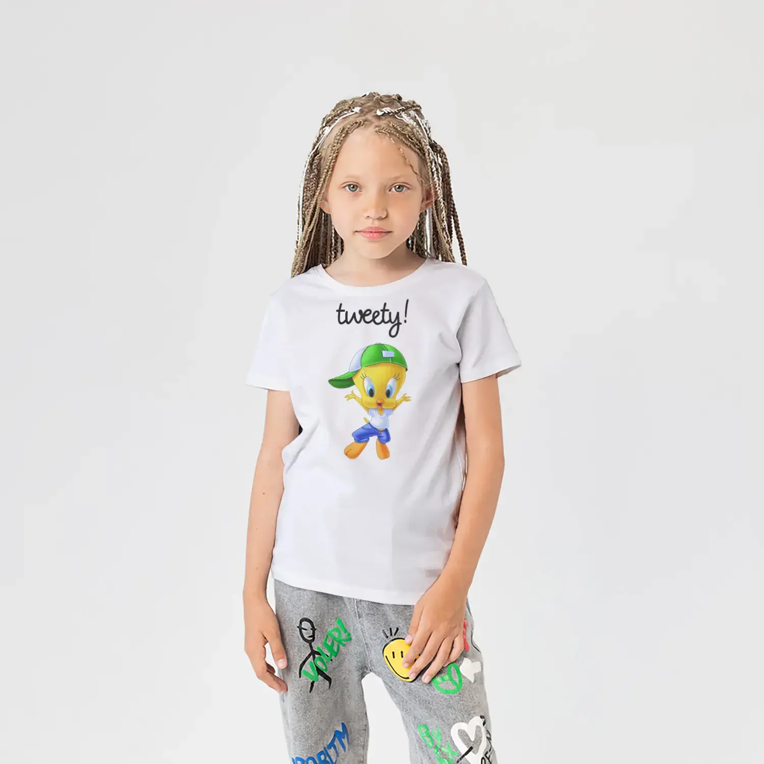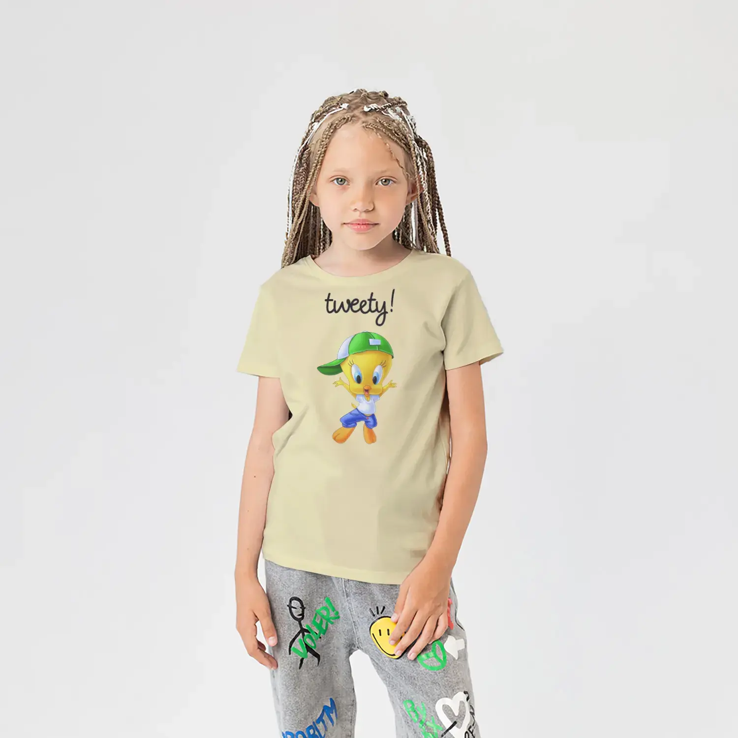 Baskılı çocuk tişörtlerimiz, OEKO-TEX® sertifikalı %100 pamuklu penye kumaştan üretilir.