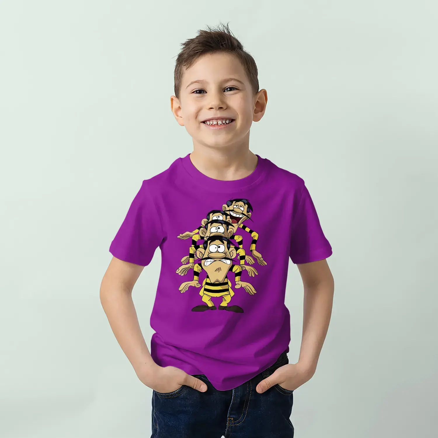 Sevimli Çizgi Karakterler Baskılı Erkek Çocuk Tişört