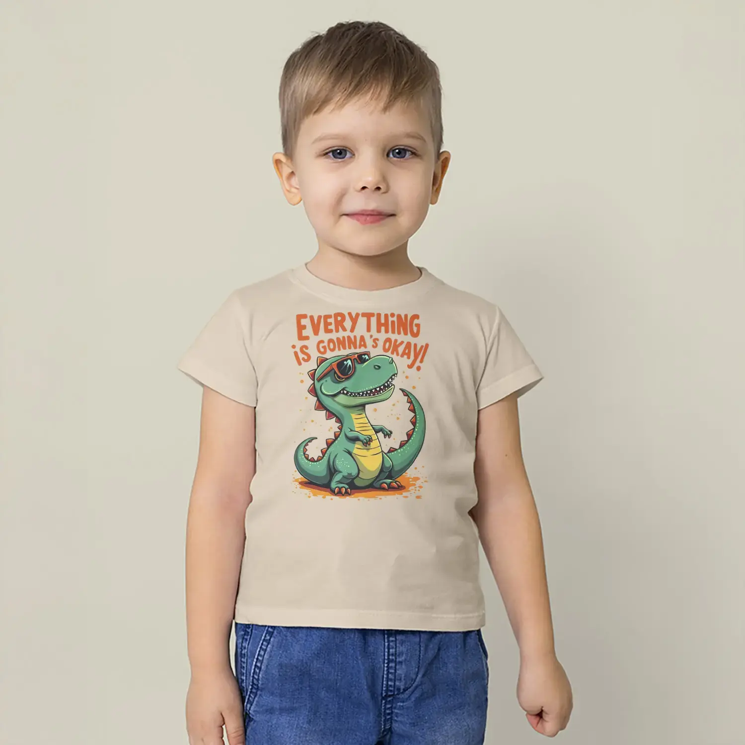 Sevimli Dinozor Mesajlı Baskılı Erkek Çocuk Tişört