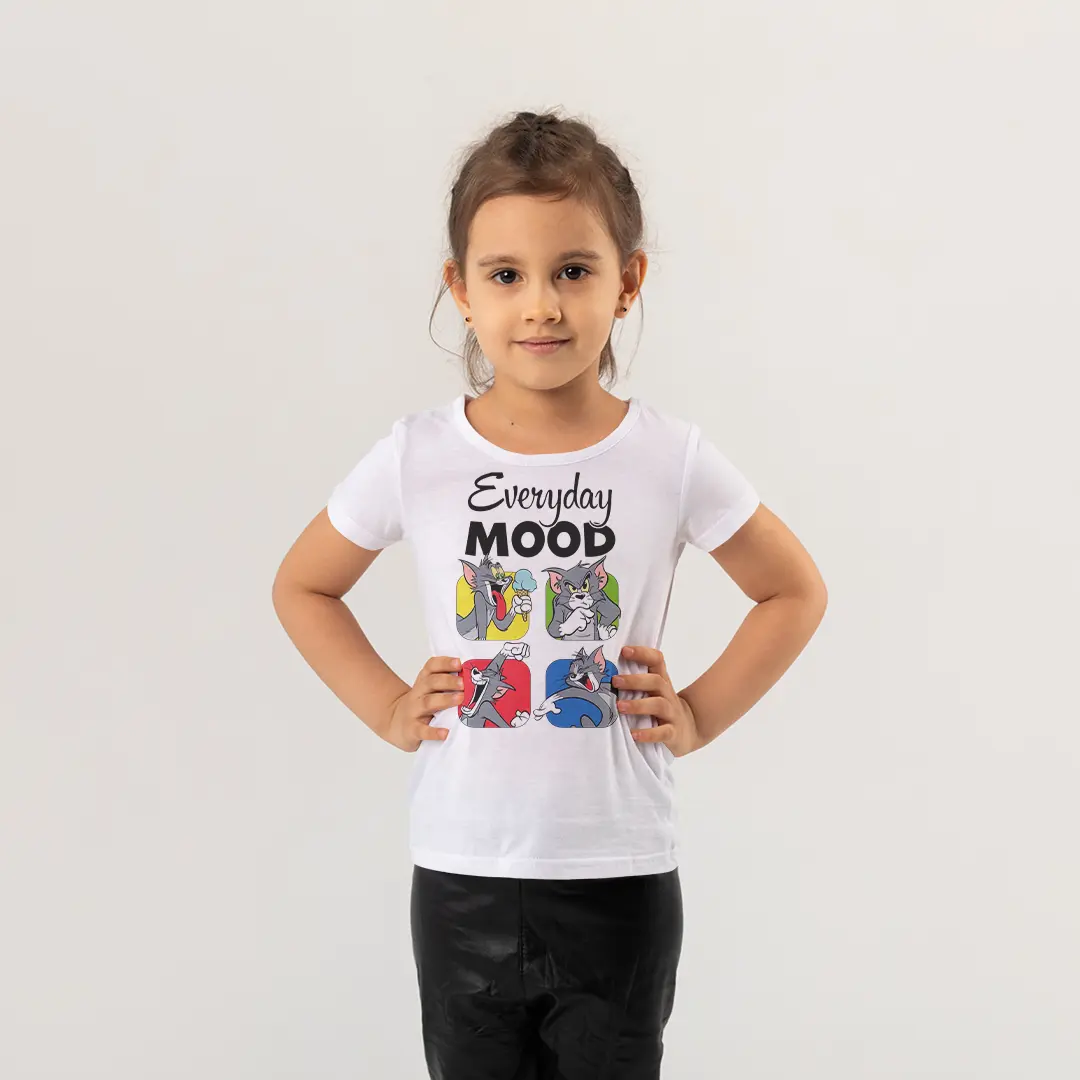 Tom ve Jerry Everyday Mood Baskılı Kız Çocuk Tişörtü – Dört Kare Renkli Tom Karikatür Desenli Çocuk T-Shirt