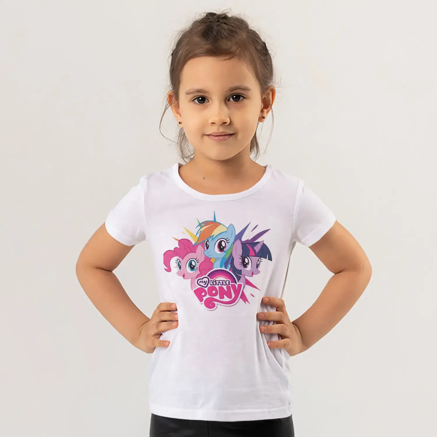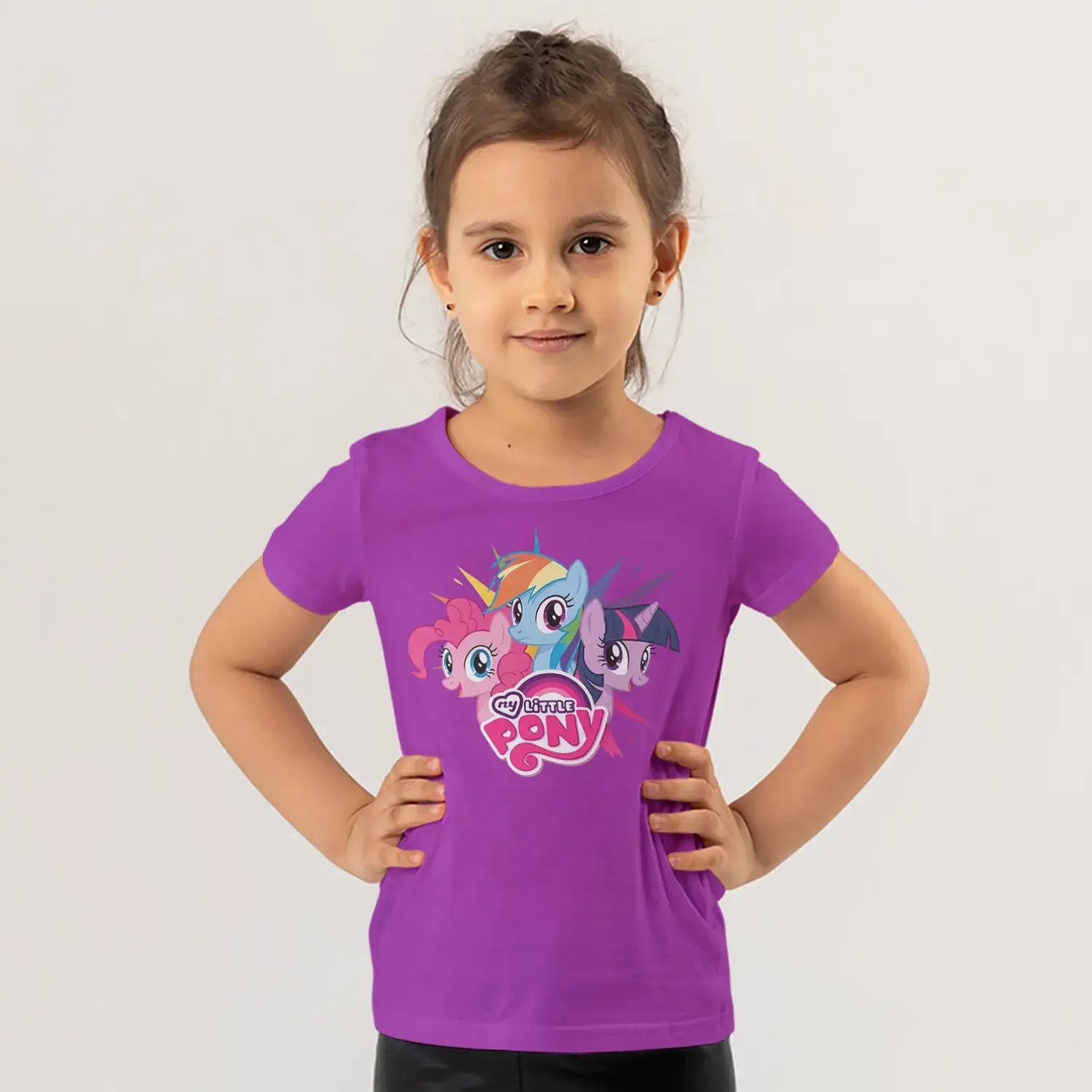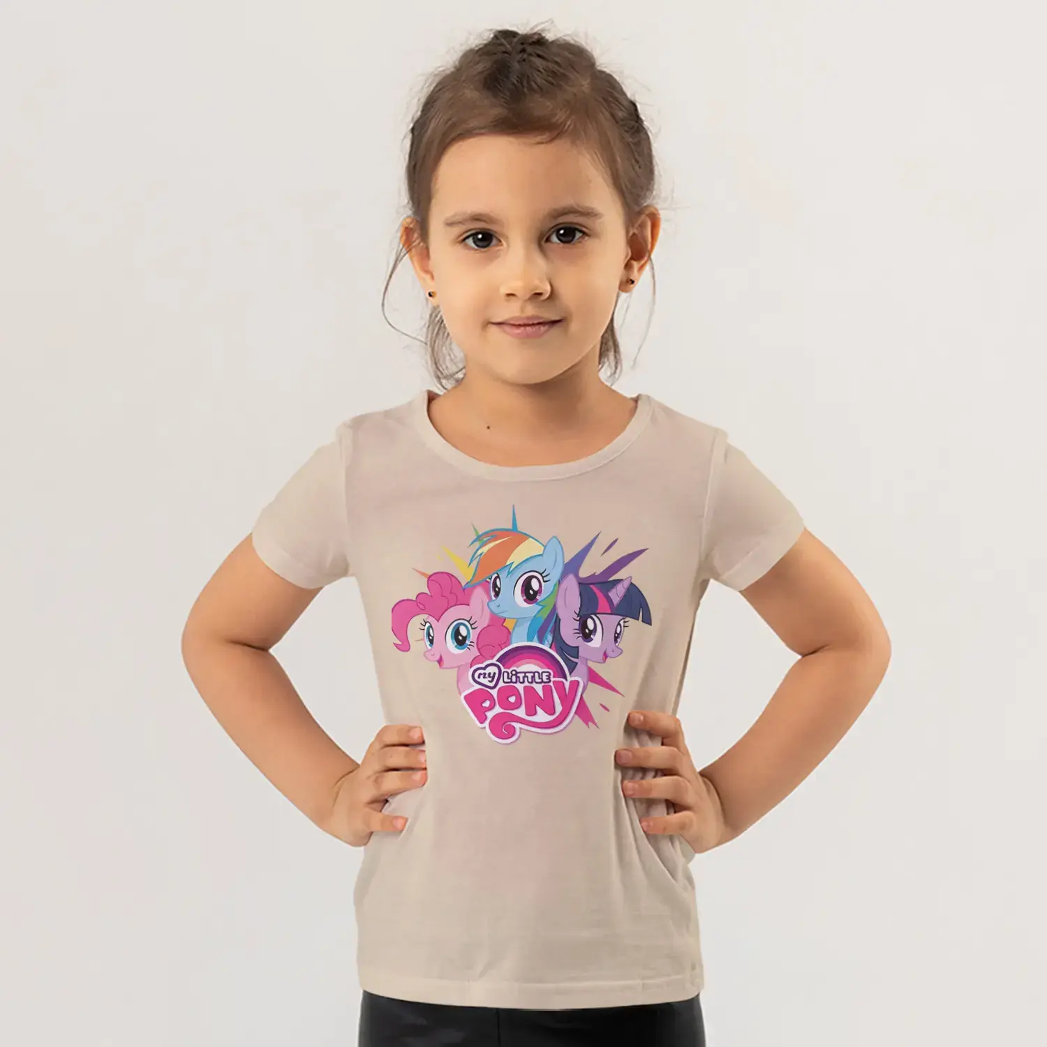Üçlü Renkli Midilli At Grubu Pembe Logolu Baskılı Kız Çocuk Tişörtü