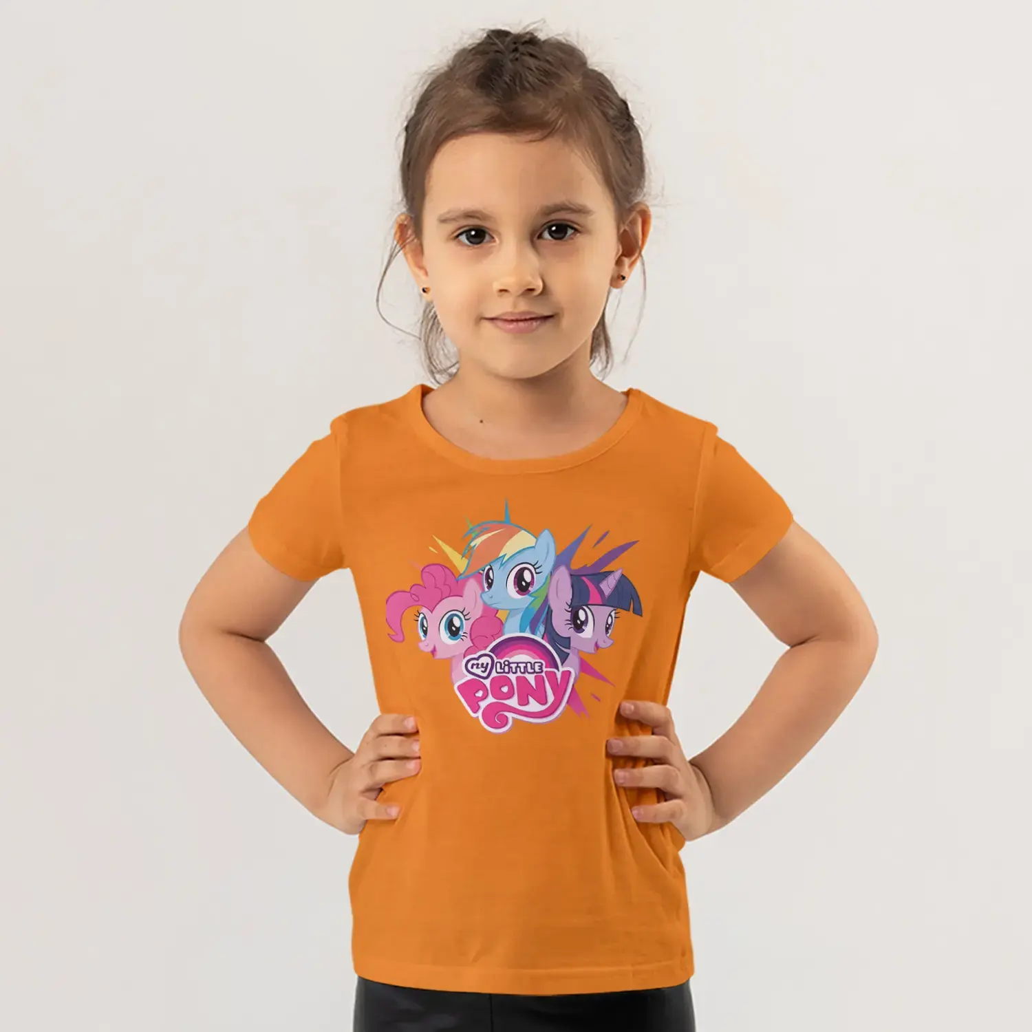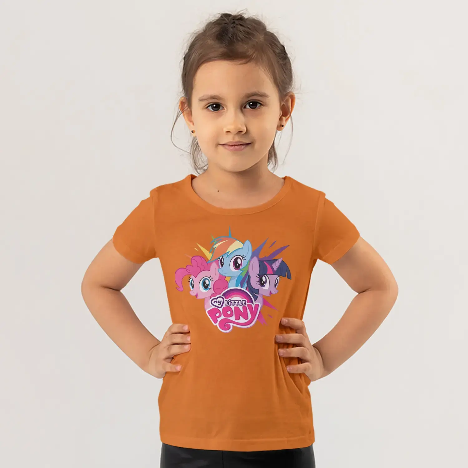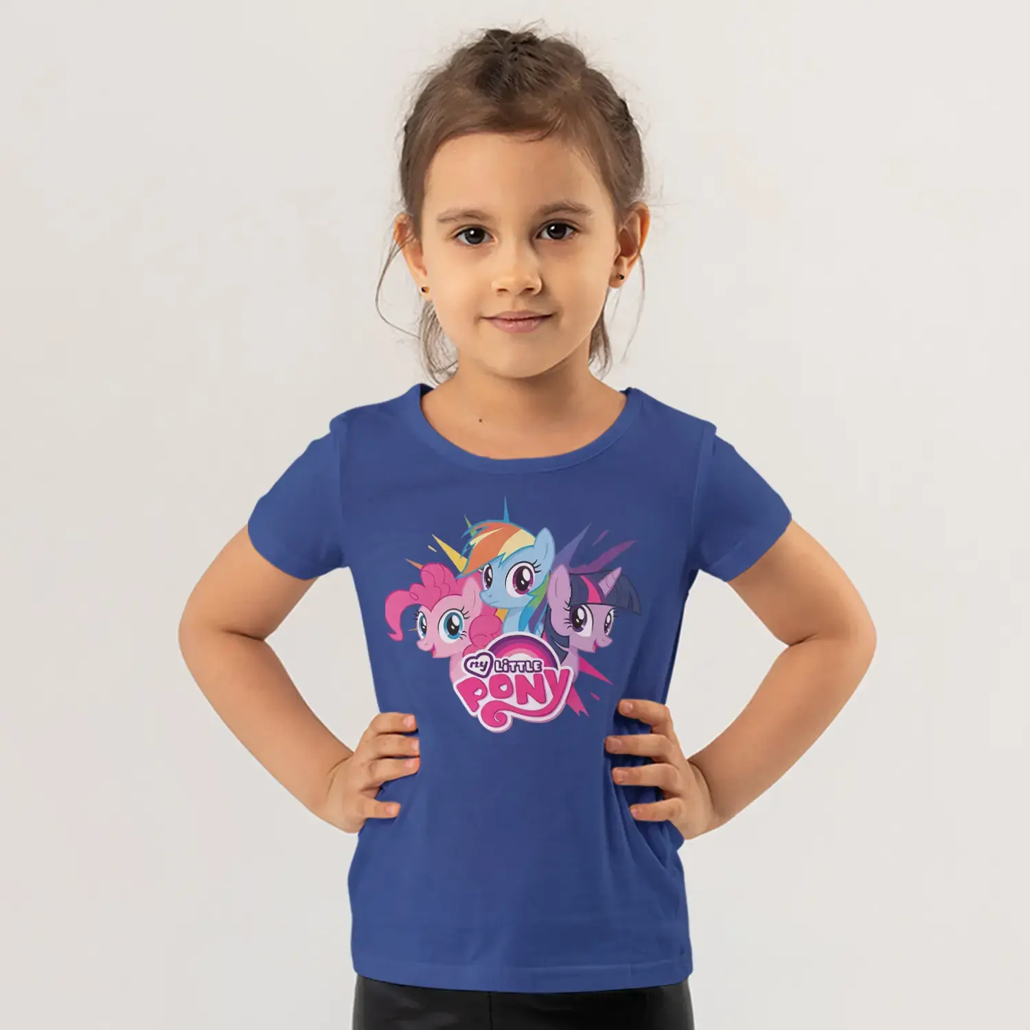 Üçlü Renkli Midilli At Grubu Pembe Logolu Baskılı Kız Çocuk Tişörtü