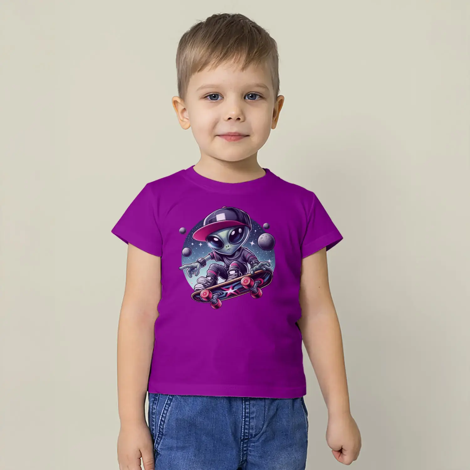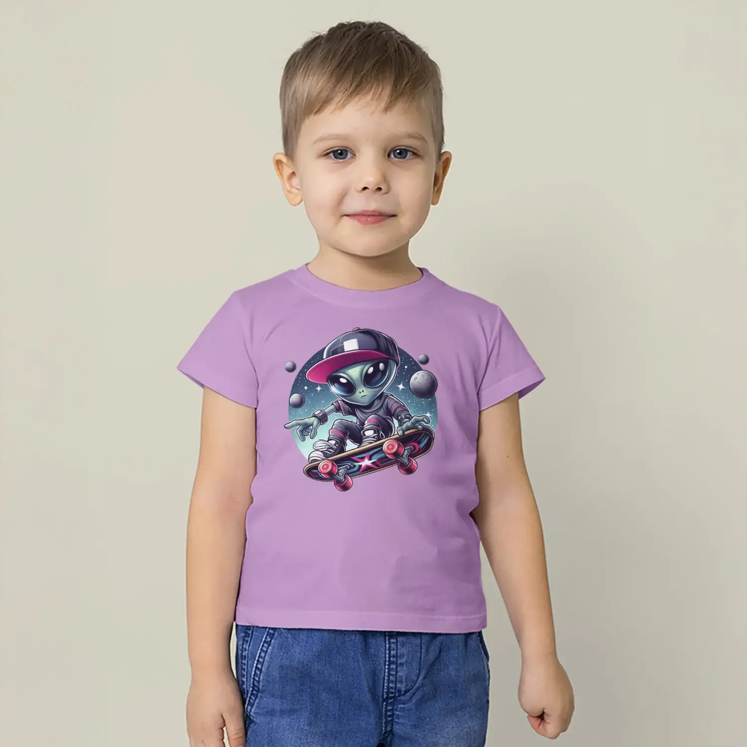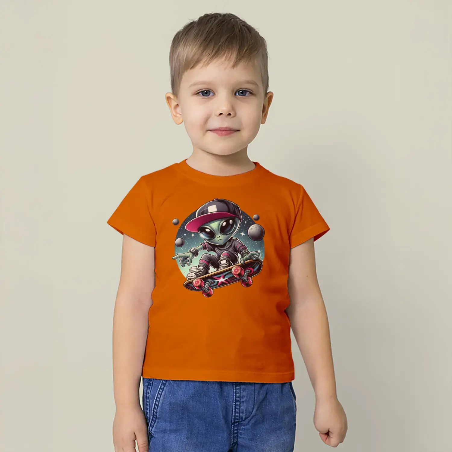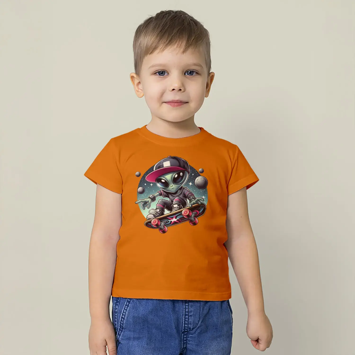 Uzaylı Kaykayda Uzay Temalı Baskılı Erkek Çocuk Tişört